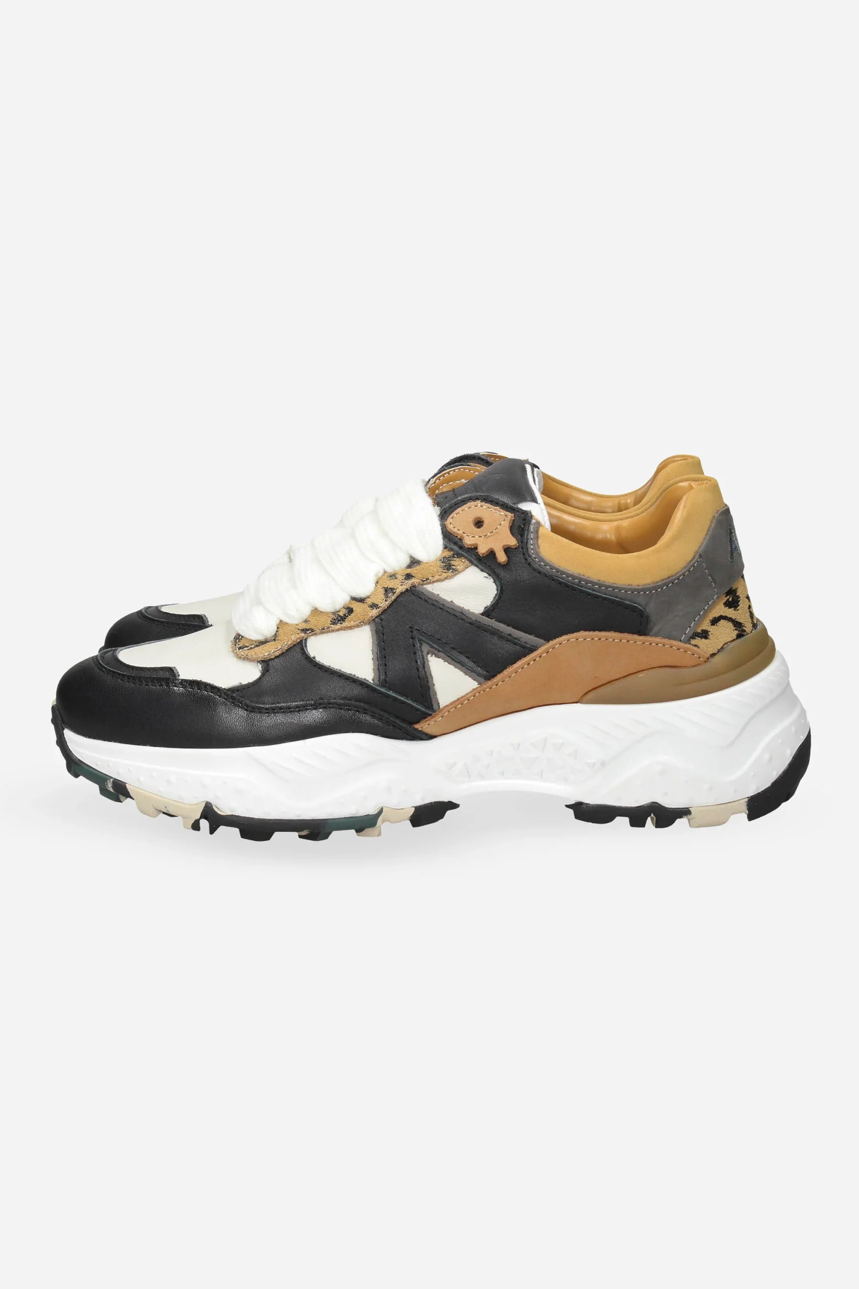 Presenta chiusura con lacci in cotone, plantare estraibile e soletta in pelle.