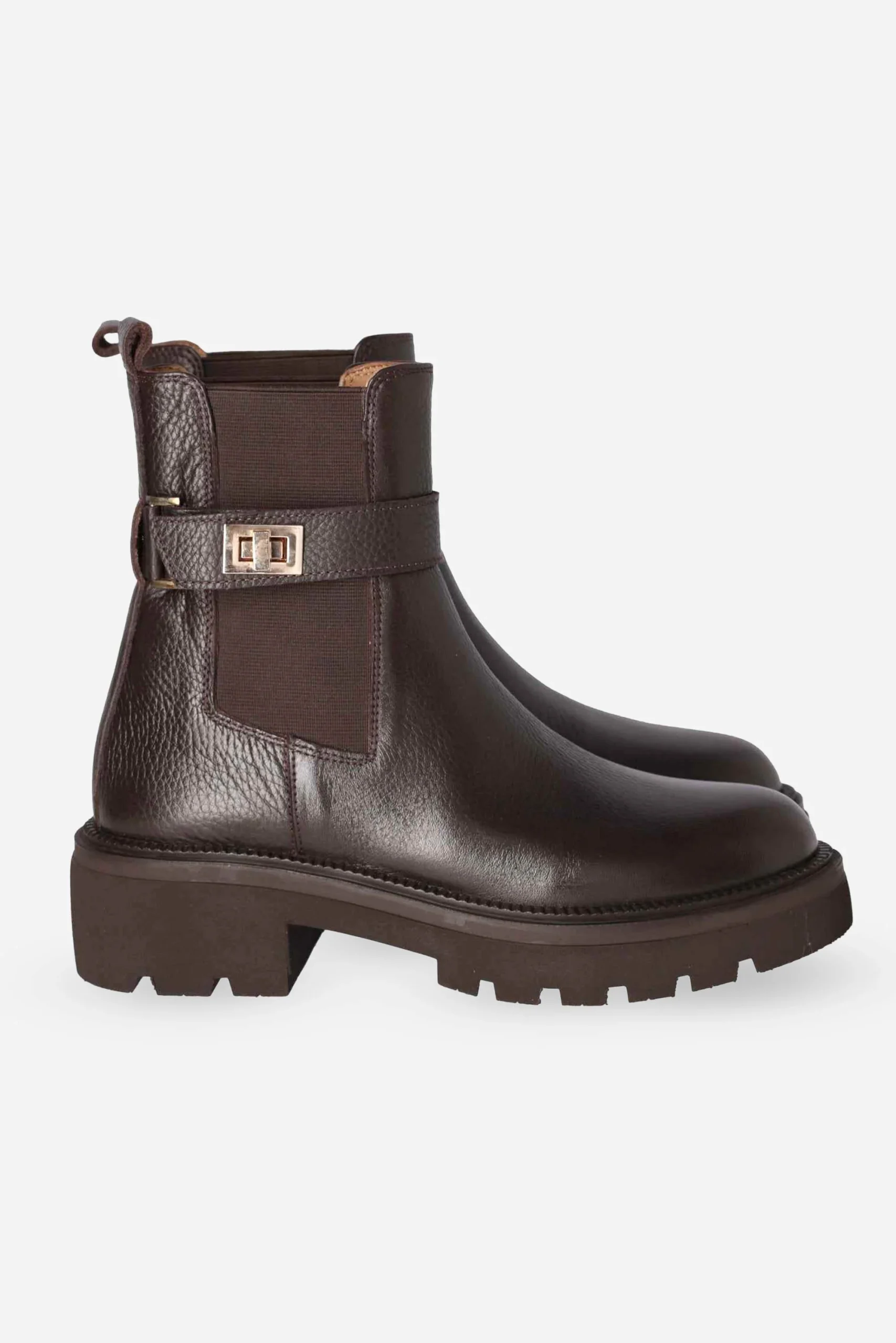 Presenta linguetta superiore sul retro che facilita la calzata slip on, elastico sul gambale e interno foderato con soletta in pelle, dettaglio cinturino.