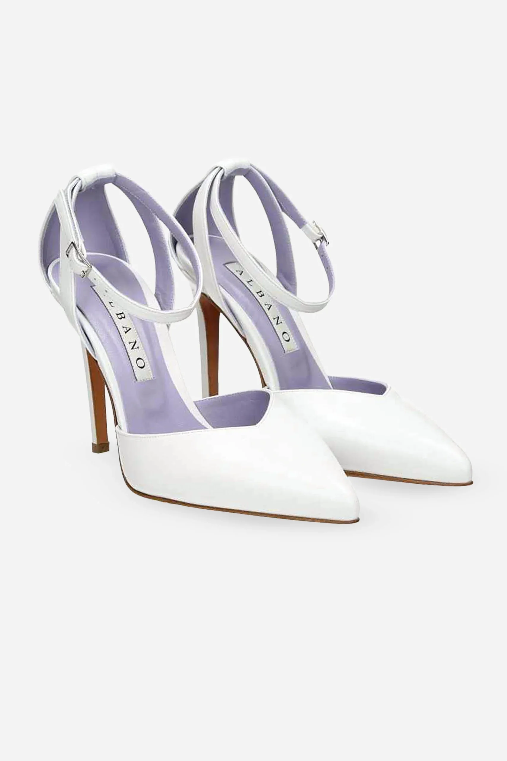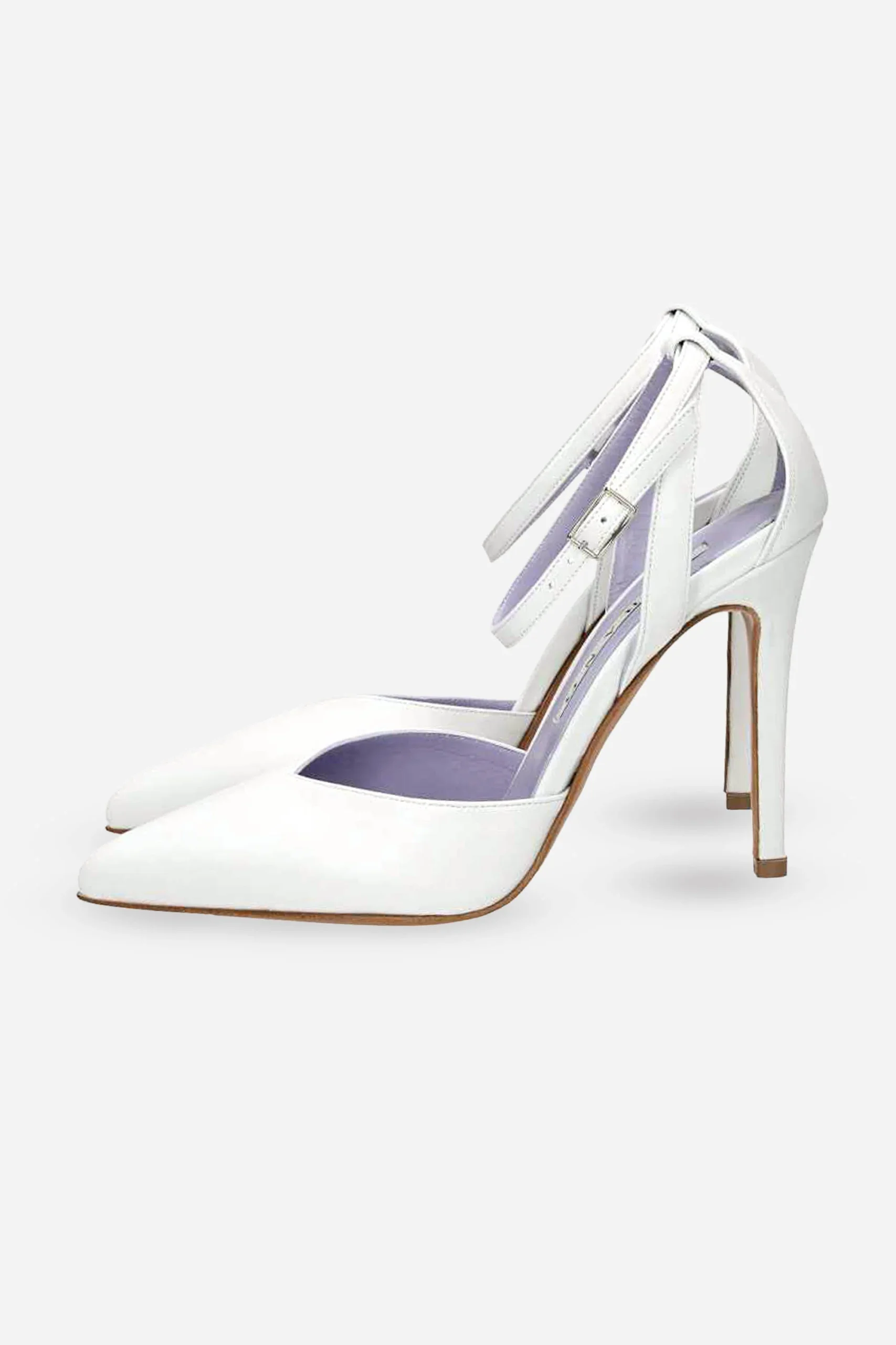 Presenta soletta in pelle, chiusura con cinturino alla caviglia con fibbia regolabile e suola in gomma.