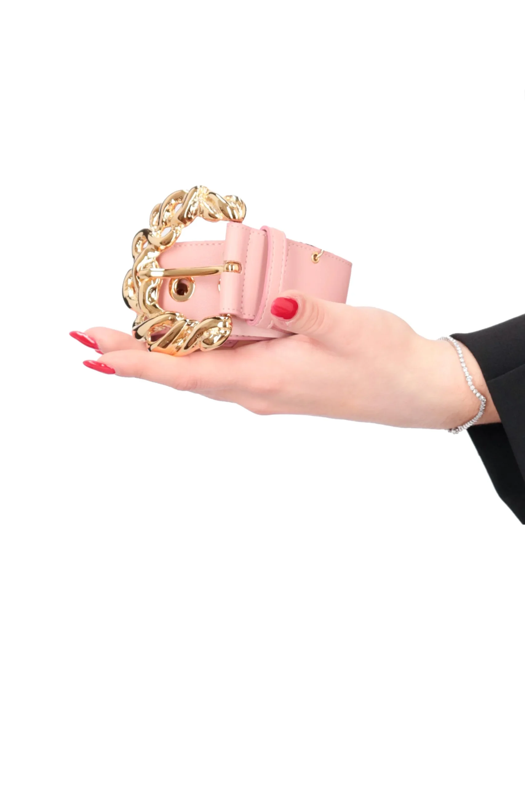 La cintura è realizzata in ecopelle con fibbia in metallo regolabile.
