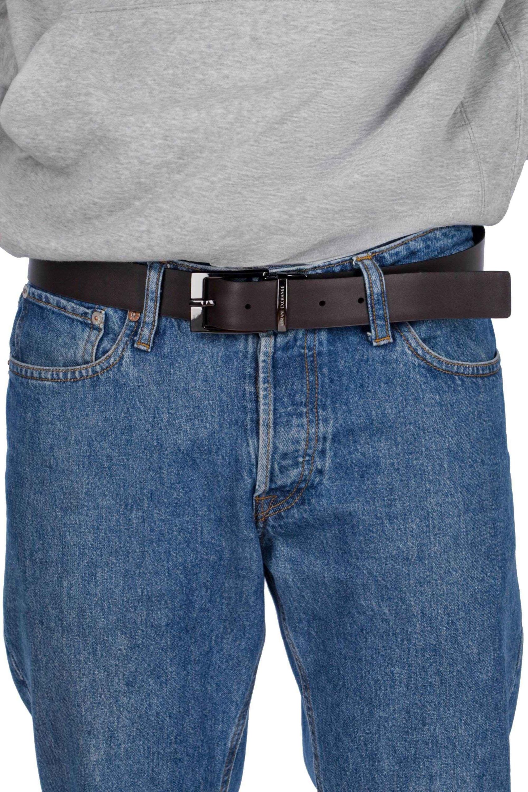La cintura è realizzata in pelle, è reversibile e presenta la fibbia in metallo con logo.