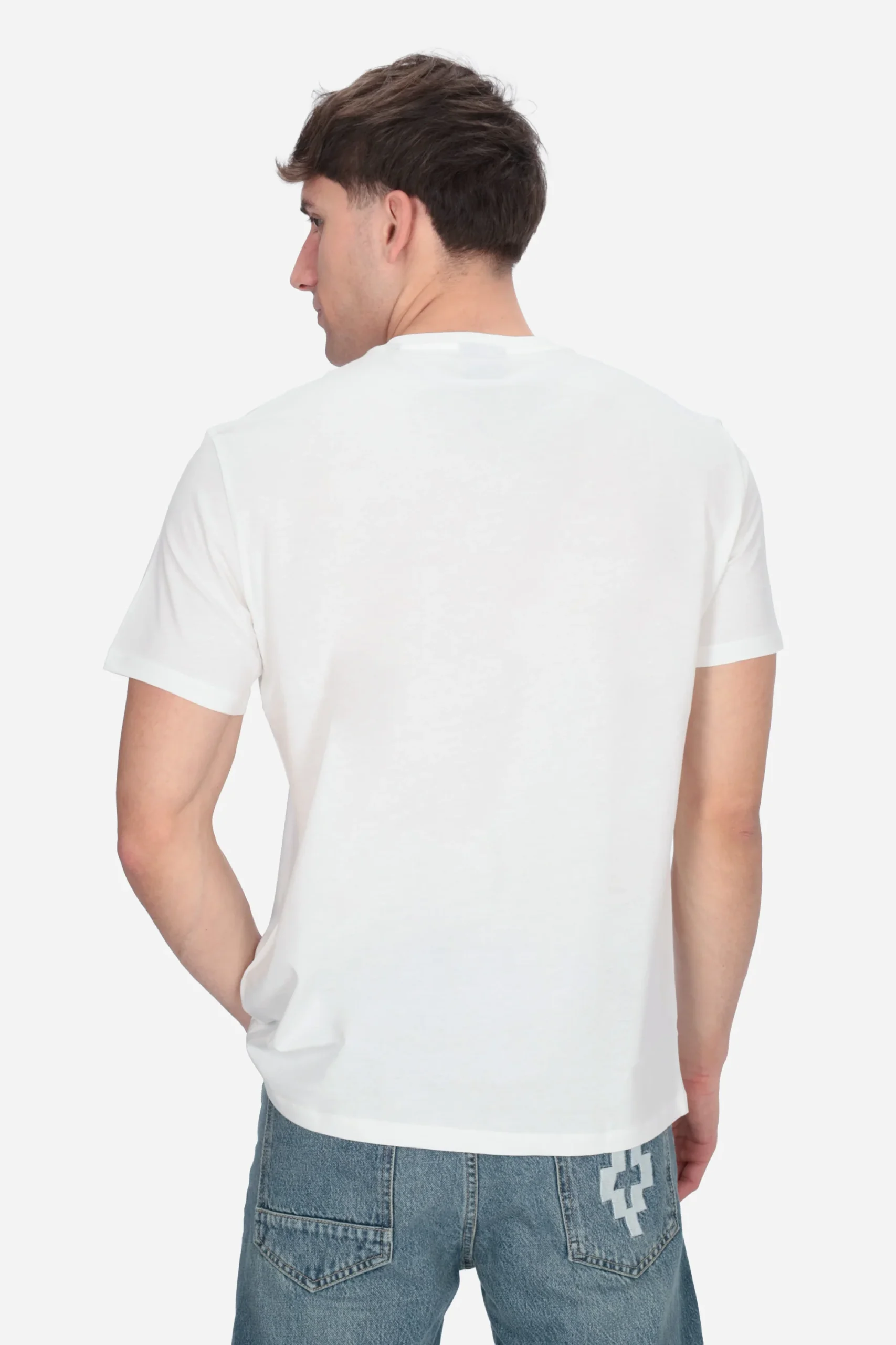 Presenta maniche corte, girocollo e stampa sul davanti in contrasto colore.