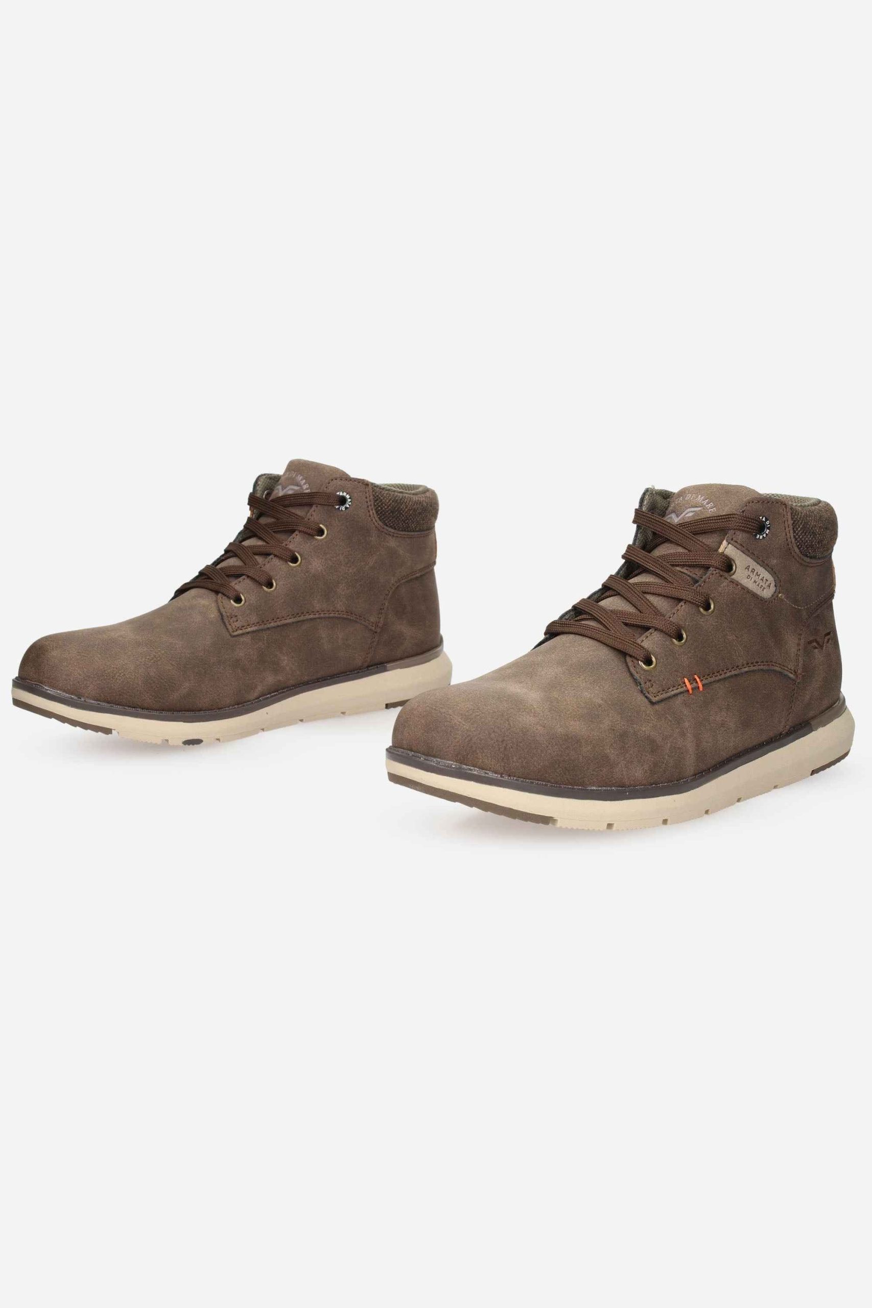 Polacco realizzato in nabuk sintetico e dettagli in tessuto.