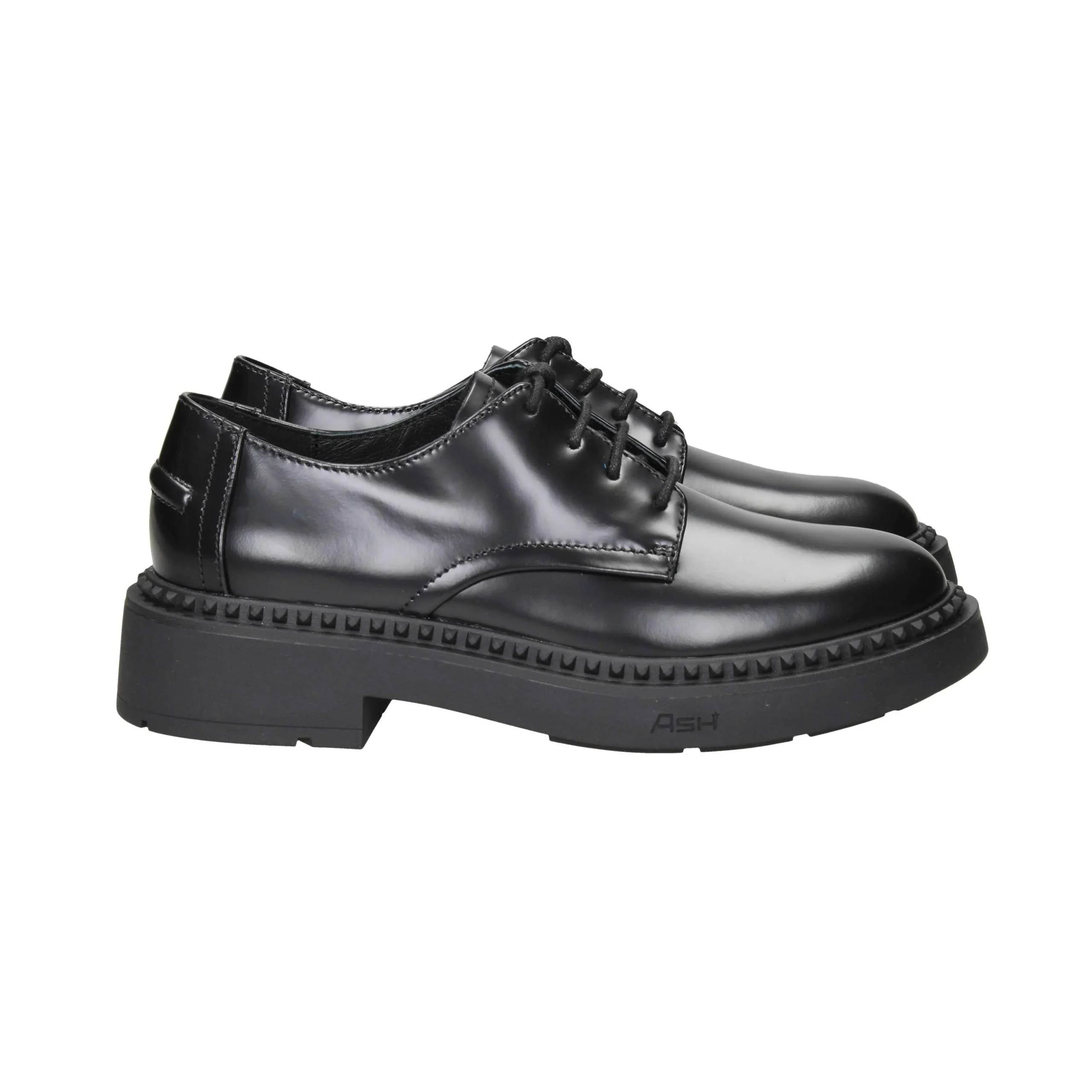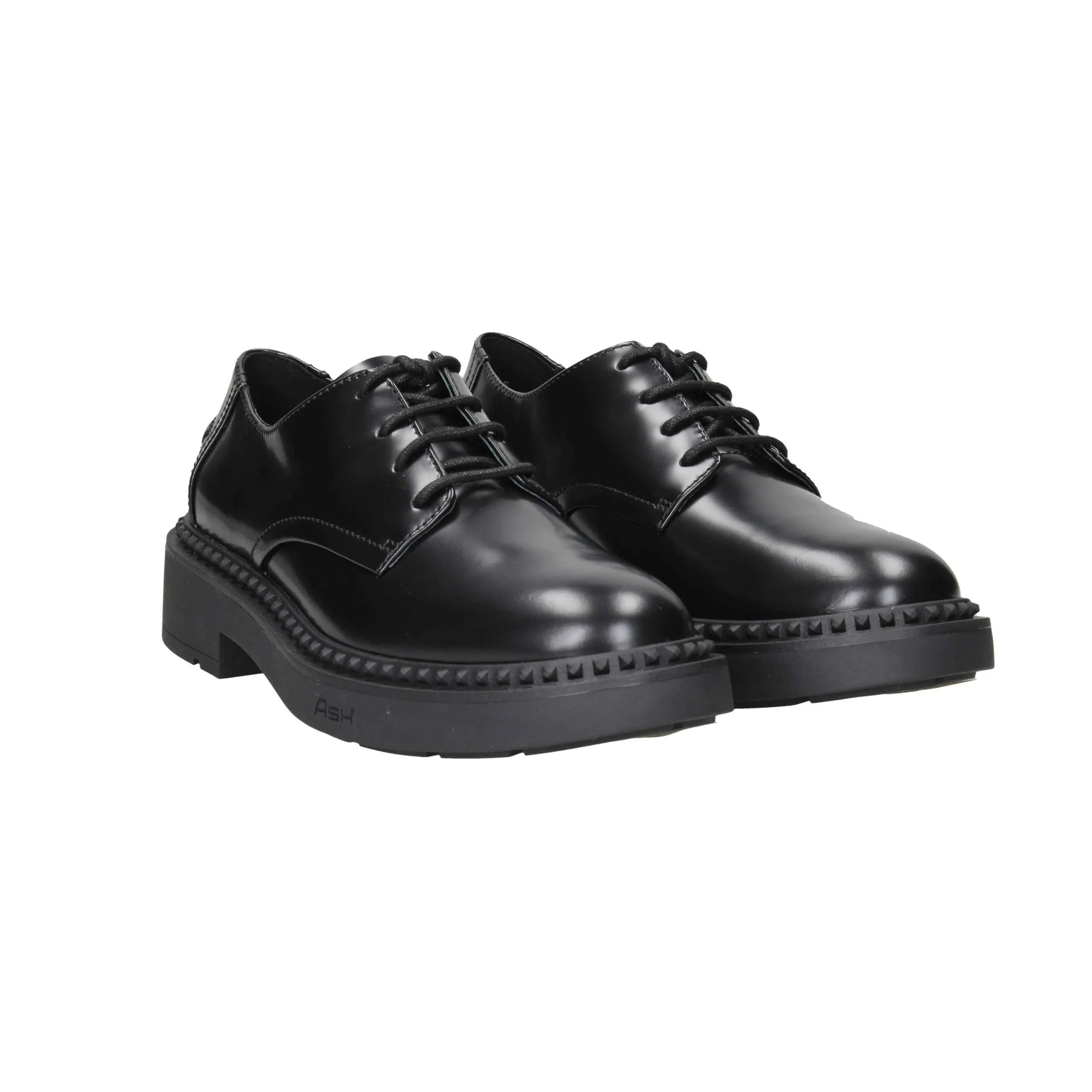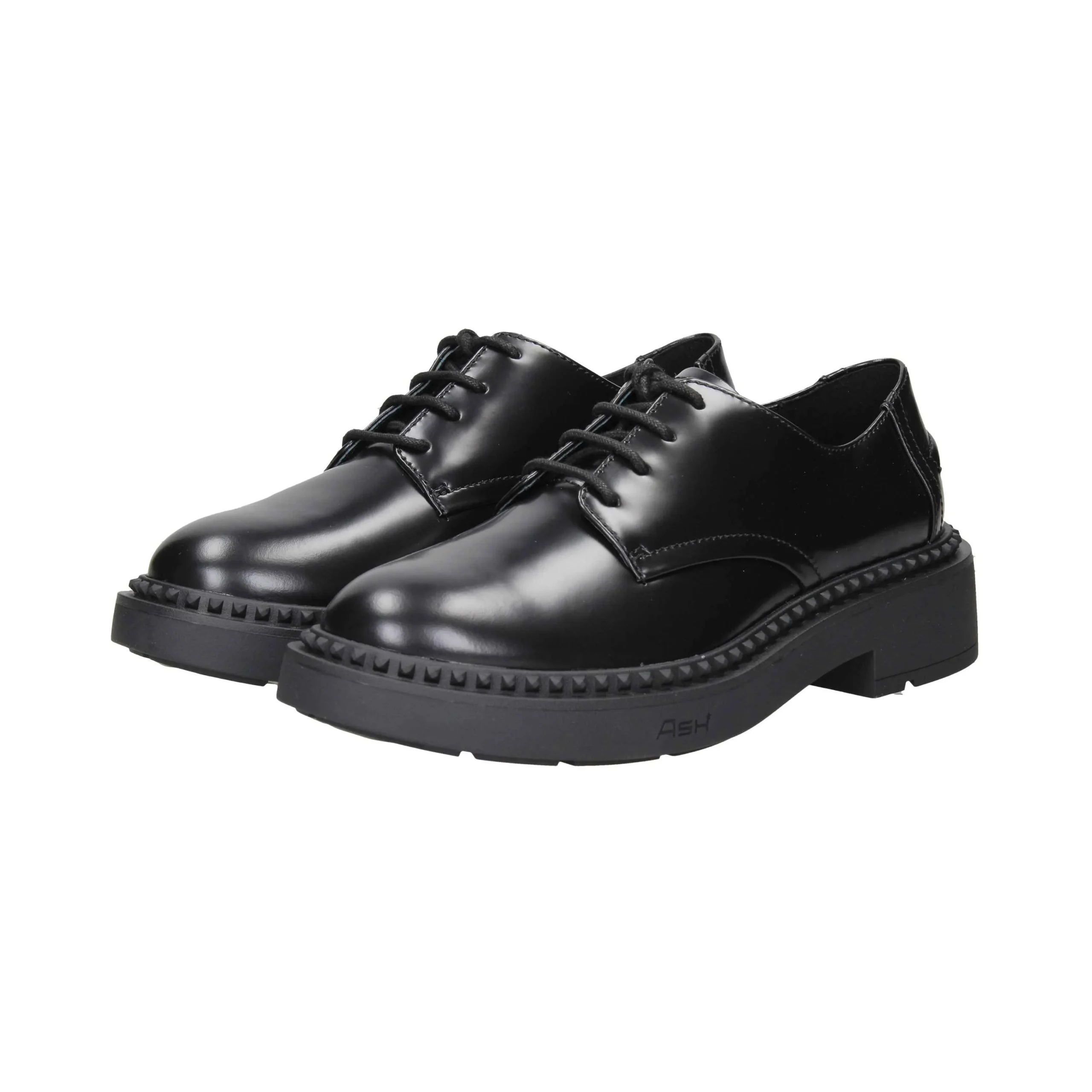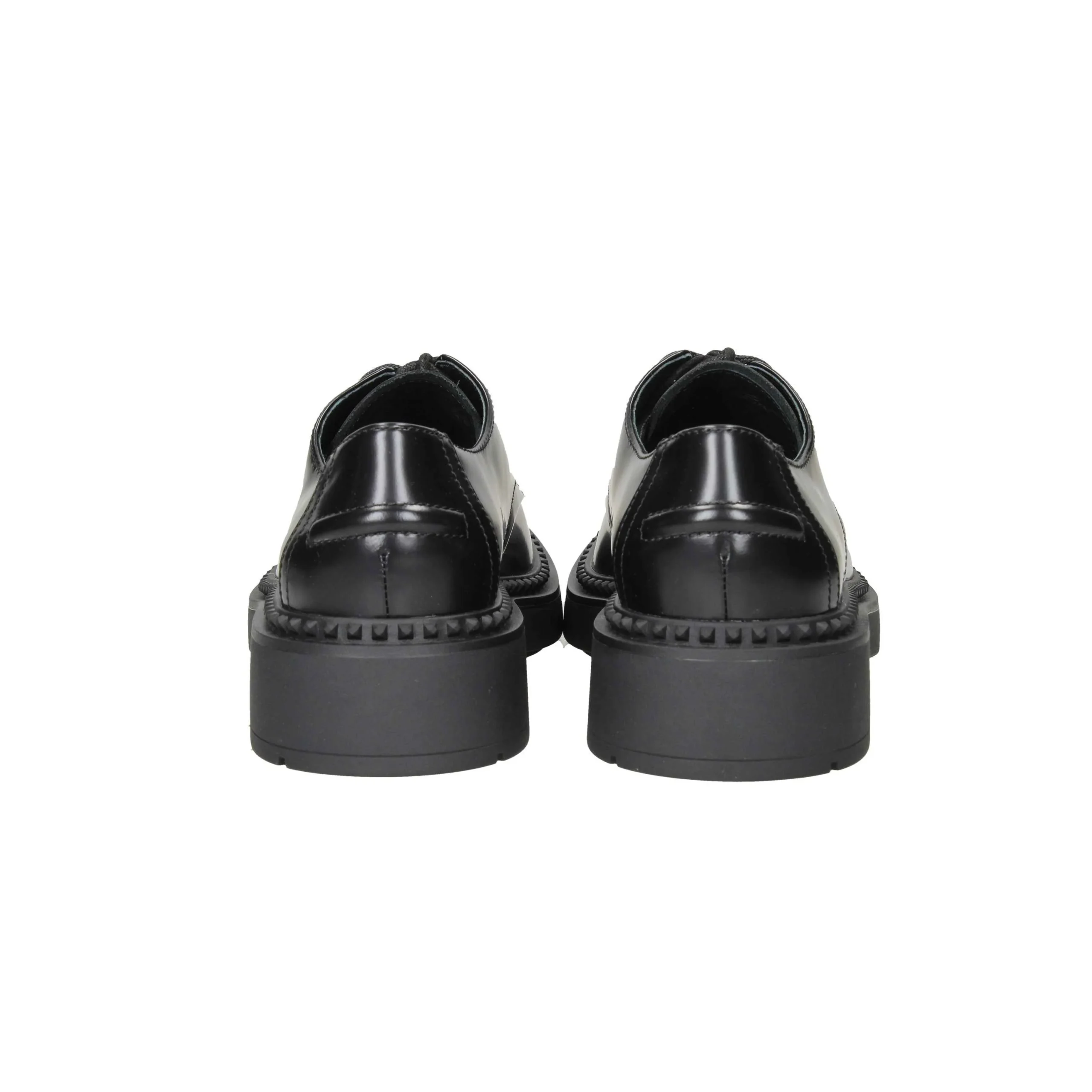 Scarpa in pelle con lacci in nylon, tacco alto 4cm, suola in gomma, fondo antiscivolo, interno in pelle.