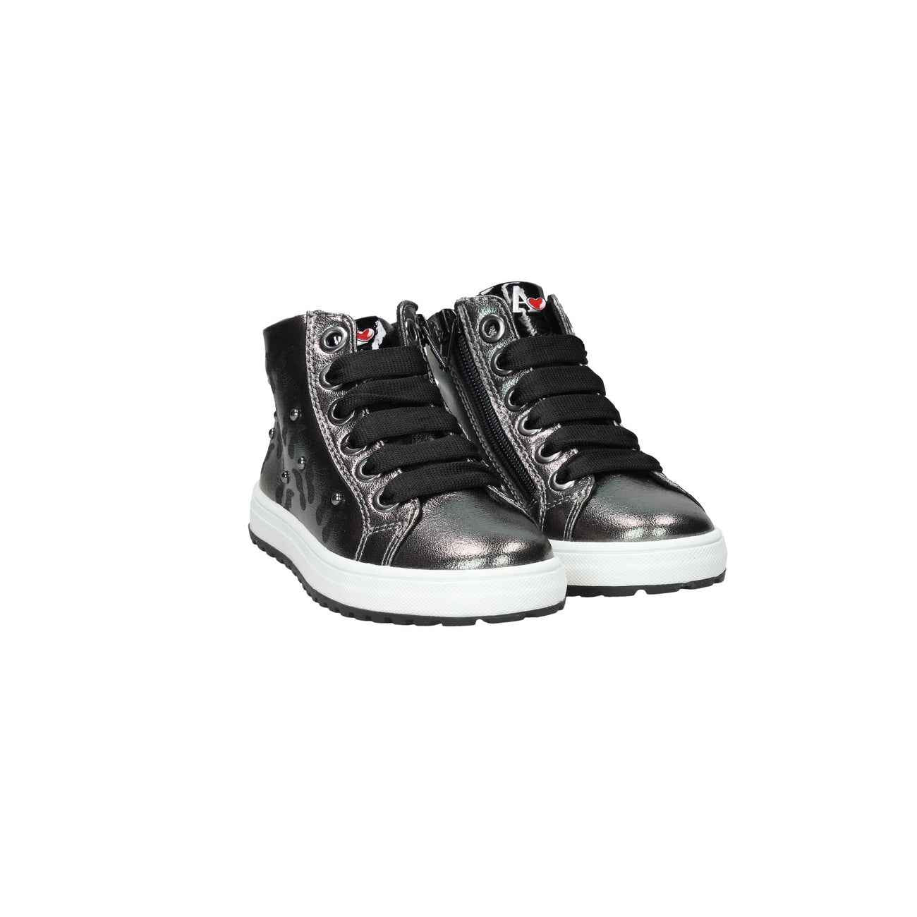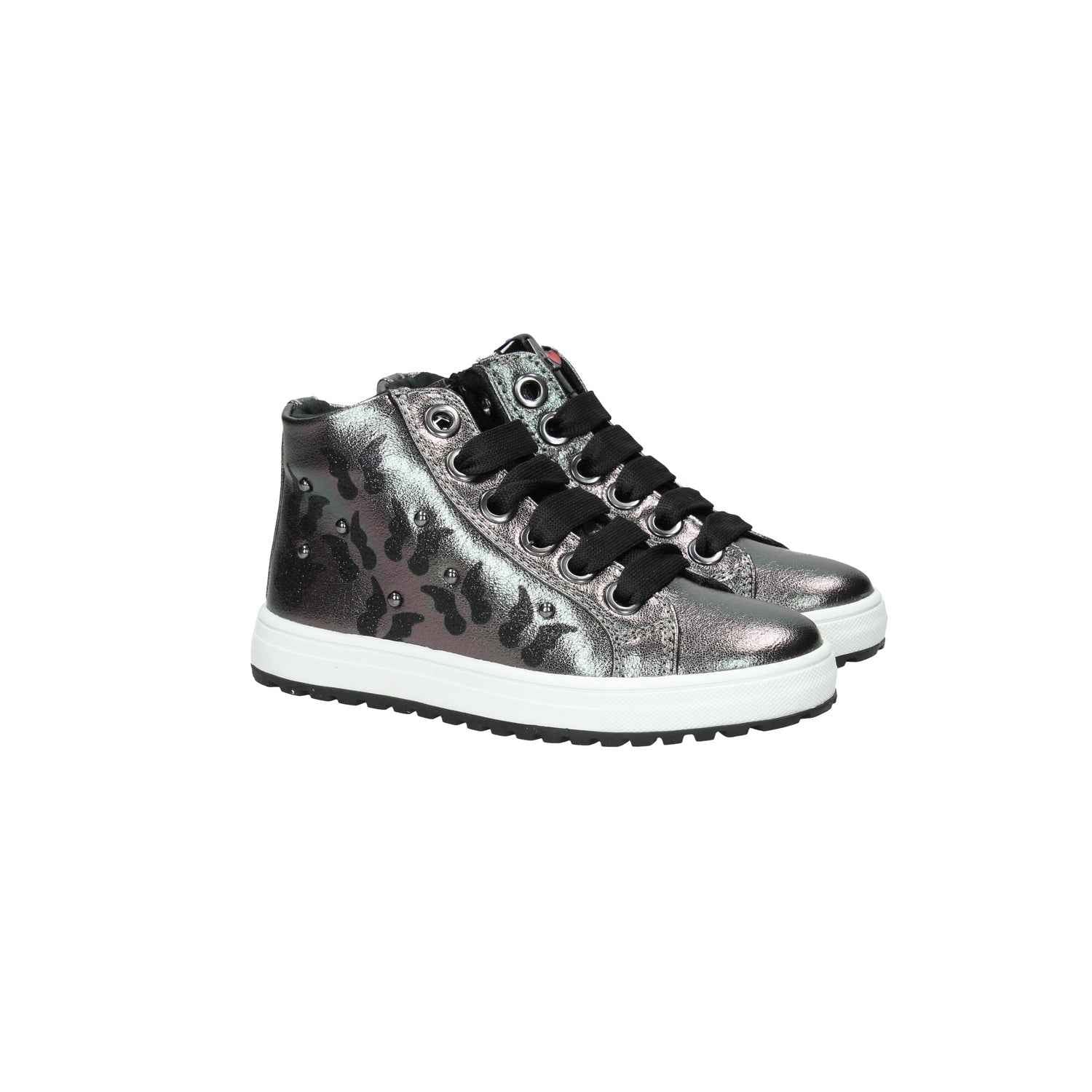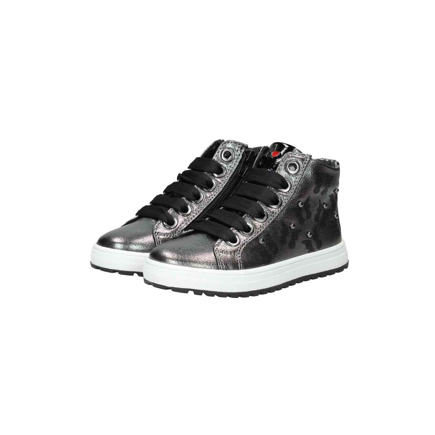 Sneakers laminato, suola in gomma, fondo antiscivolo, lacci in cotone, interno in pelle.