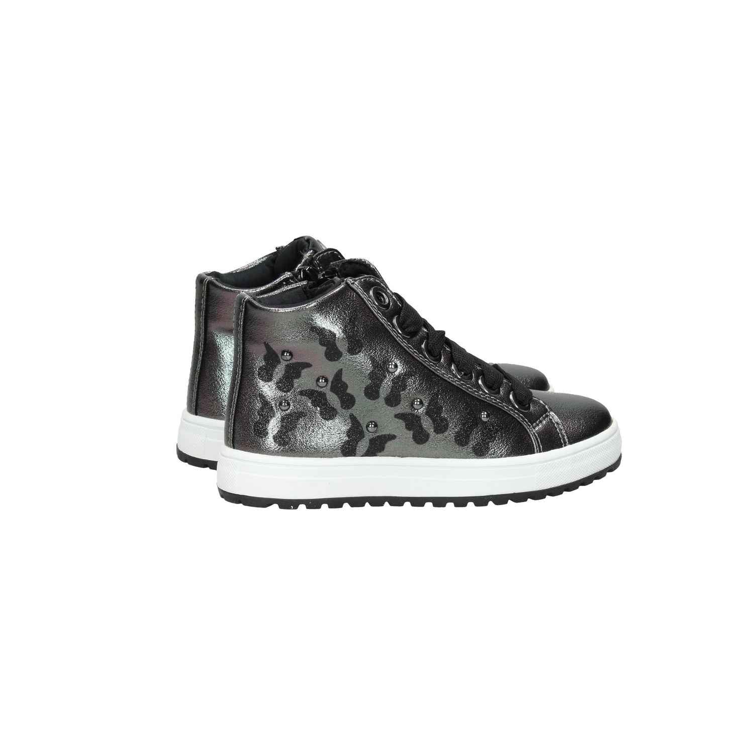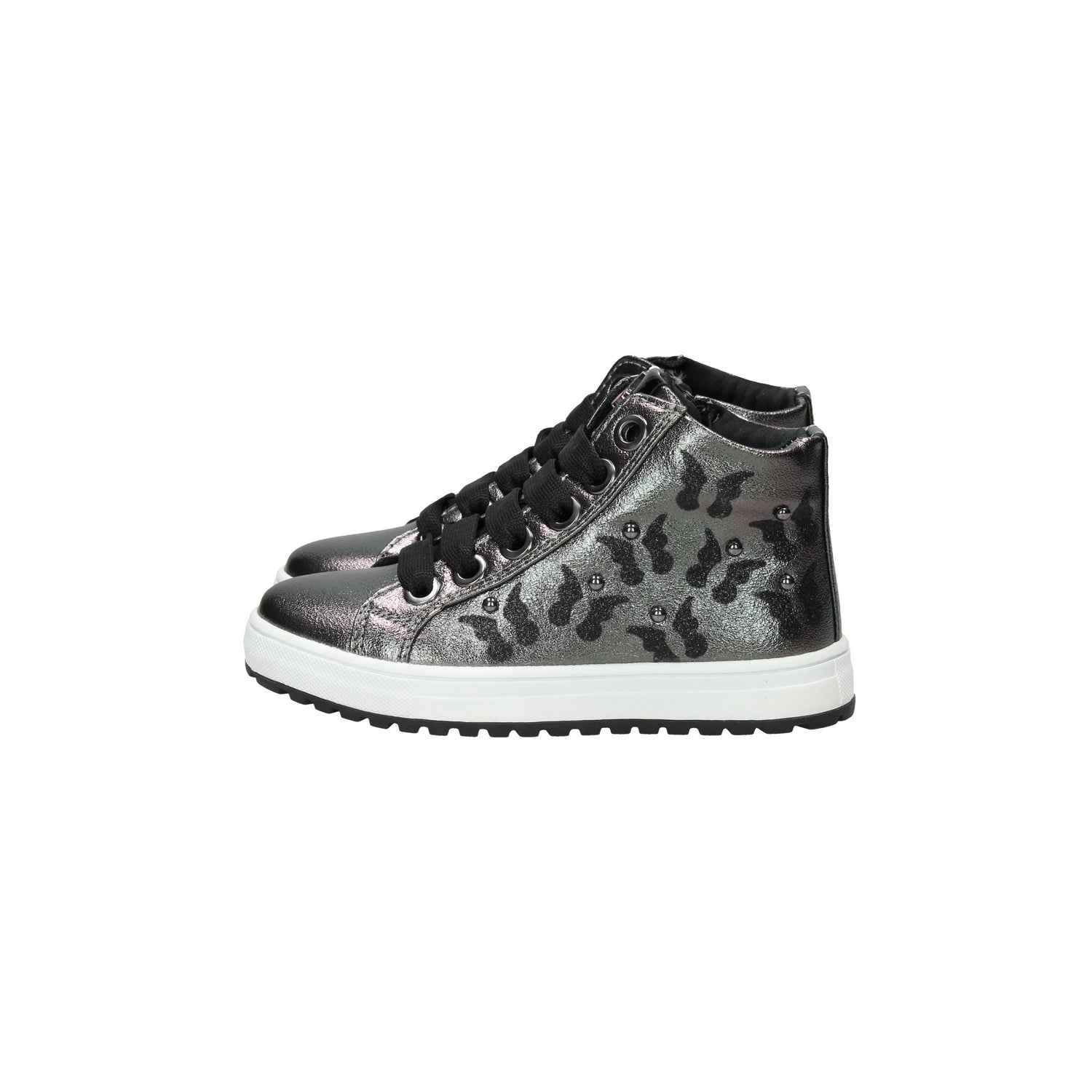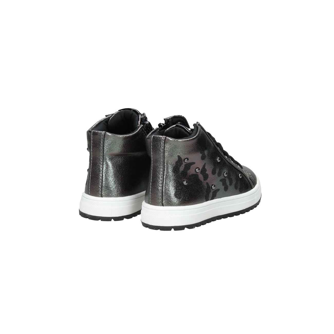 Sneakers laminato, suola in gomma, fondo antiscivolo, lacci in cotone, interno in pelle.