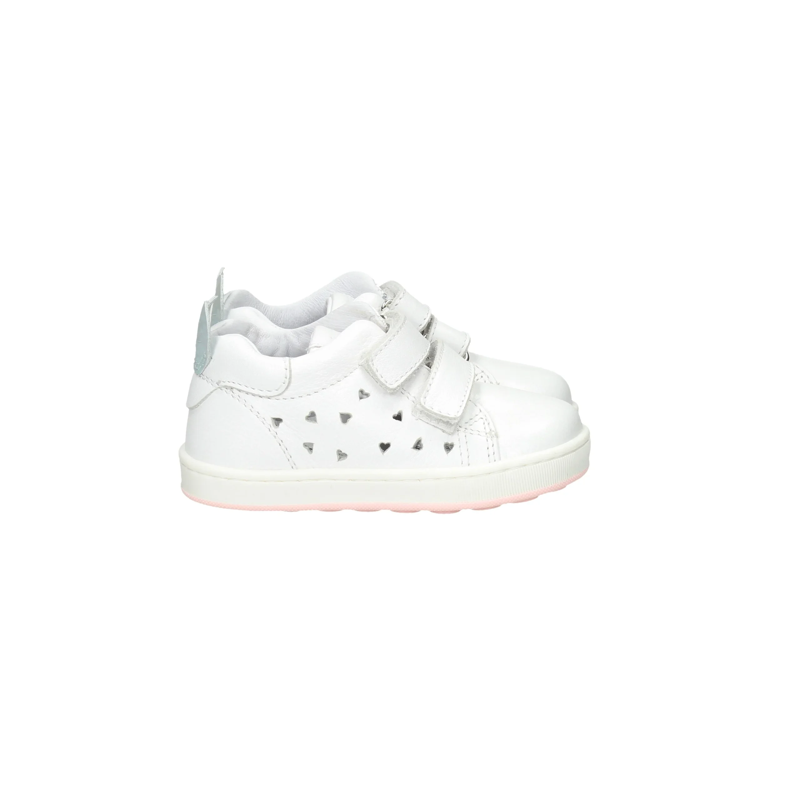 Presenta strappi regolabili sul davanti, piccoli cuoricini traforate sul lato esterno e plantare estraibile anatomico.