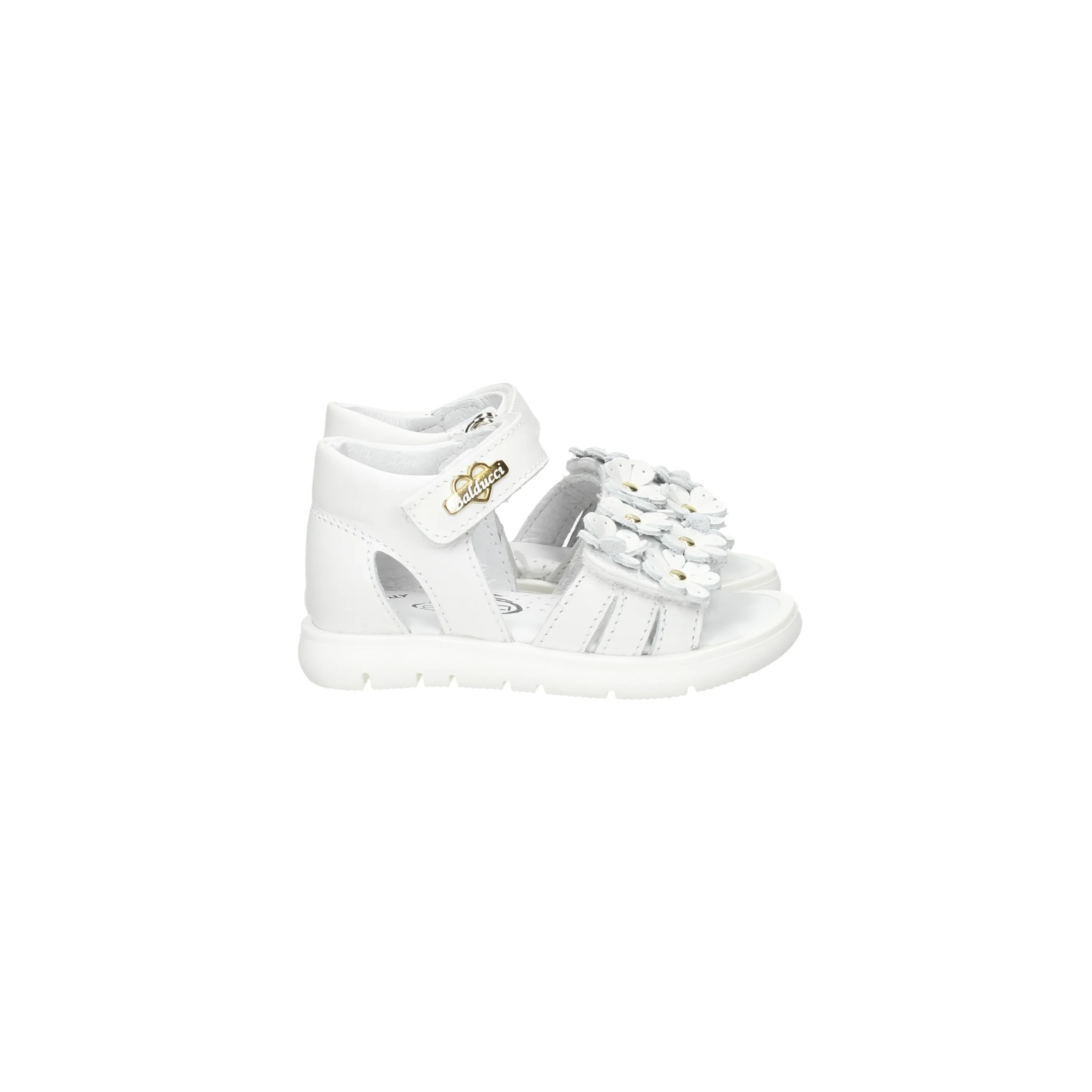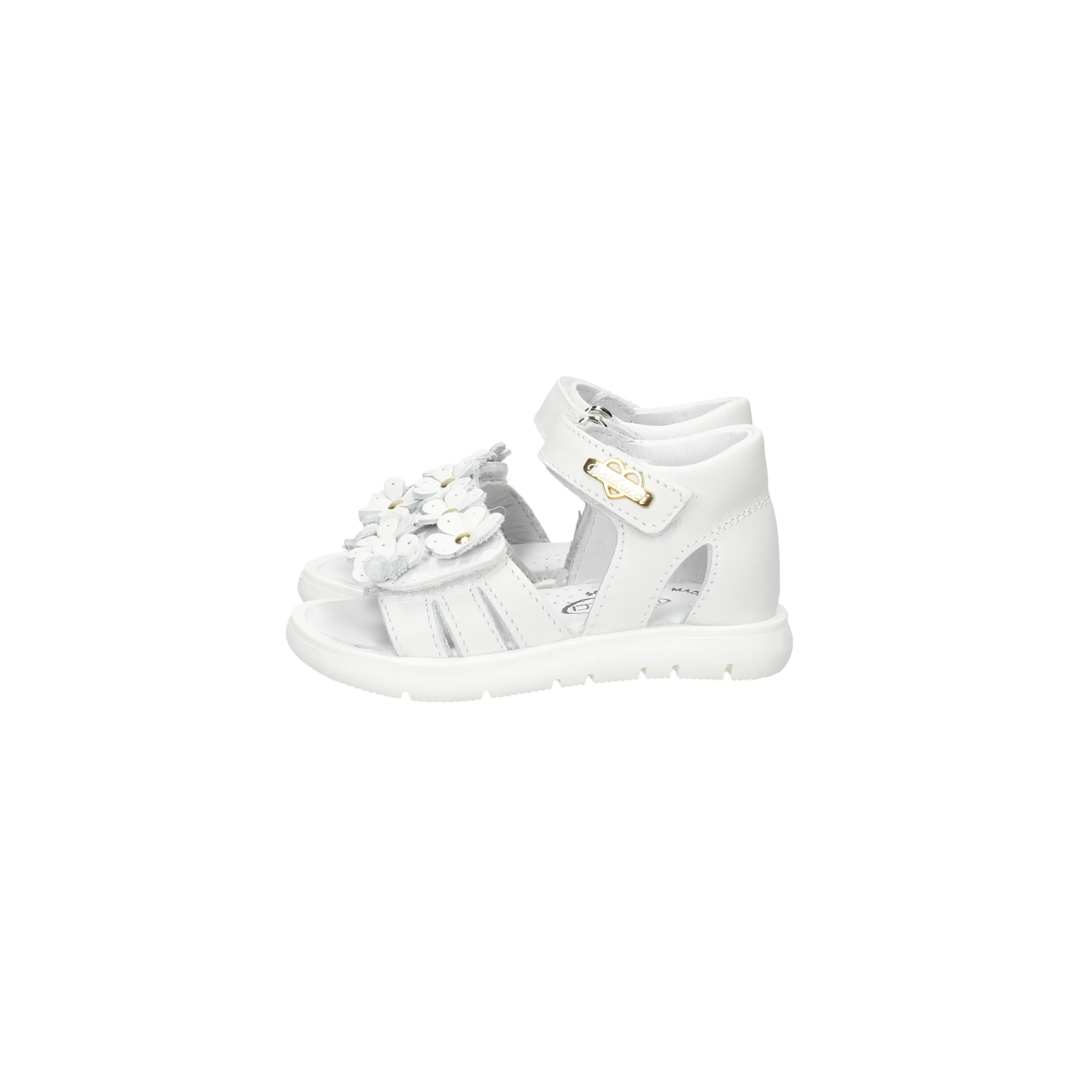 Presenta fiori con borchie sul davanti con fascia strappo regolabile sia sul davanti che come chiusura.