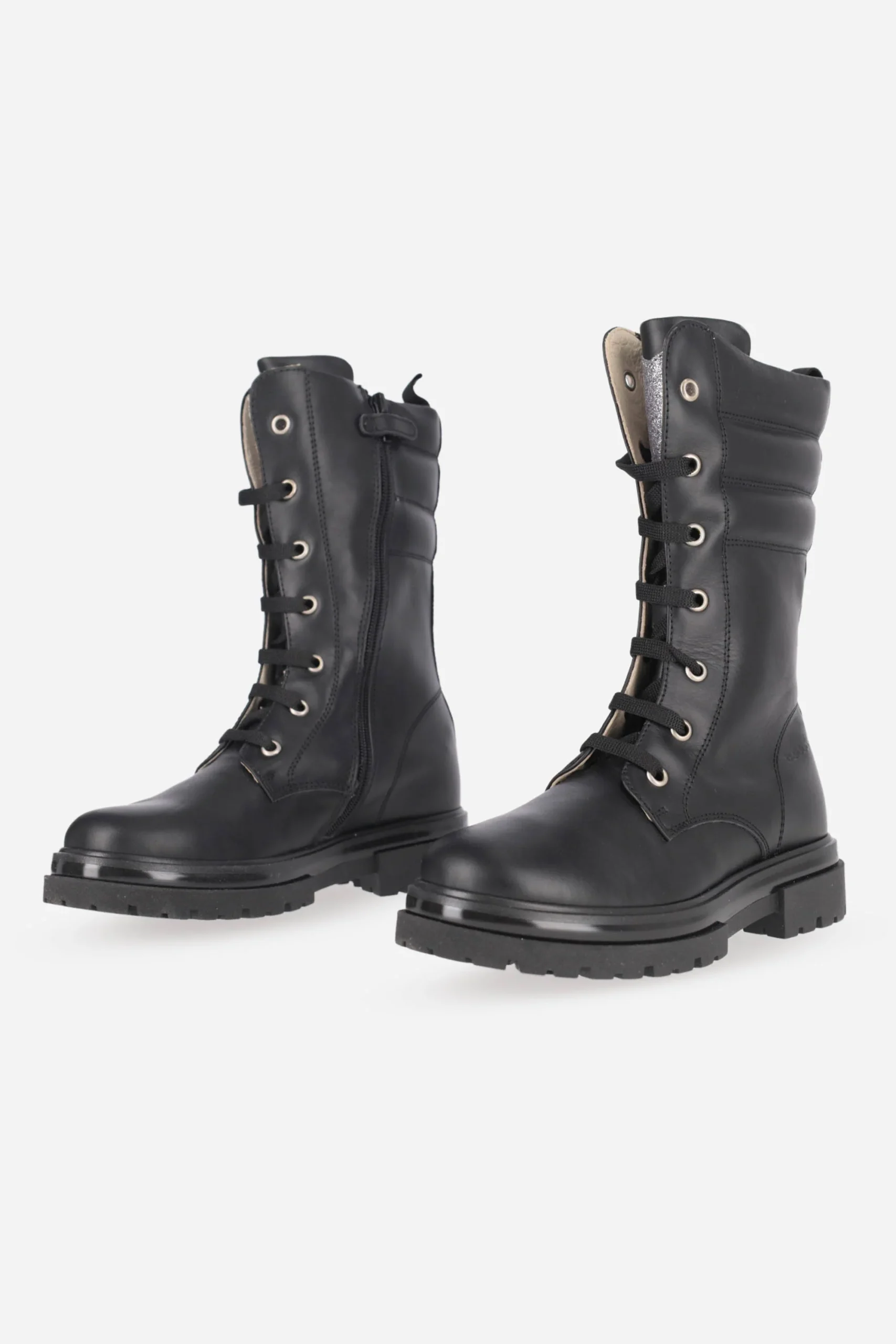 Presenta chiusura con lacci in cotone sul davanti e cerniera nella parte interna della calzatura, plantare anatomico in pelle.