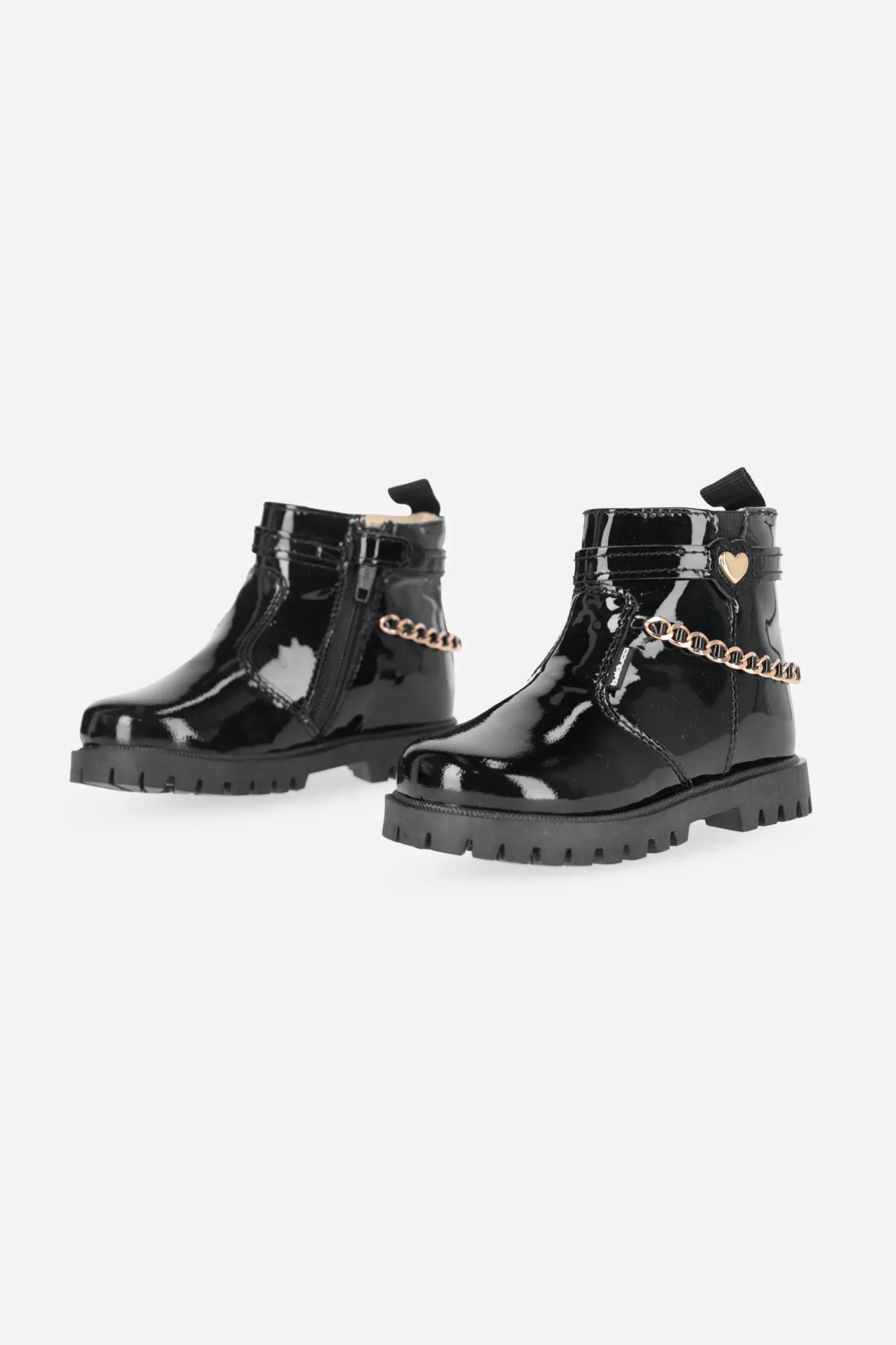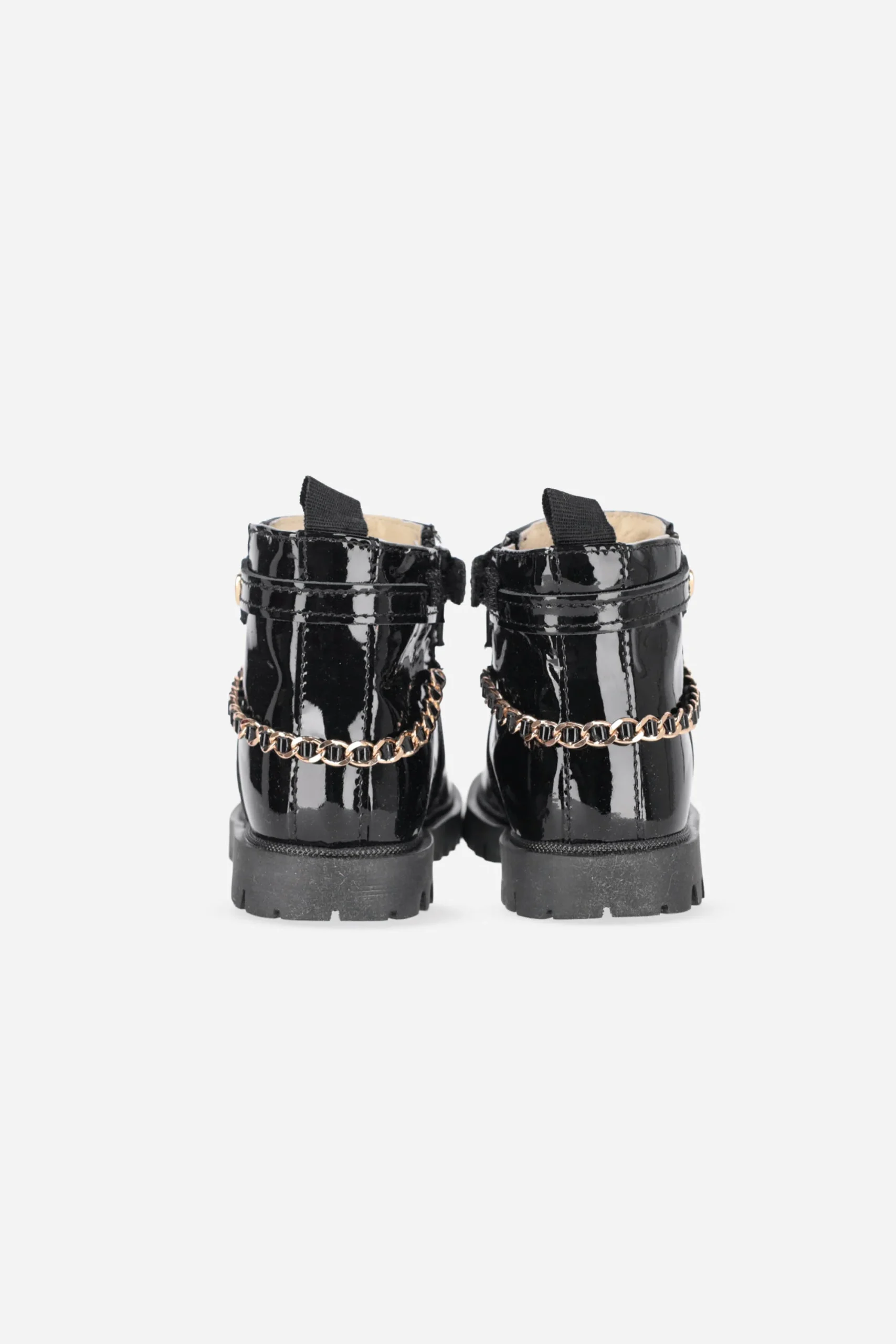 Presenta cerniera nella parte interna della calzatura e plantare anatomico in pelle, con catena sul retro del tallone.