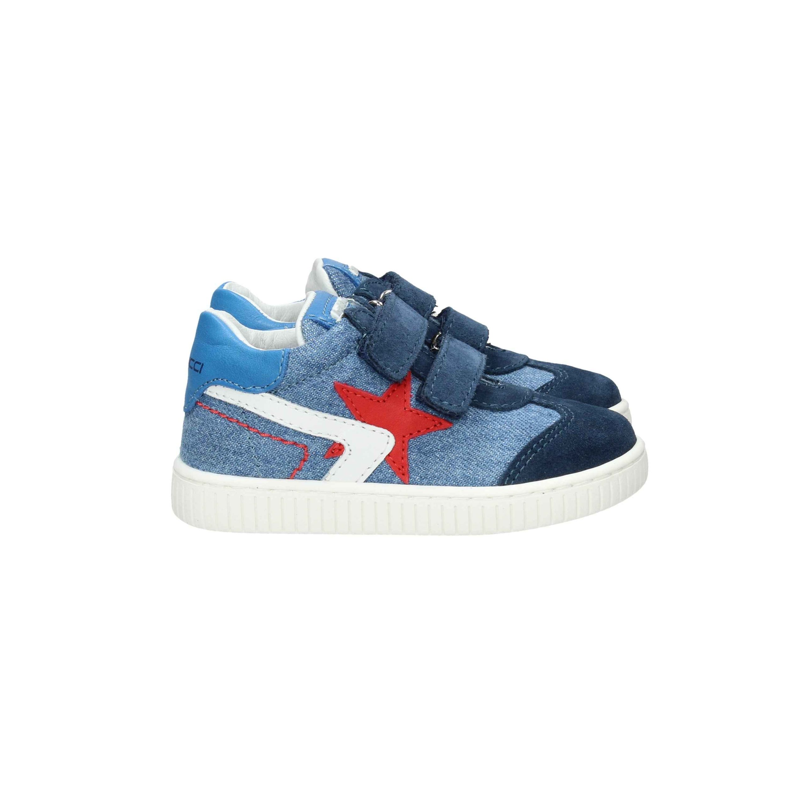 La sneakers è realizzata in camoscio e jeans con dettagli a contrasto.