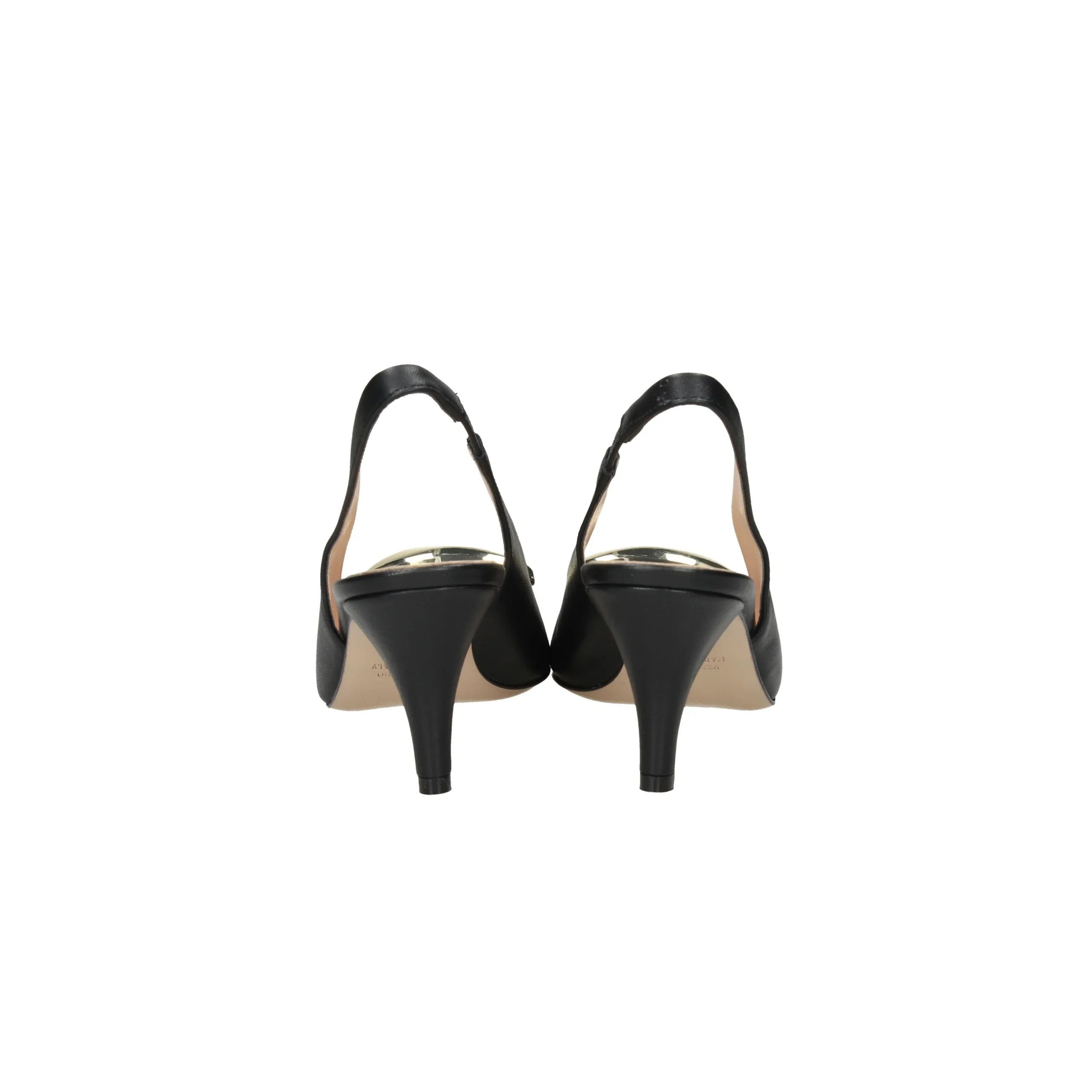 Presenta accessorio in metallo sul davanti, cinturino al tallone con elastico nella parte interna.