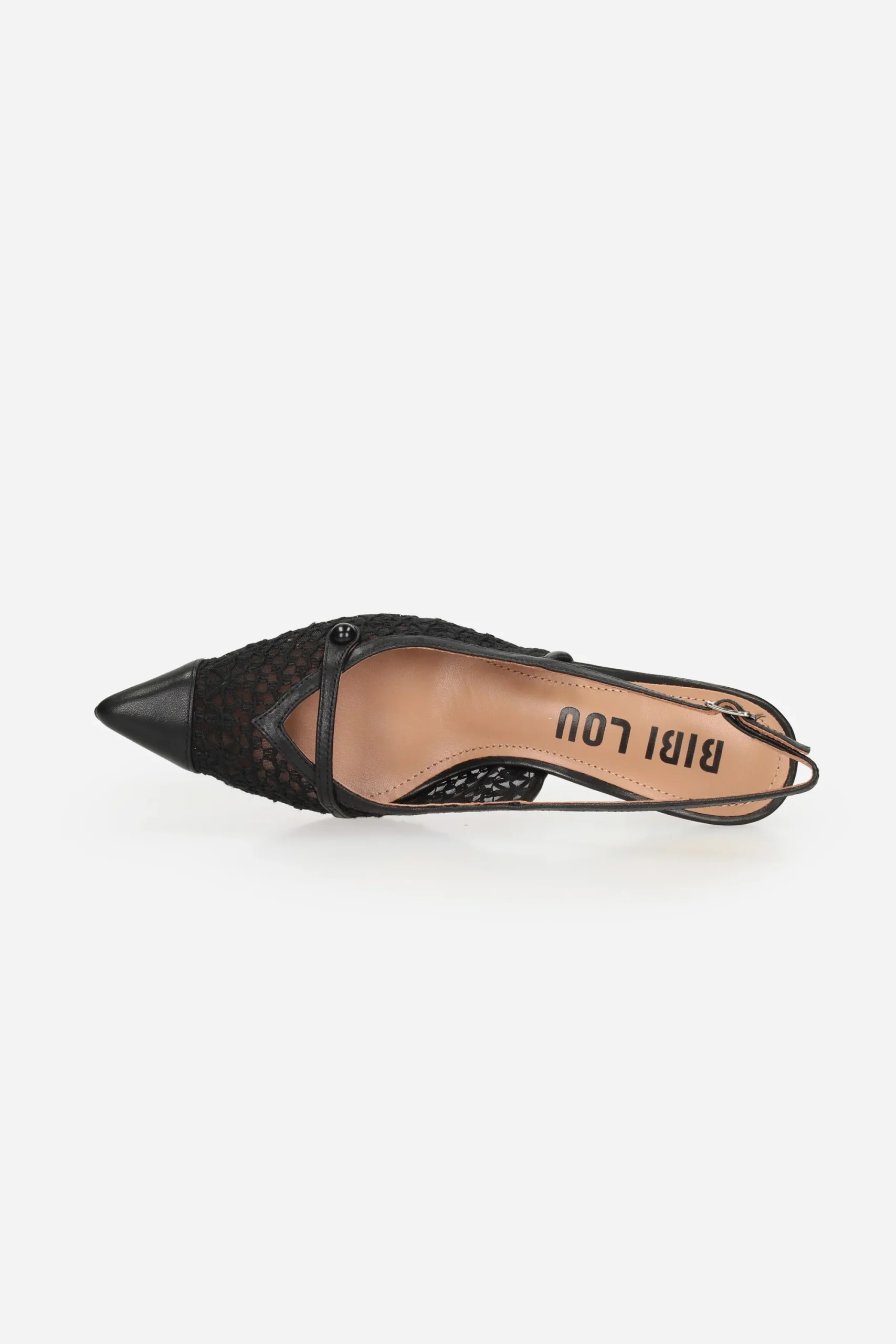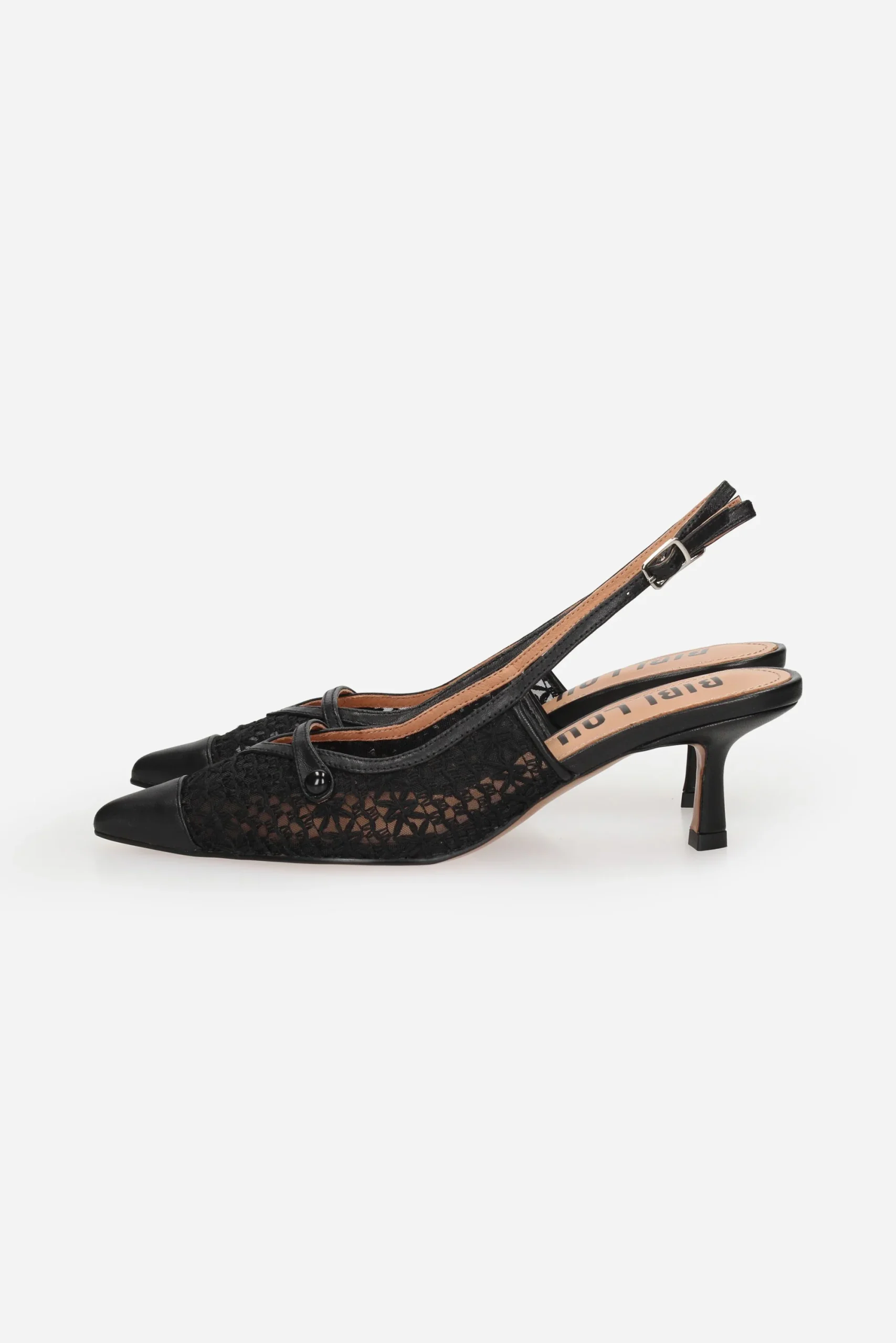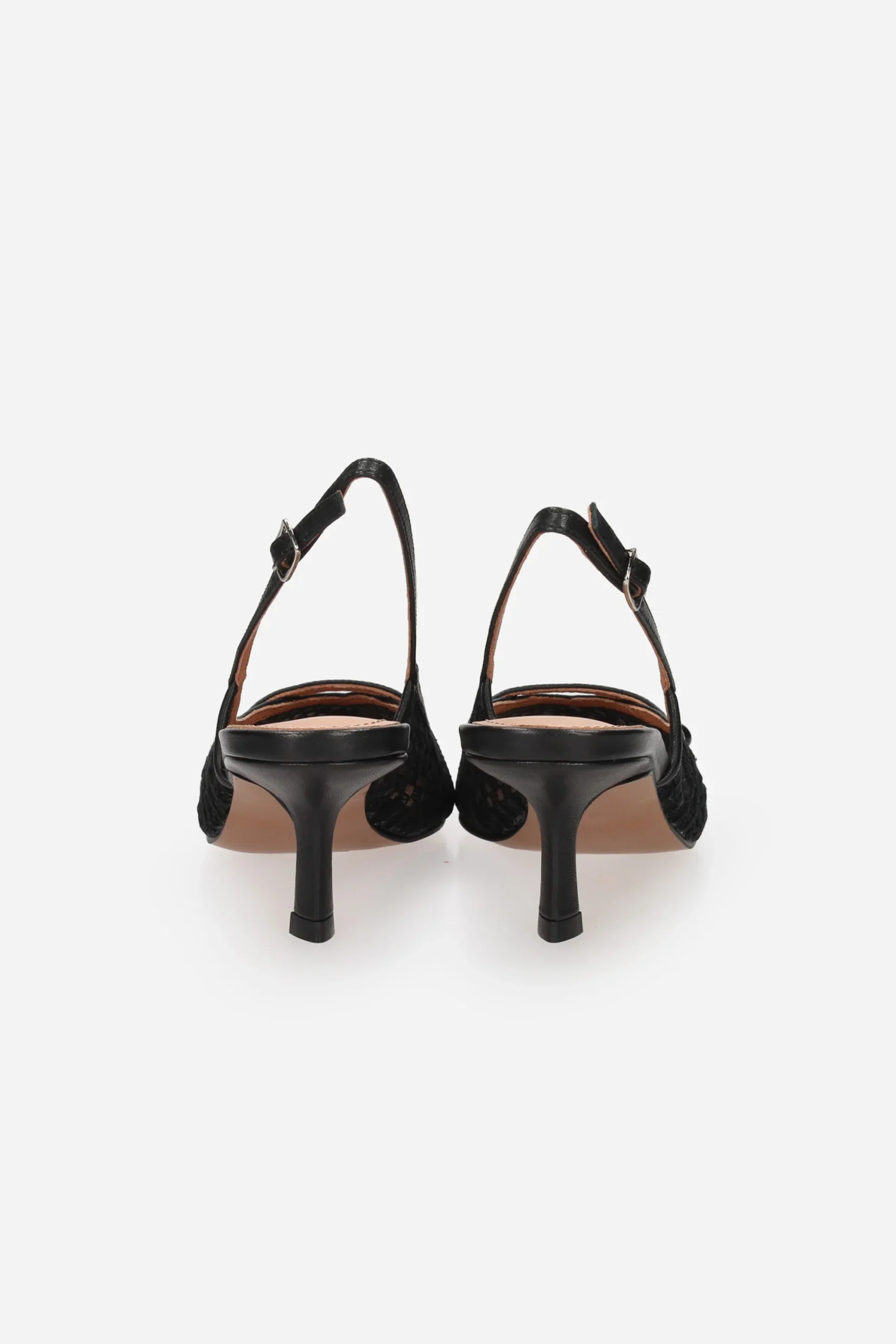 Presenta cinturino al tallone con fibbia regolabile e plantare in pelle.