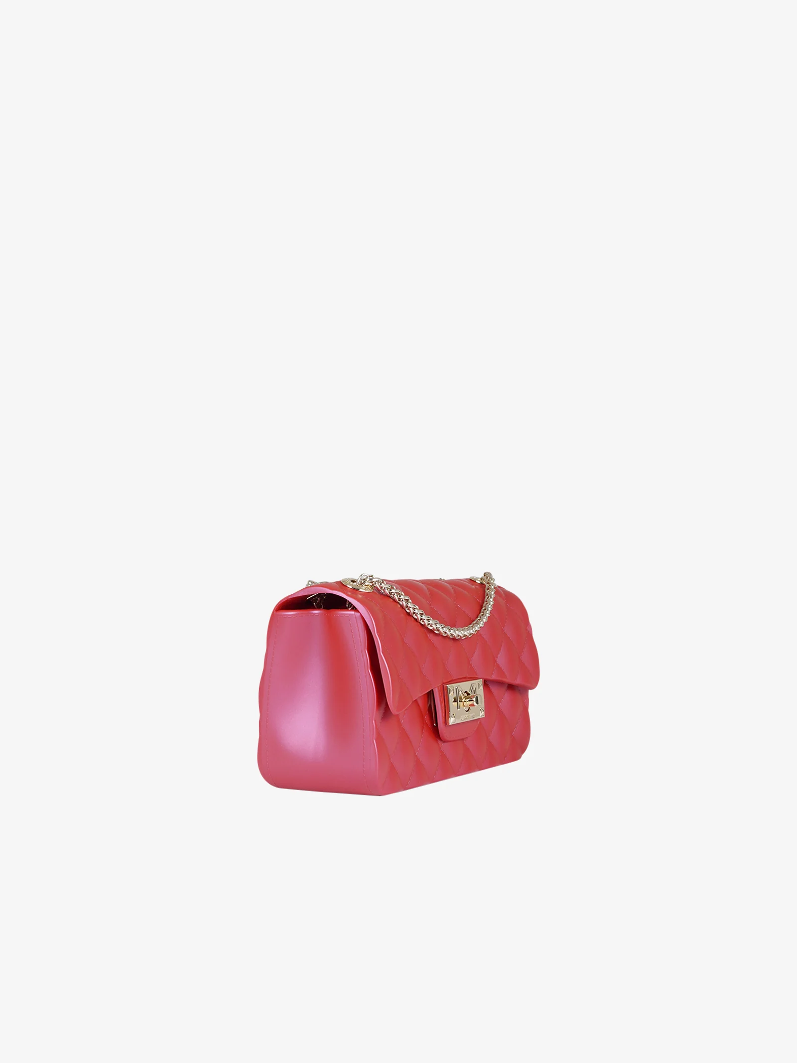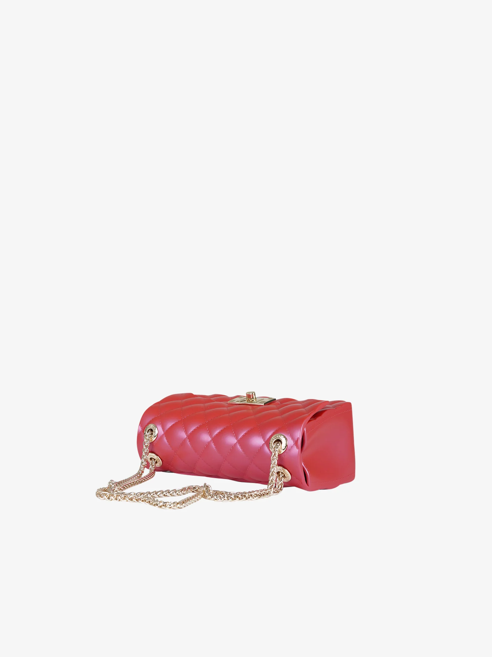 Dettagli: Elegante e compatta, la Flat Falcon XS è la borsa a spalla gommata effetto matelassé con patta e dettagli in metallo per un look sofisticato.