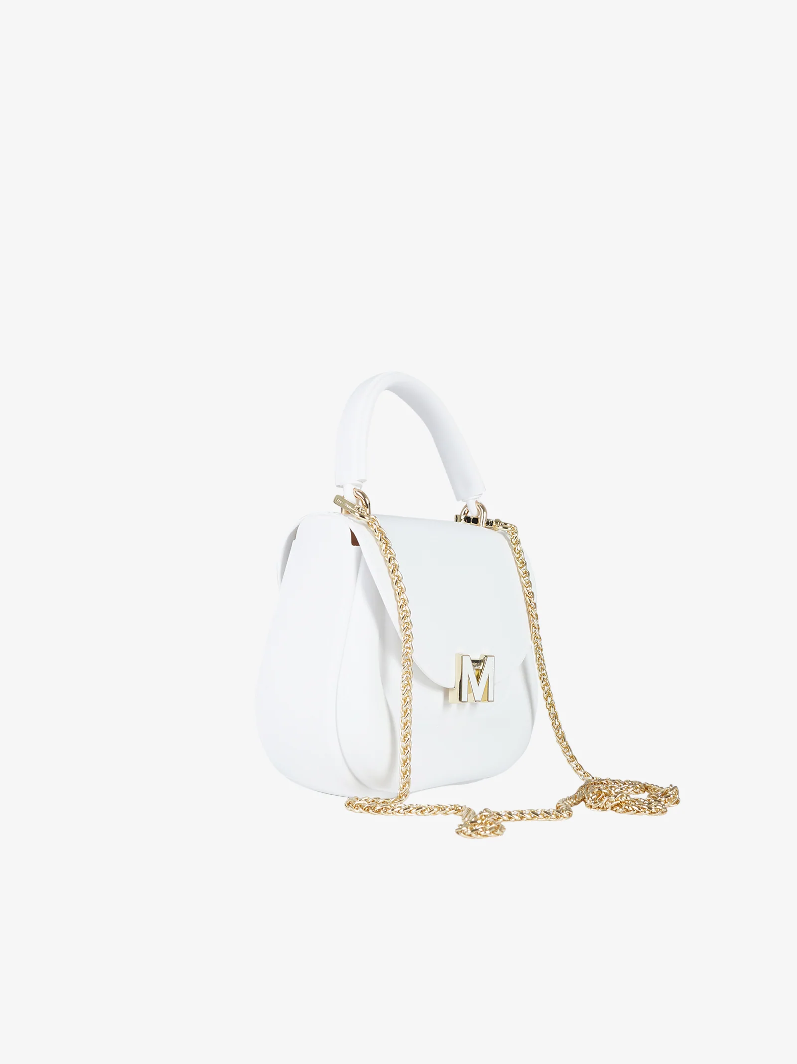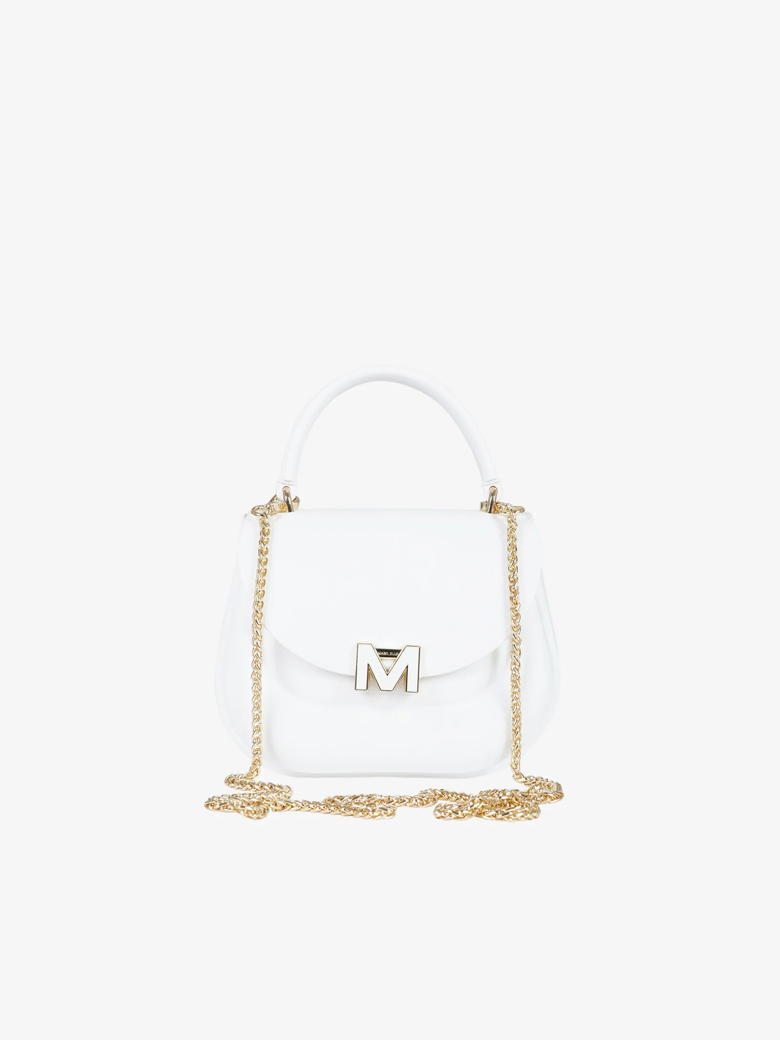 Dettagli: Borsa a mano Flat Jelly realizzata in materiale rigido dalla linea arrotondata, presenta una pattina con chiusura a clip magnetica impreziosita dall’iniziale “M” dorata sul davanti. L’interno è spazioso, con scomparto unico ideale per contenere l’essenziale quotidiano. Può essere portata a mano grazie al manico superiore, oppure a spalla/crossbody grazie alla tracolla a catena dorata inclusa, che aggiunge un tocco glam e versatile al modello. Un accessorio chic e senza tempo, perfetto per completare look sia da giorno che da sera.