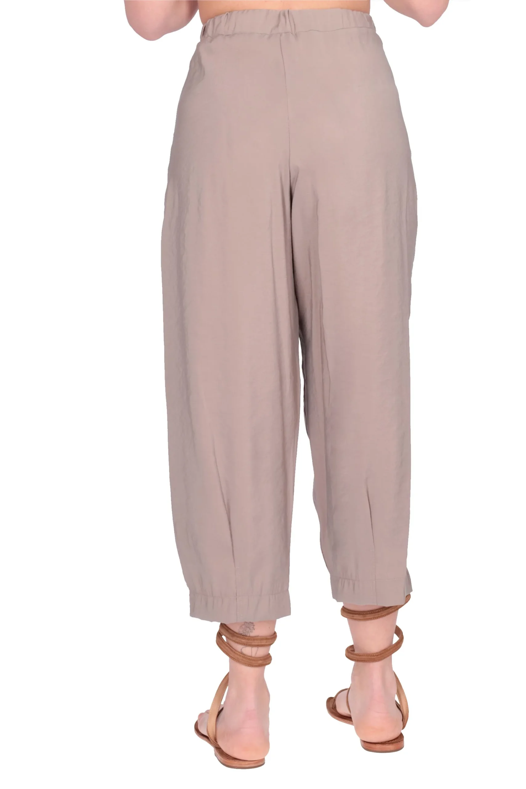 Presenta elastico in vita e pinces sia sulla parte superiore che sul fondo.
