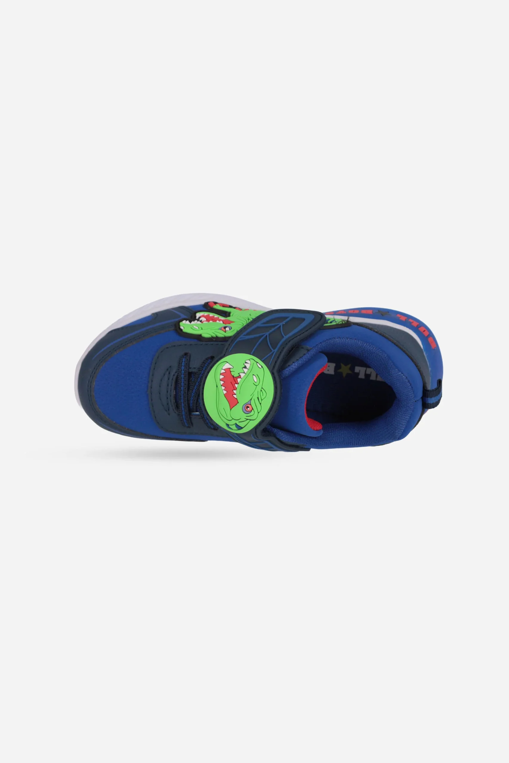 Dinosauro nella parte laterale esterna in gomma, luci che si accendono.