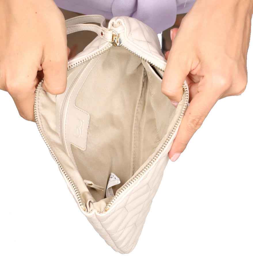 Il portatutto è realizzato in poliuretano con motivo trapuntato e logo sul davanti.