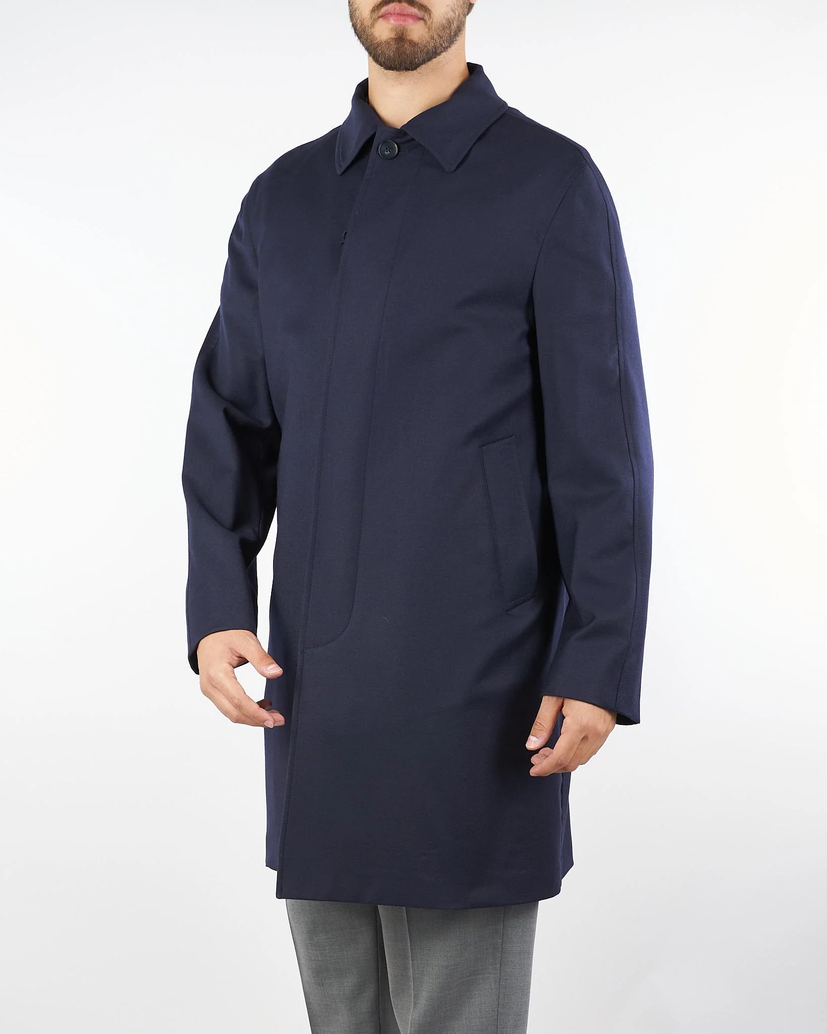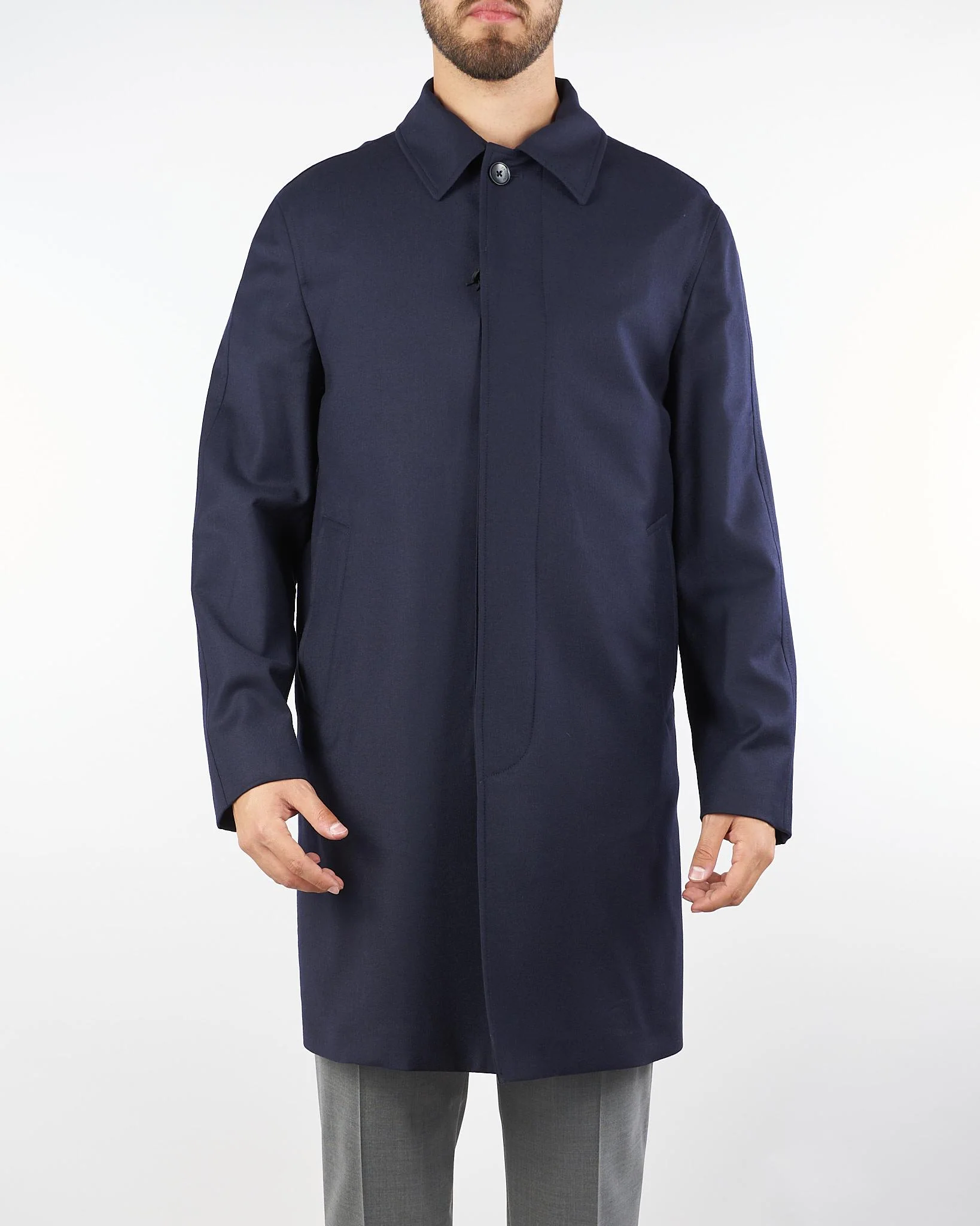 Cappotto in pura lana di Paoloni. Modello con colletto, maniche lunghe, tasche laterali. Chiusura centrale con bottoni. Regular fit.