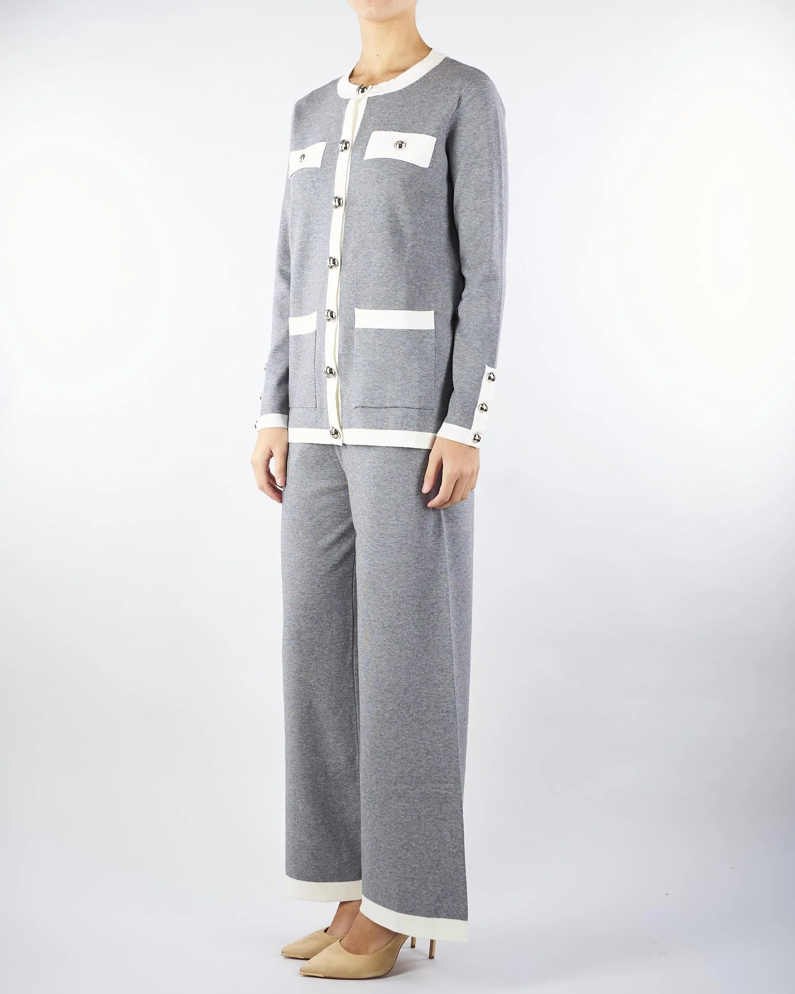 Cardigan con profili a contrasto di No Secrets. Modello girocollo con maniche lunghe. Tasche sul davanti. Chiusura con bottoni in metallo.