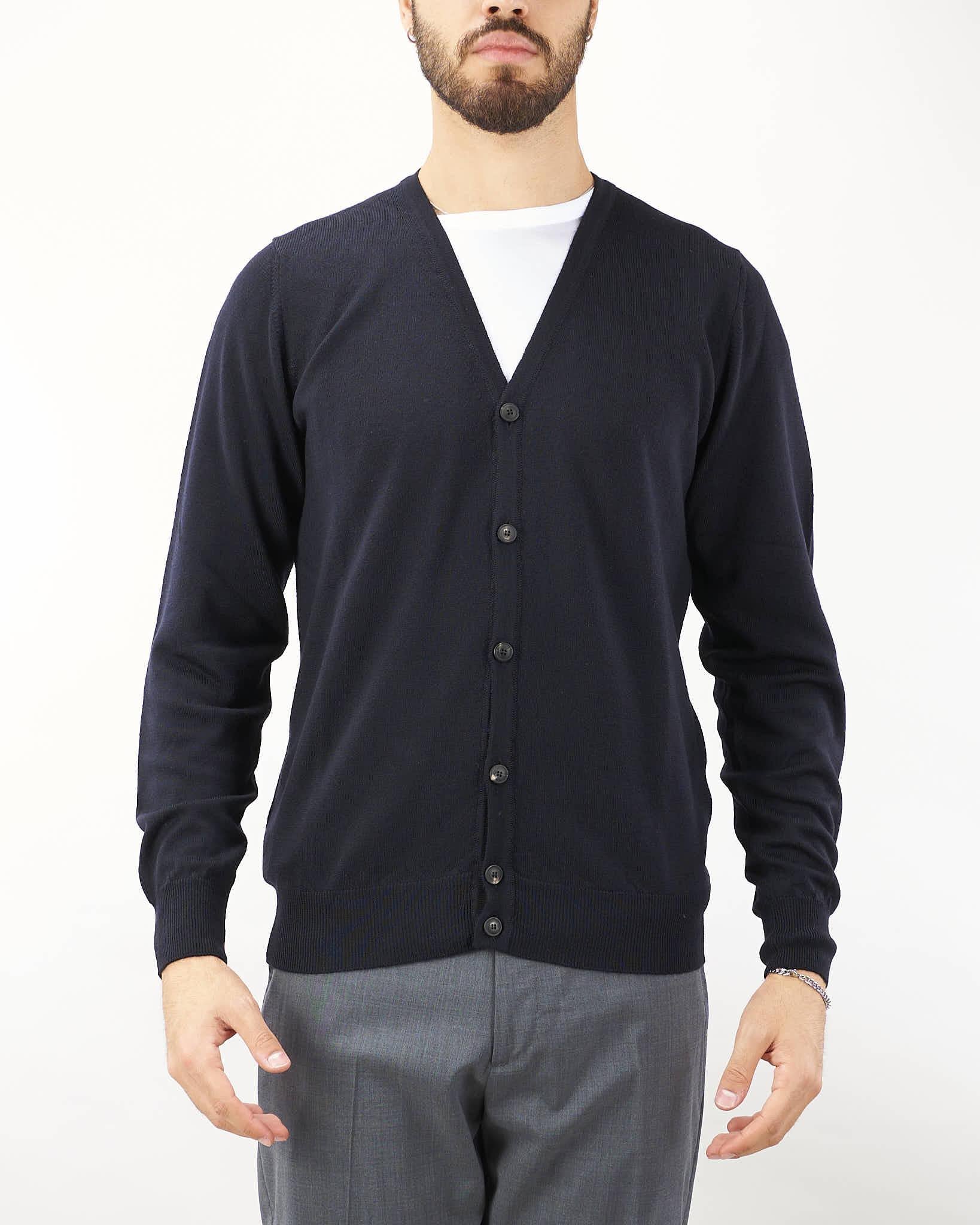 Cardigan in lana di Clips. Modello con scollo a V e maniche lunghe. Tasche sul davanti. Fondo e polsini a costine asimmetrino. Chiusura centrale con bottoni. Ricamo sul davanti.