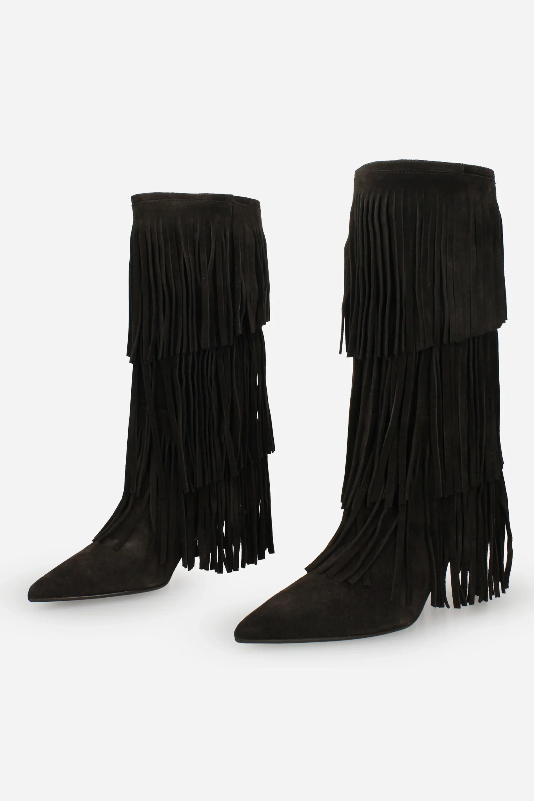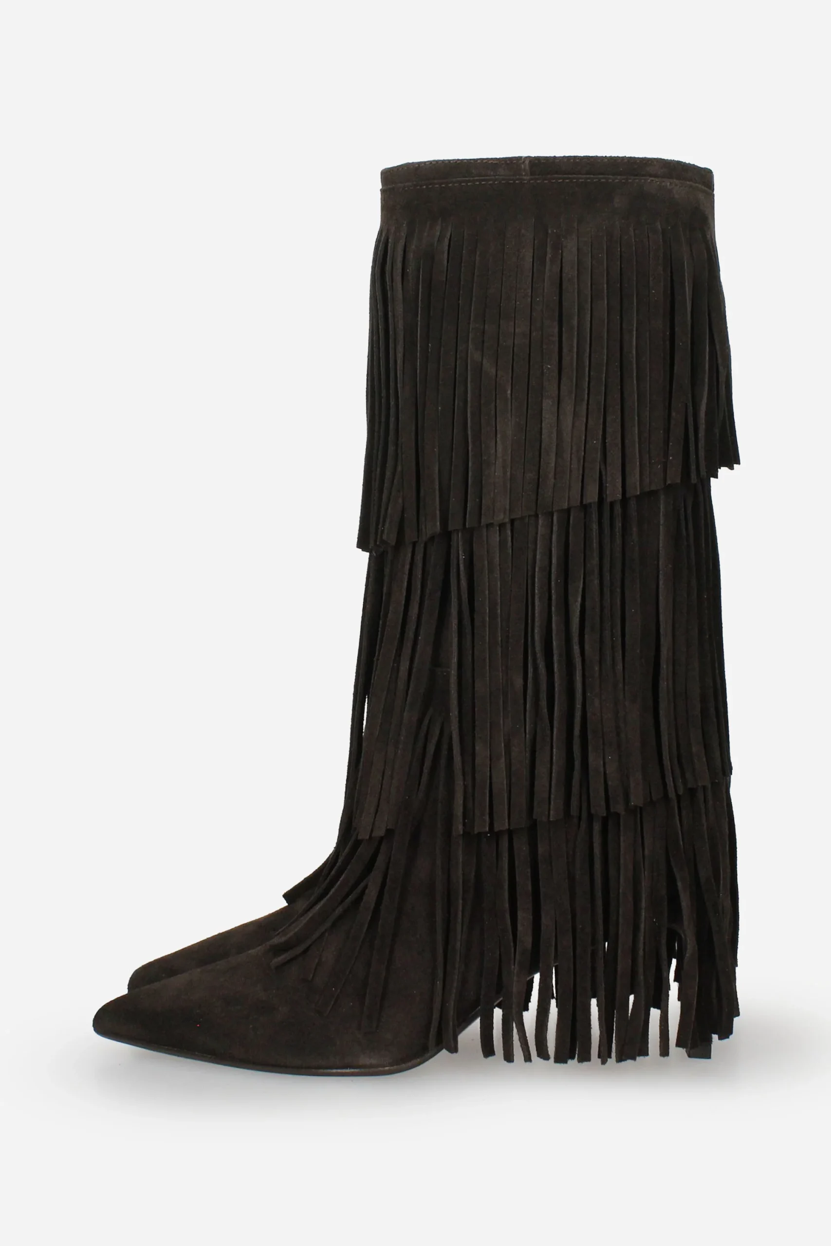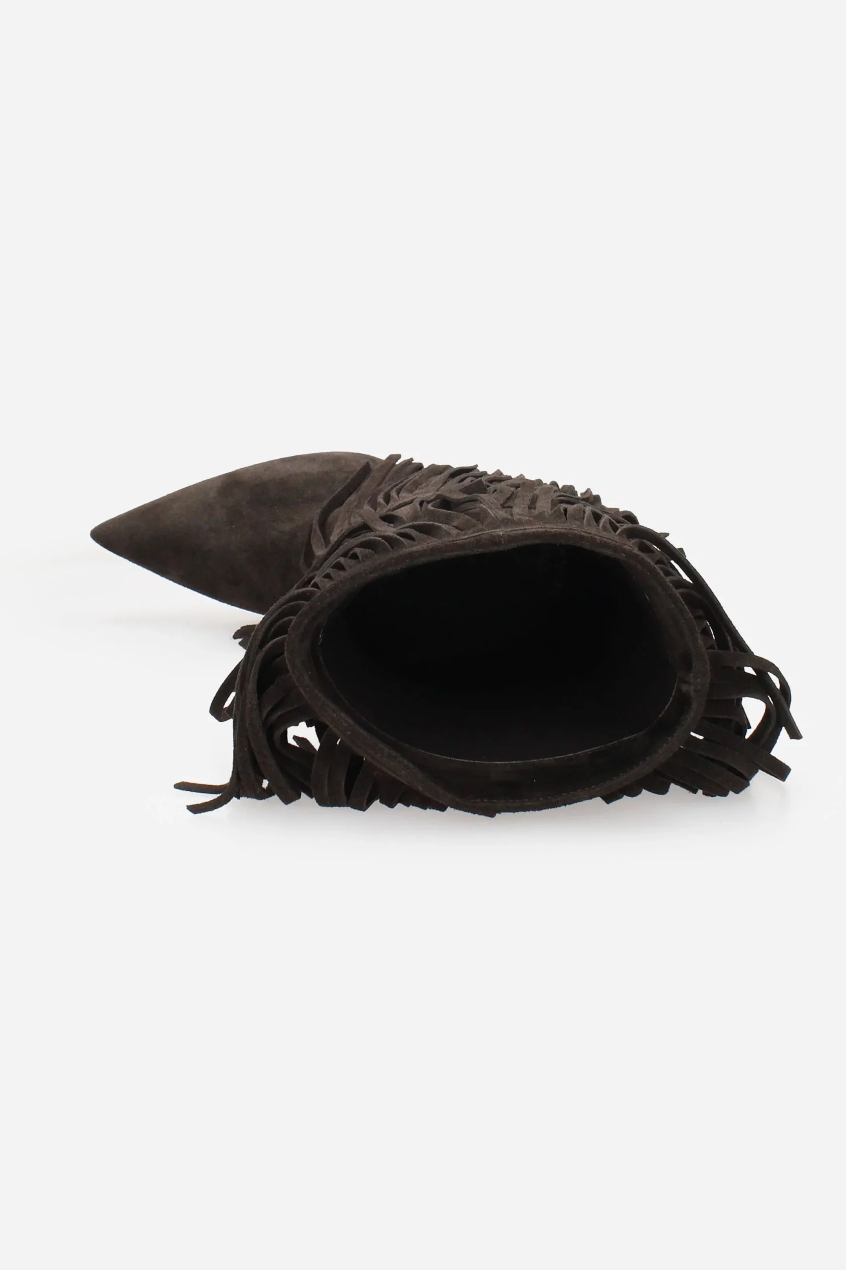 Presenta frange intorno alla calzatura, plantare in pelle.