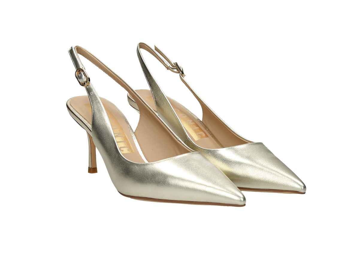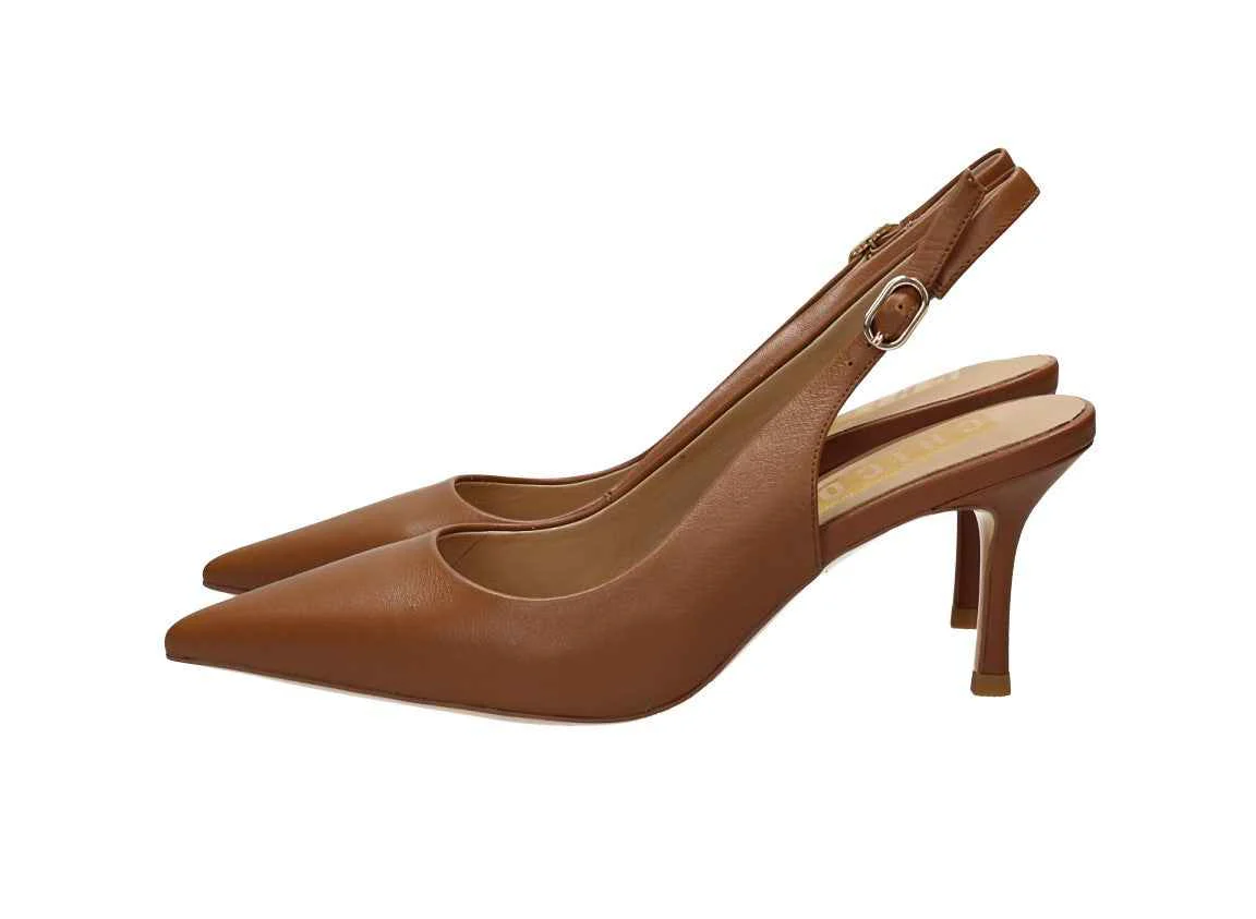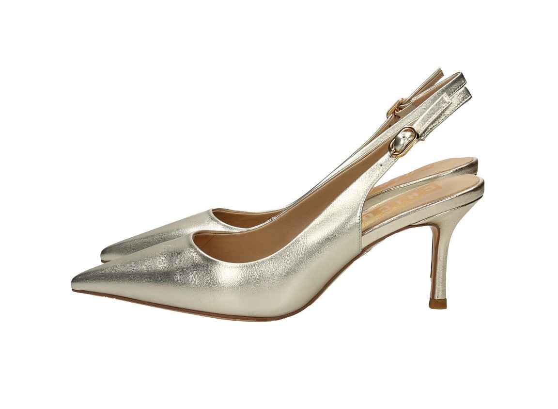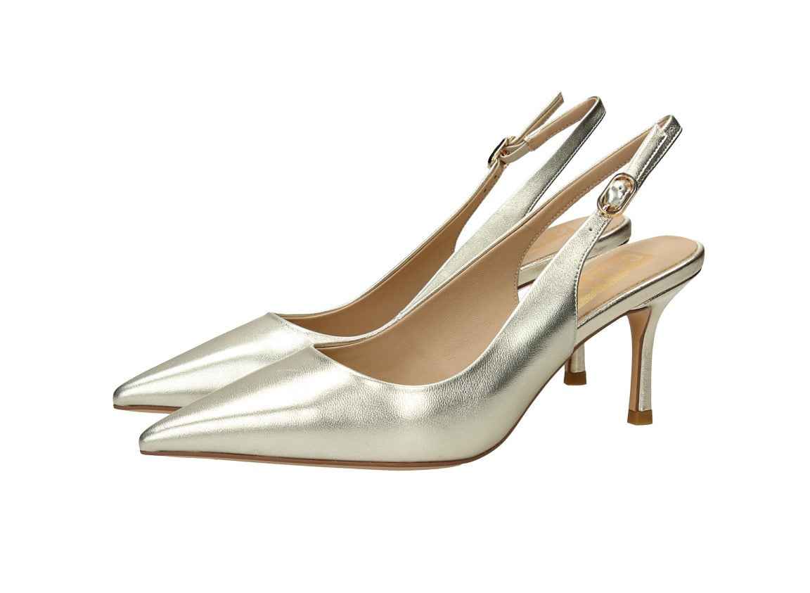 Chanel in nappa, tacco alto 7cm, suola in gomma, con cinturino regolabile, soletta in pelle.