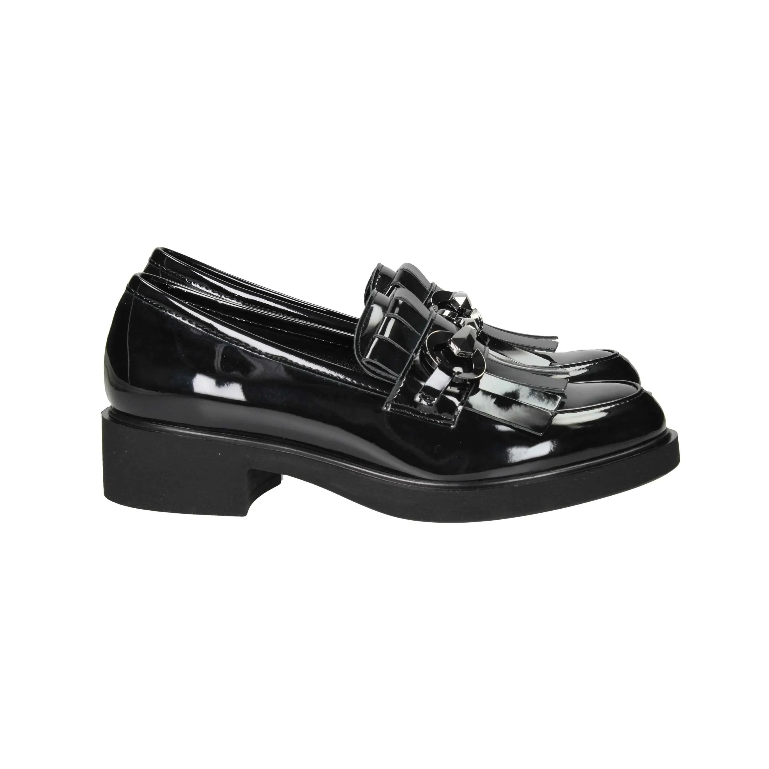 Presenta accessorio in metallo con frange sul davanti, plantare estraibile in memory foam.