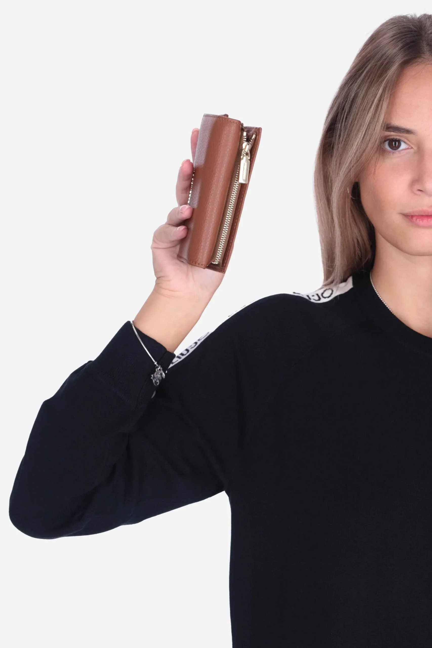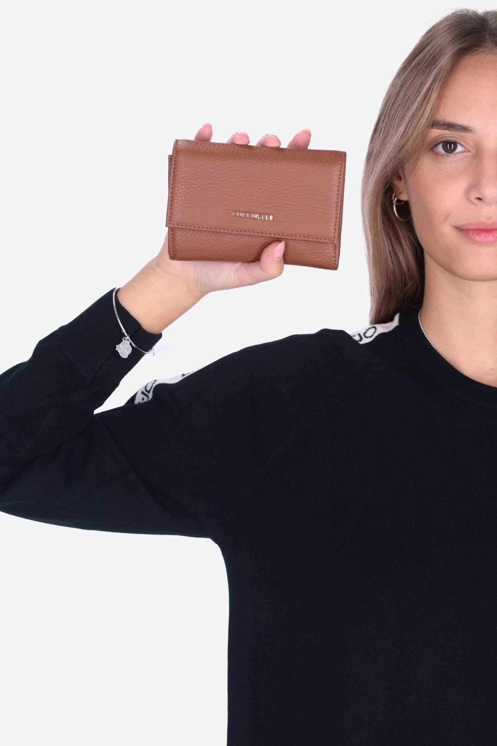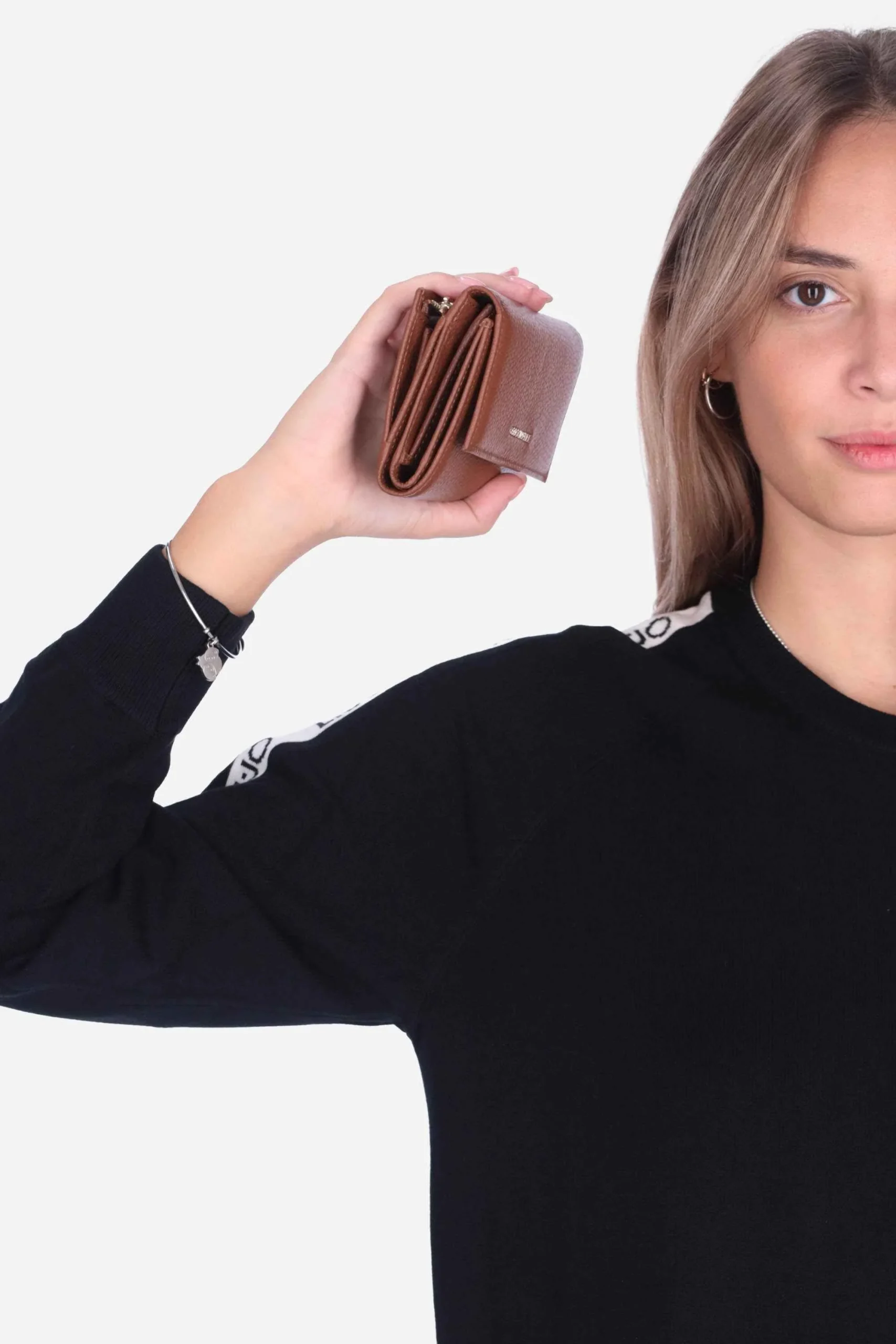 Il portafoglio è realizzato in pelle con grana, con logo lettering sul davanti.