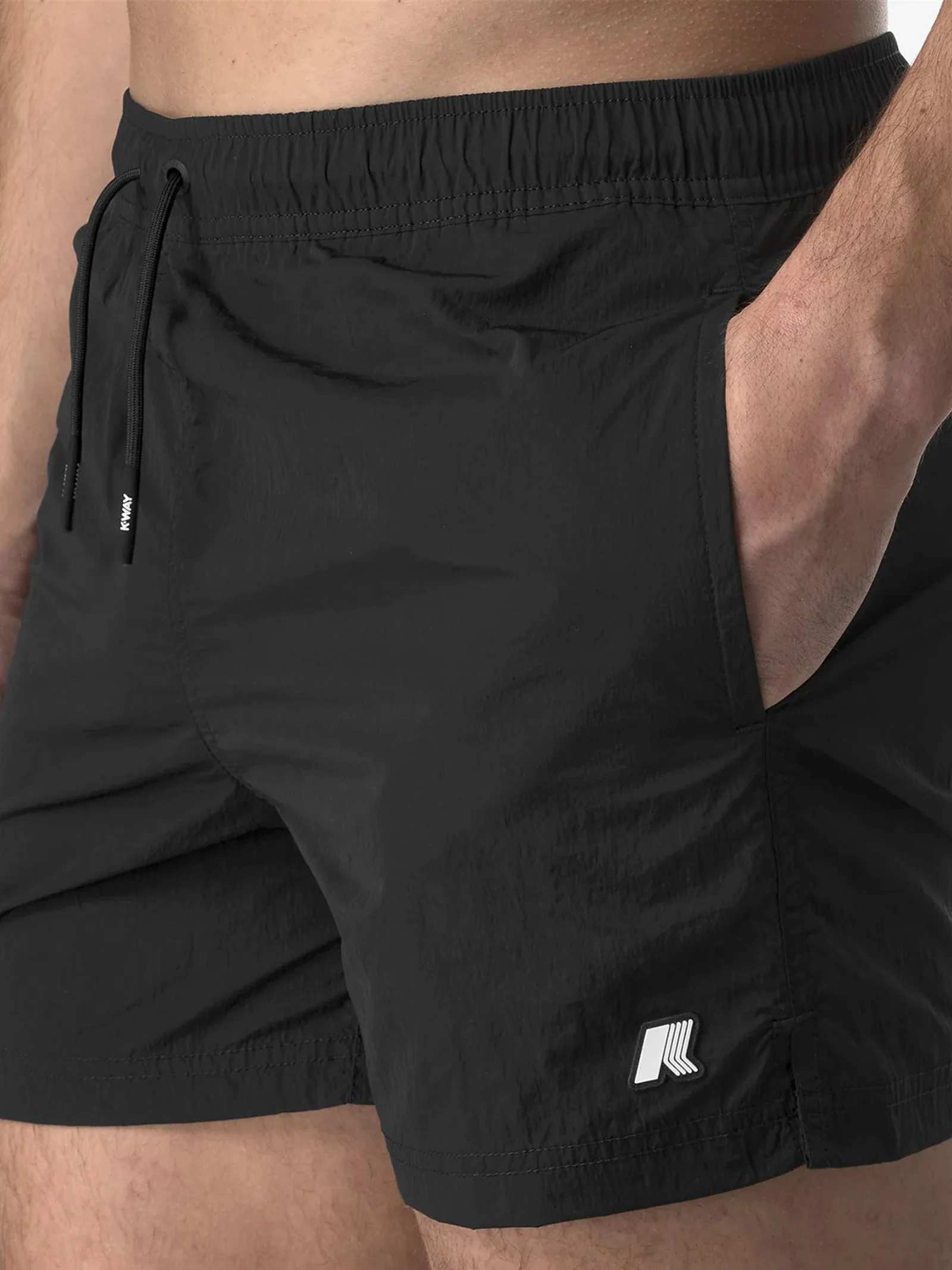 Dettagli: Hazel è un costume da bagno da uomo modello boxer corto dal design essenziale e versatile. Il costume presenta due tasche laterali e una sul retro. Tasca posteriore con dettaglio grafico laserato del logo K-Way, per la fuoriuscita dell’acqua. Realizzato in tessuto ad asciugatura rapida, presenta vita elastcizzata, slip interno in rete e spacchetti laterali che garantiscono massima libertà di movimento.