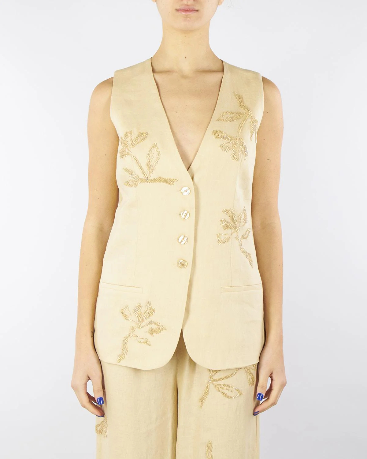 Il gilet è realizzato in poliestere, acrilico, nylon e lana.
