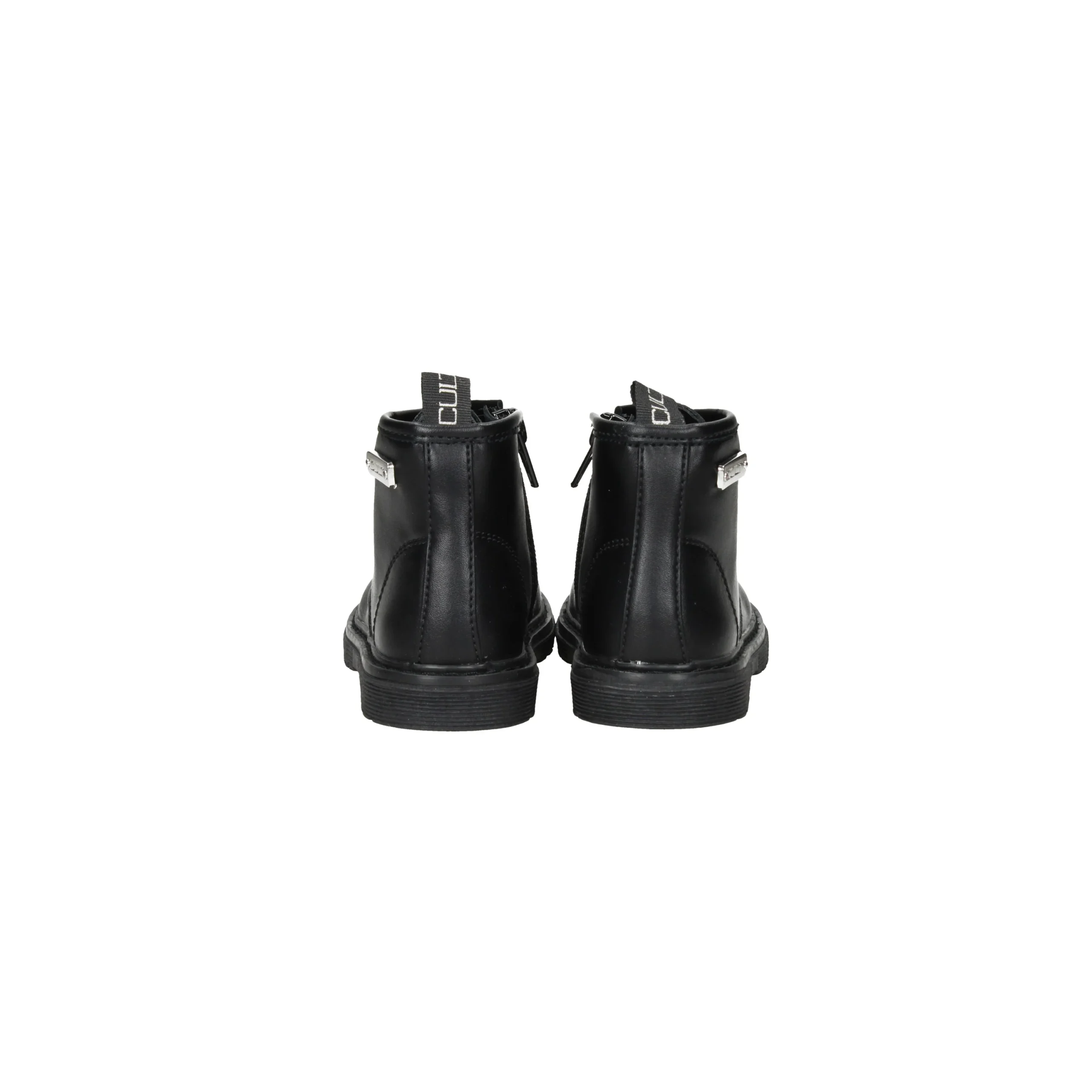 Presenta una chiusura con lacci in cotone sul davanti e cerniera laterale nella parte interna, logo in metallo.