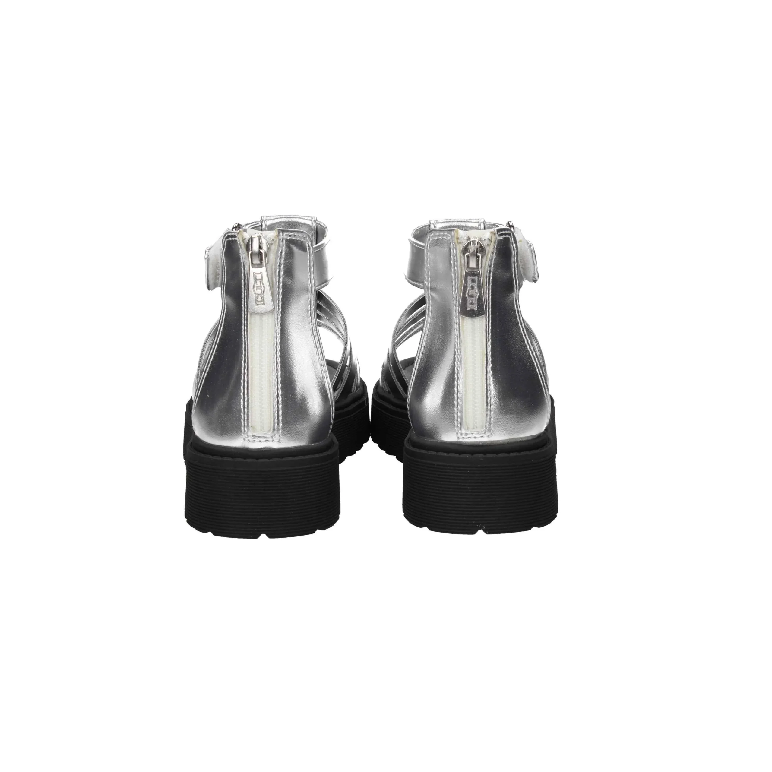 Presenta fasce sul davanti, cinturino alla caviglia con strappo e cerniera sul retro del tallone.