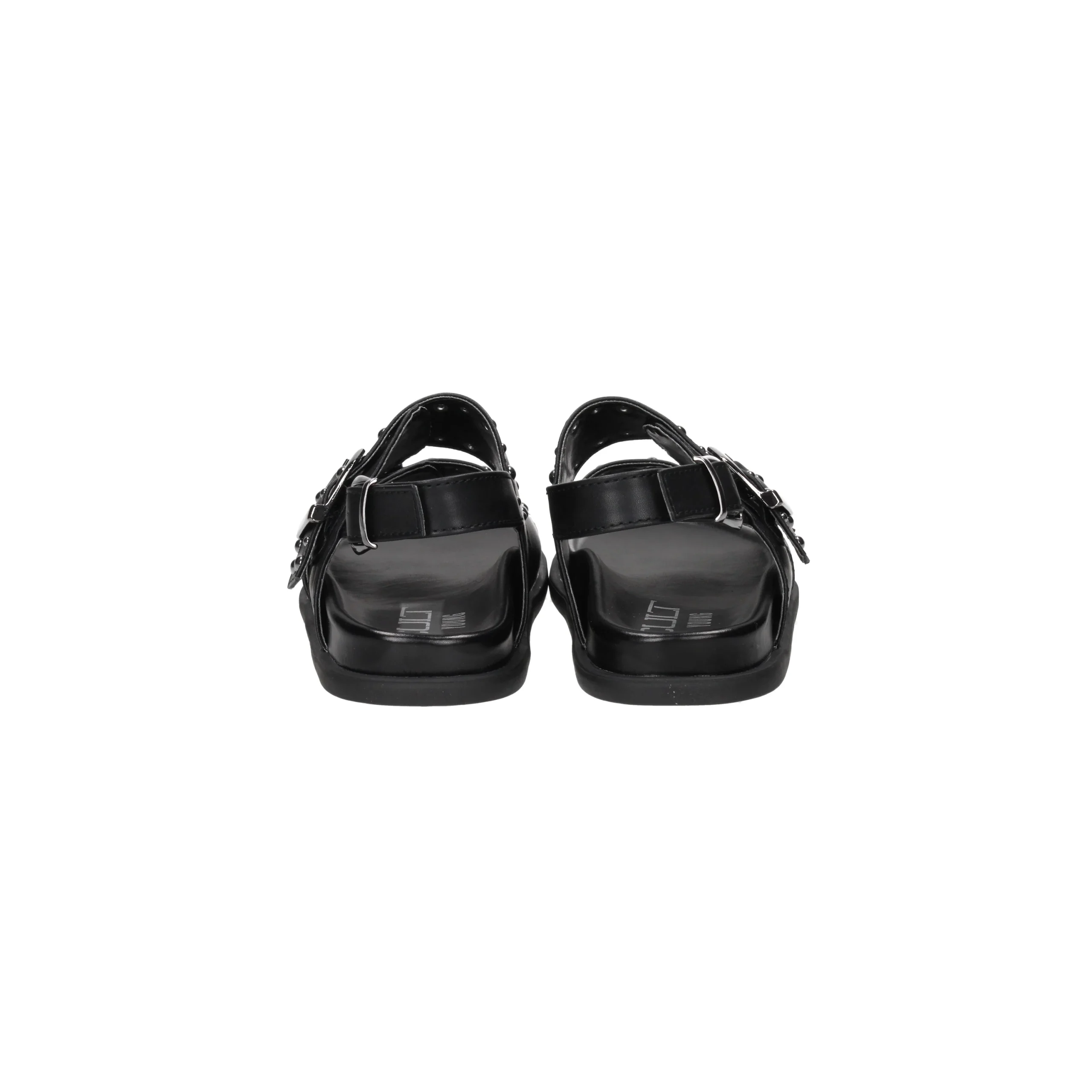 Presenta fasce sul davanti con fibbia regolabile e borchie, cinturino al tallone con fibbia regolabile.