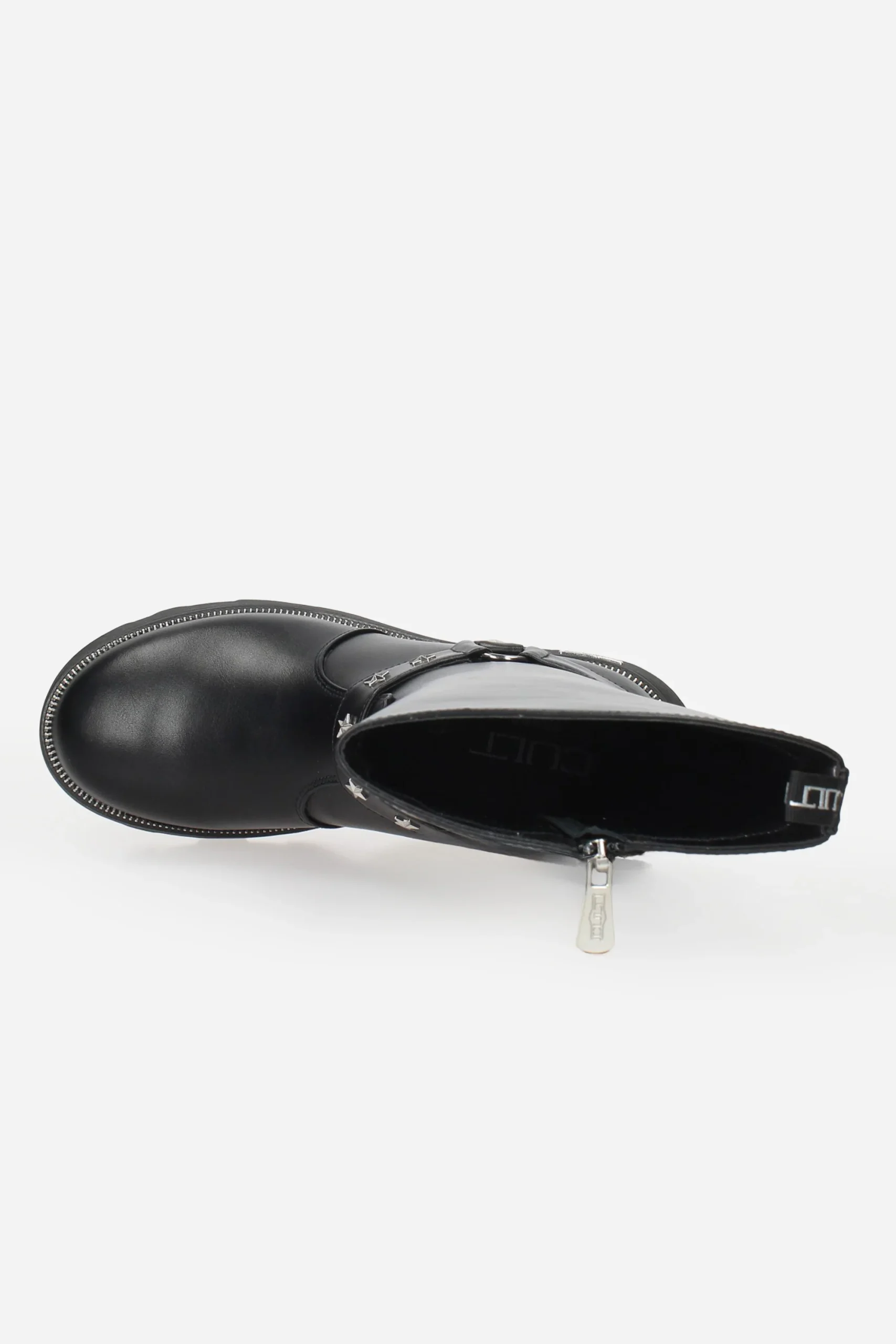 Presenta borchie sul davanti e cerniera nella parte interna della calzatura, plantare in pelle.
