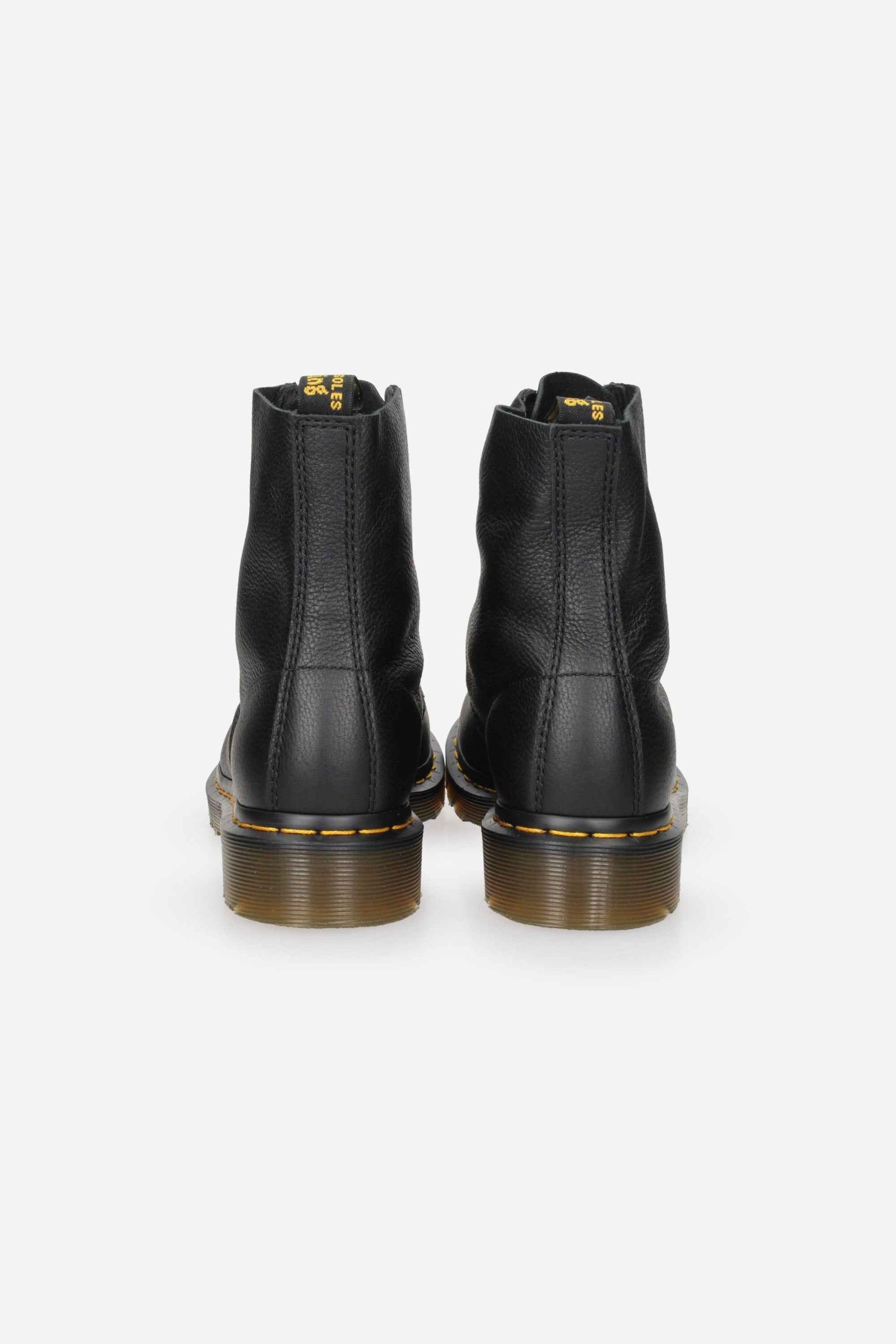 L’anfibio è realizzato in pelle VIRGINIA martellata.