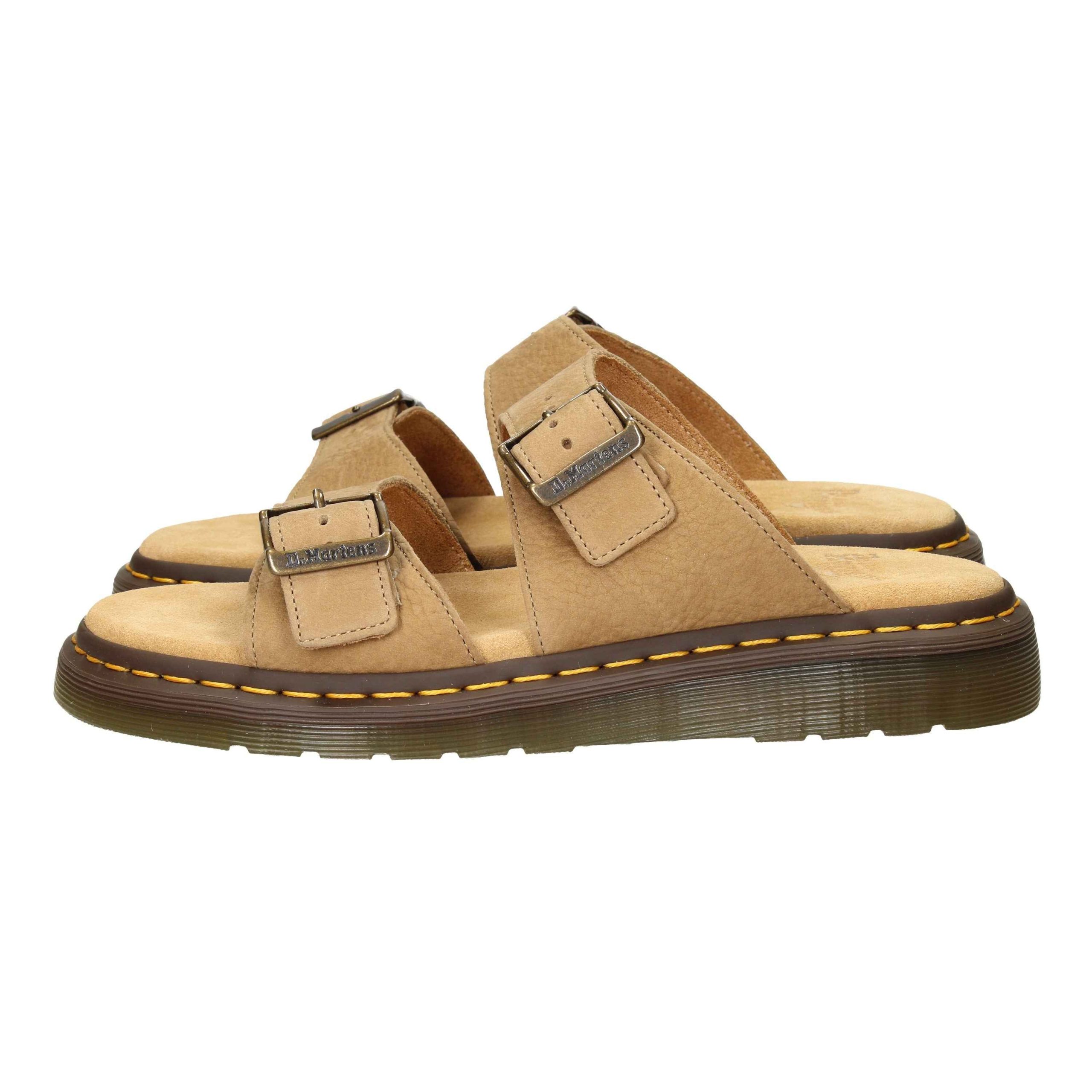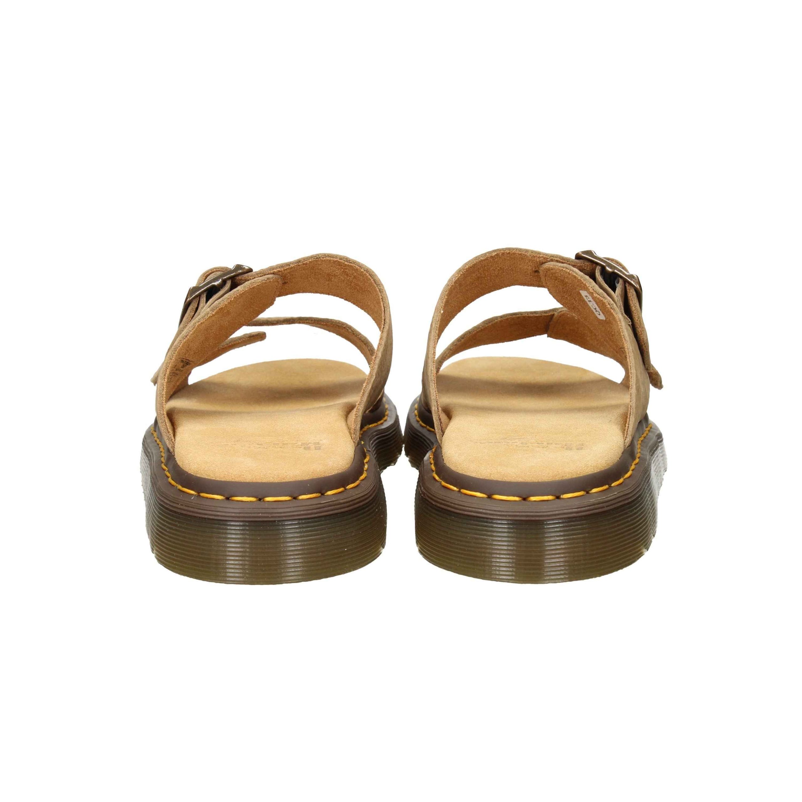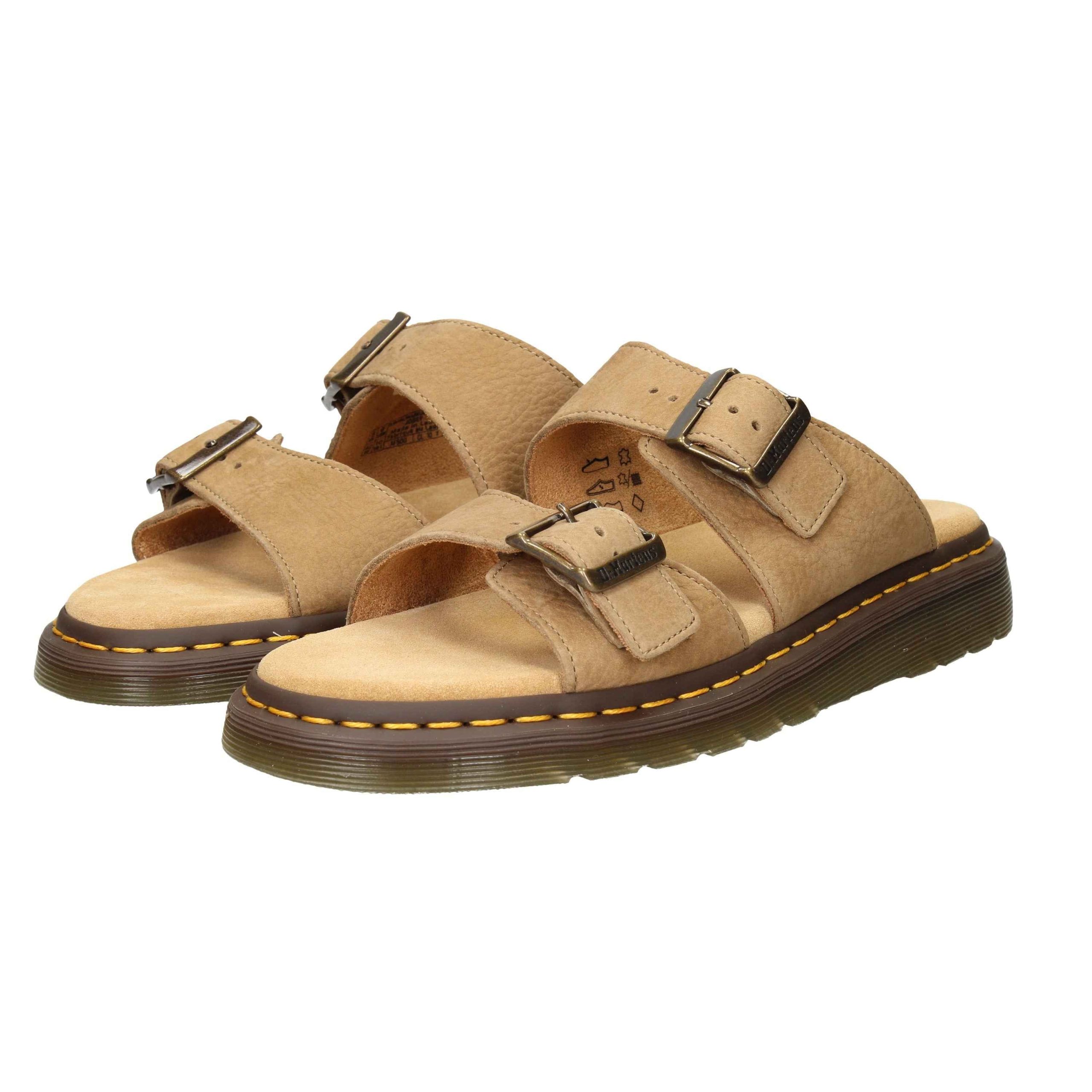 Sandalo in nabuk, suola in gomma, fondo antiscivolo, con cinturino regolabile, plantare in tessuto.