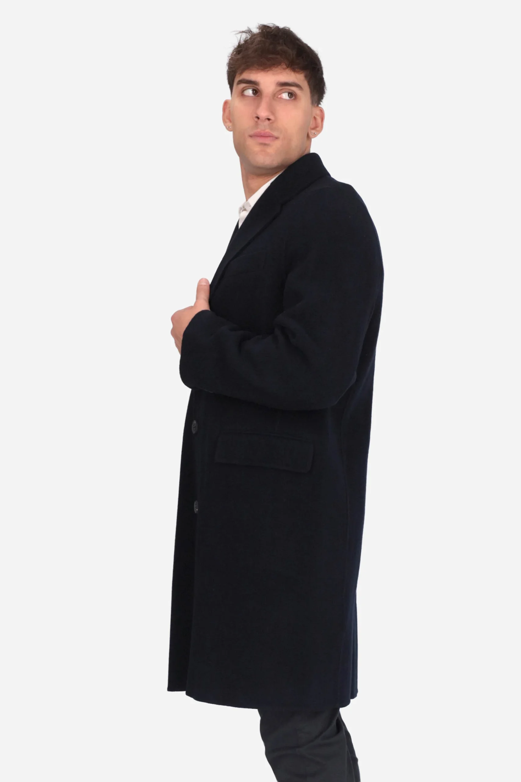 Il cappotto è realizzato in lana riciclata e altre fibre riciclate.