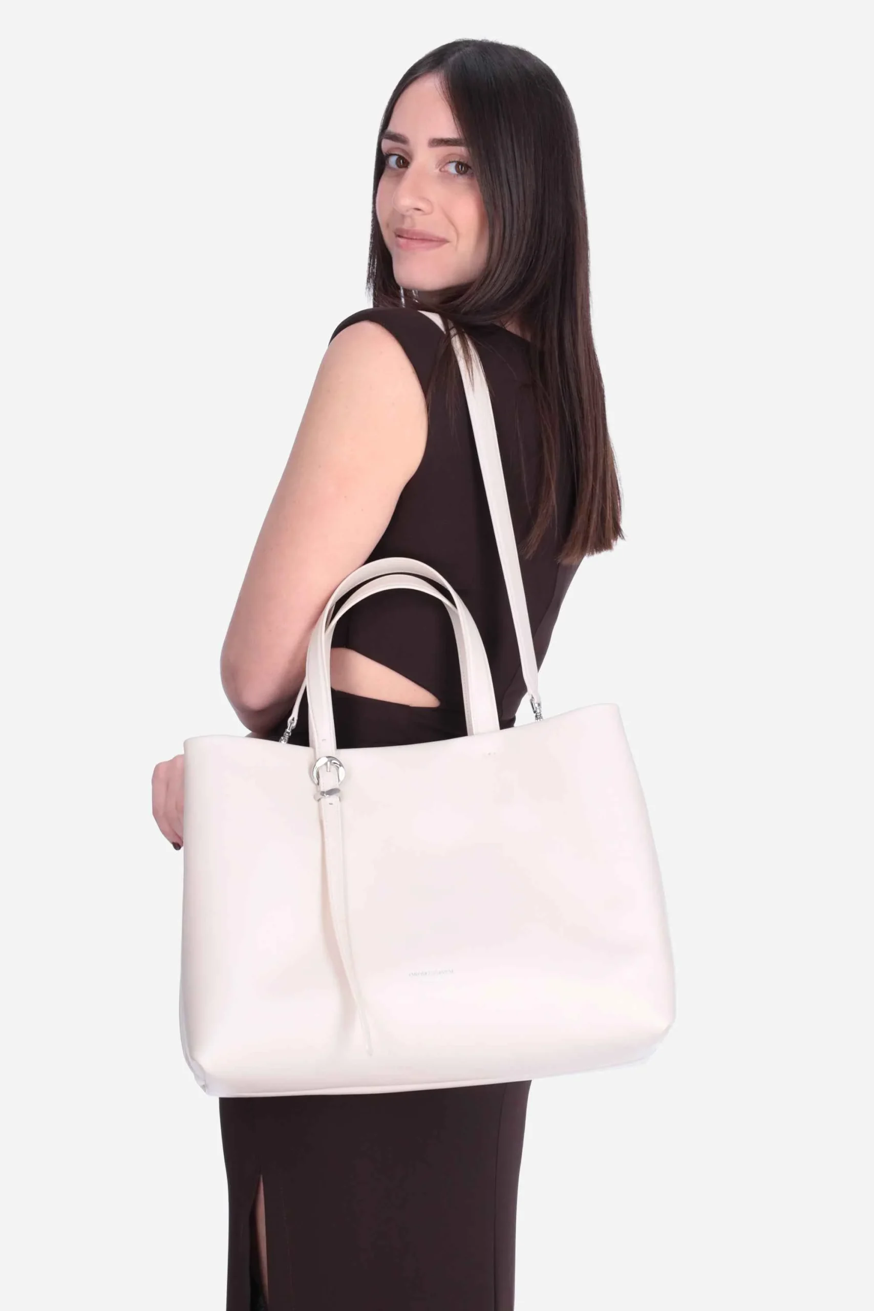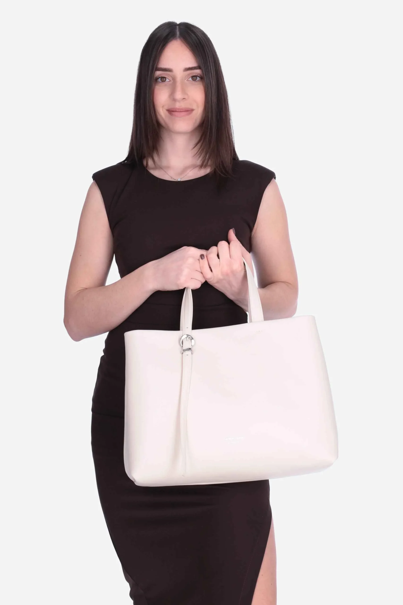 La borsa è realizzata in pregiata pelle liscia con logo sul fondo.