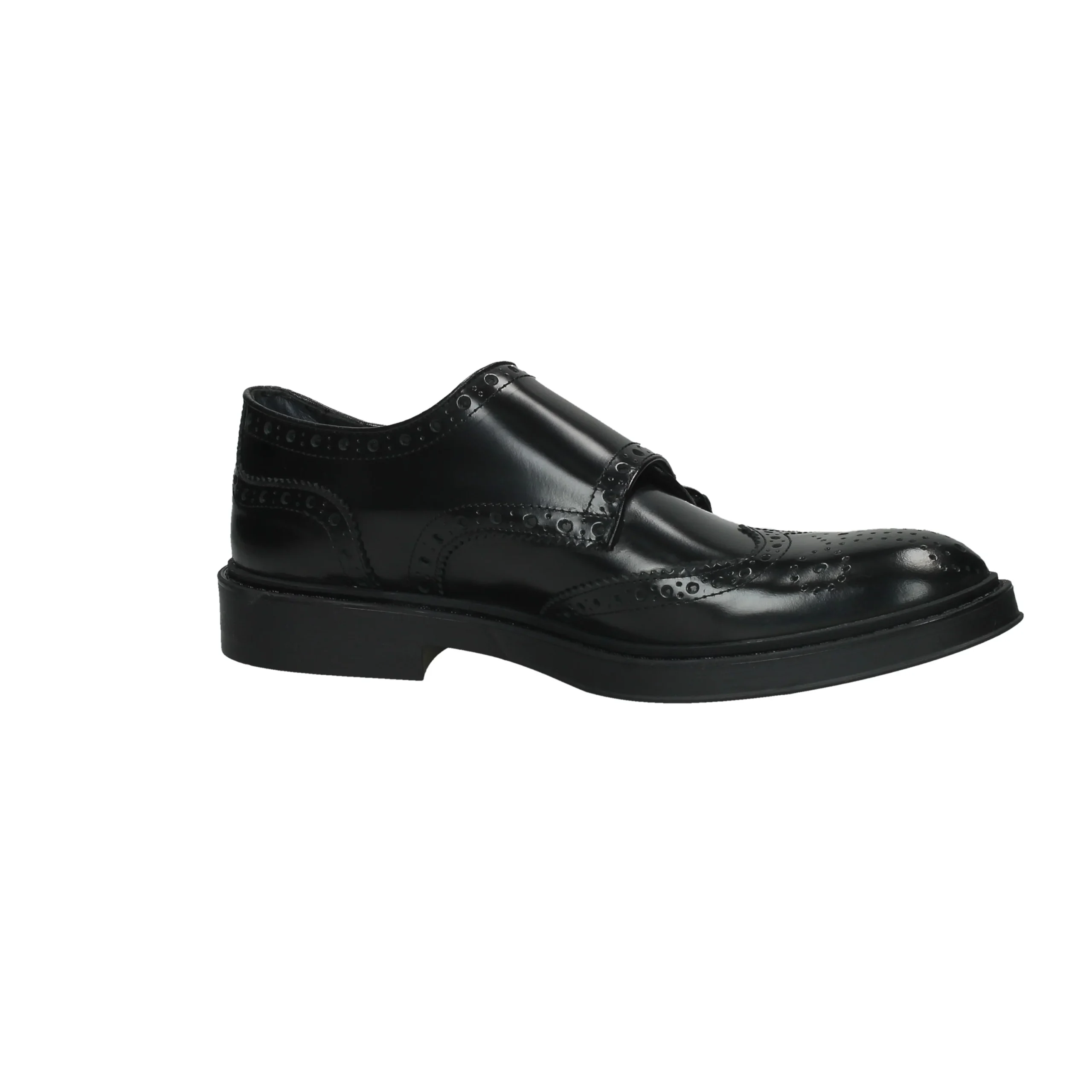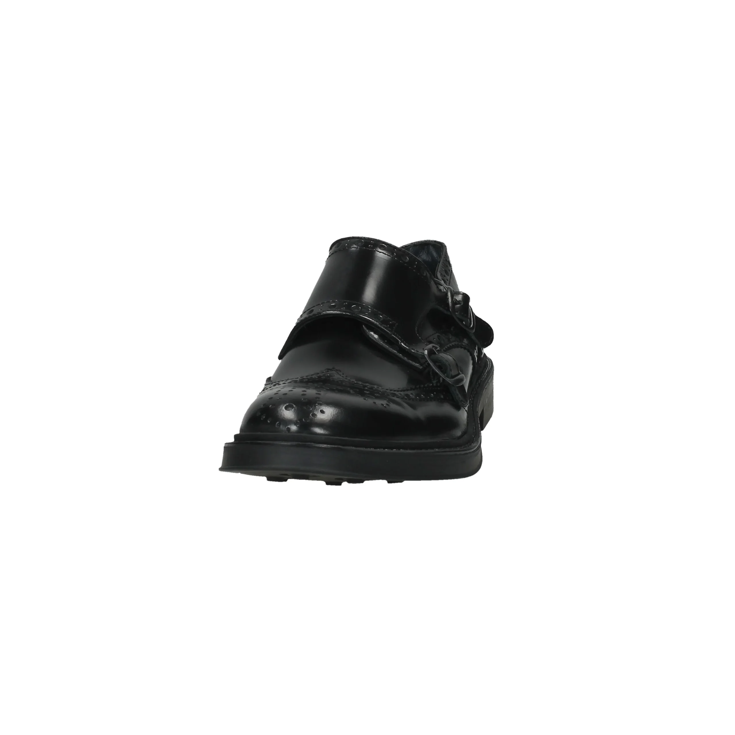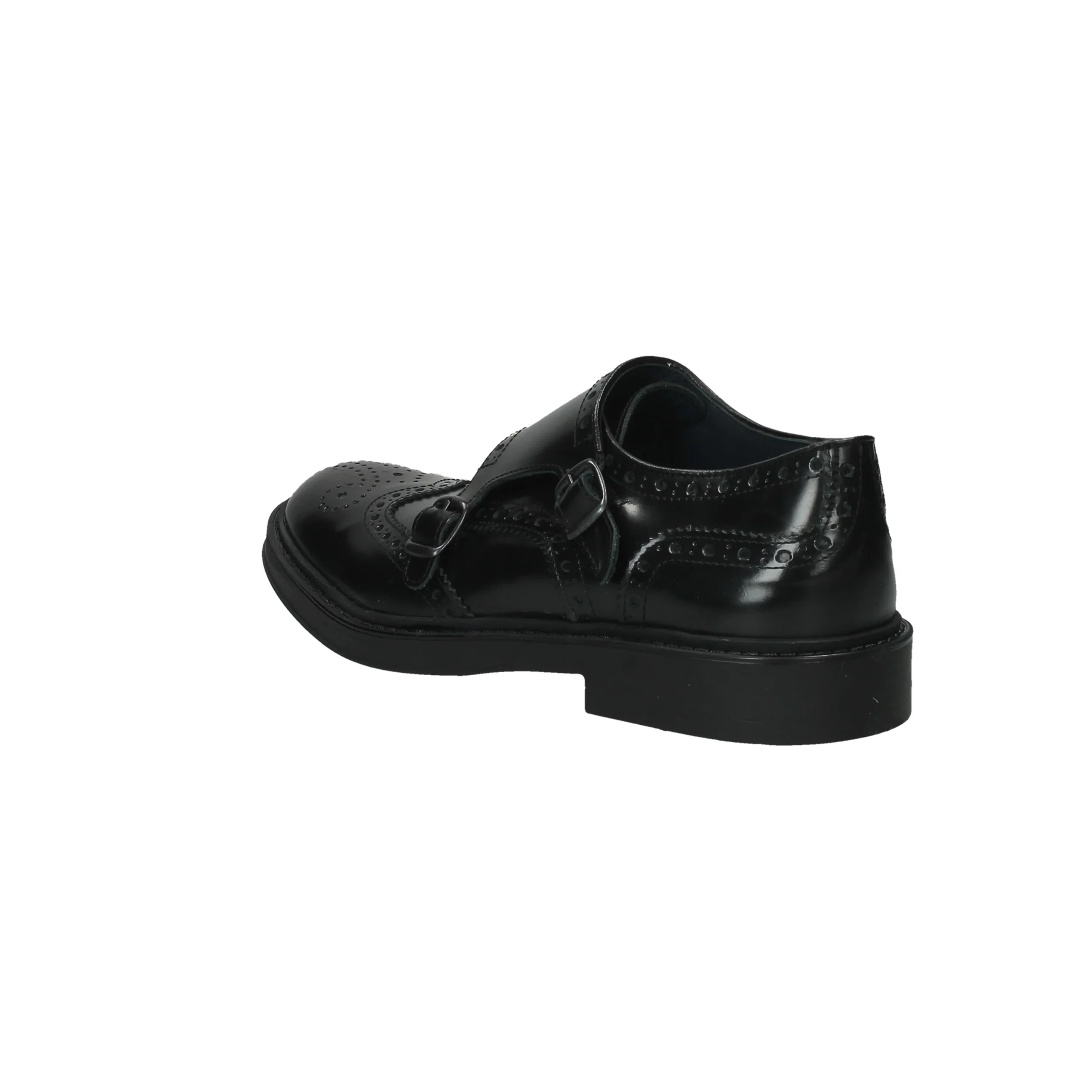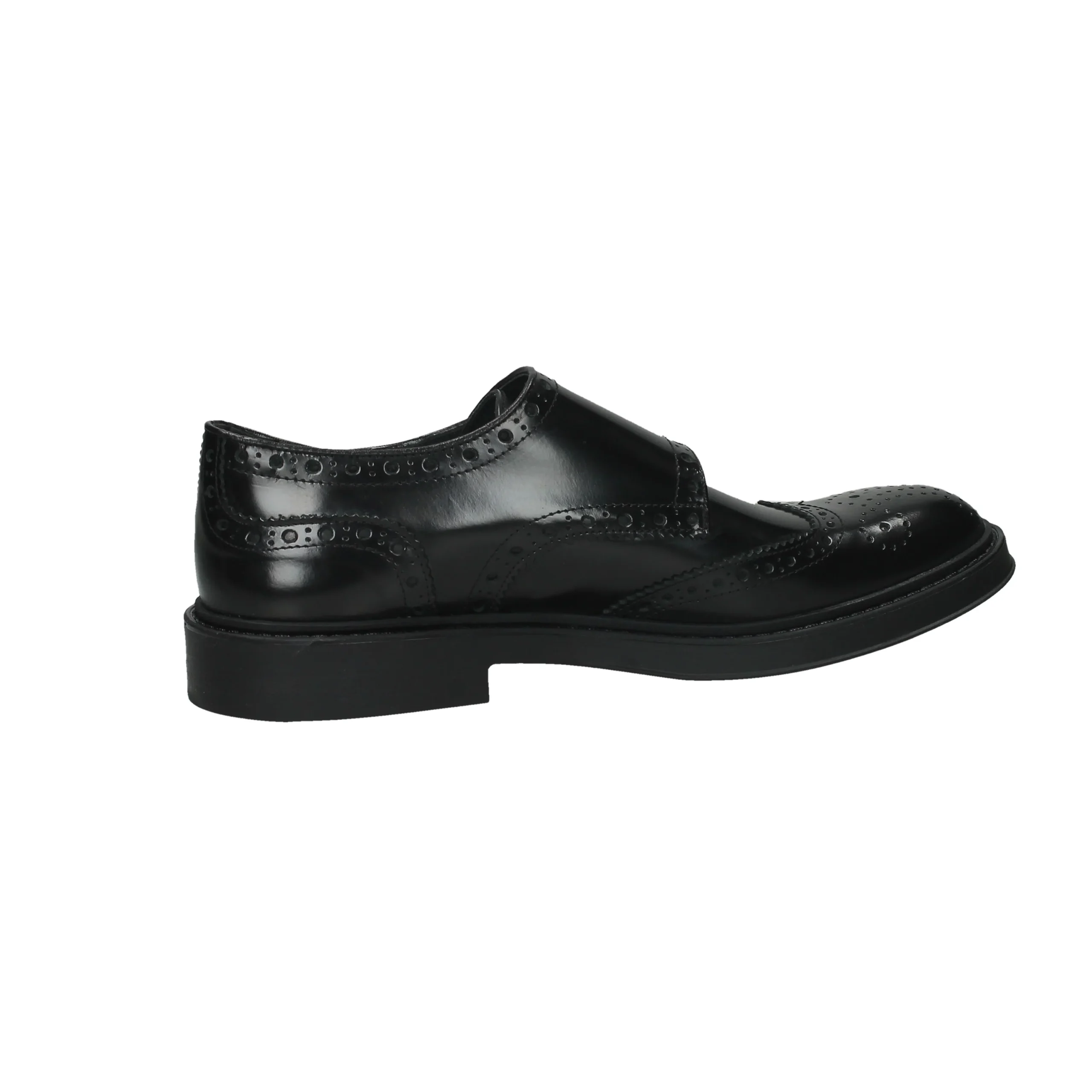 Scarpa in tomaia di vitello, modello slip-on con cinghie laterali regolabili, suola in gomma, fondo dentagliato e antiscivolo, interno foderato, soletta in pelle.