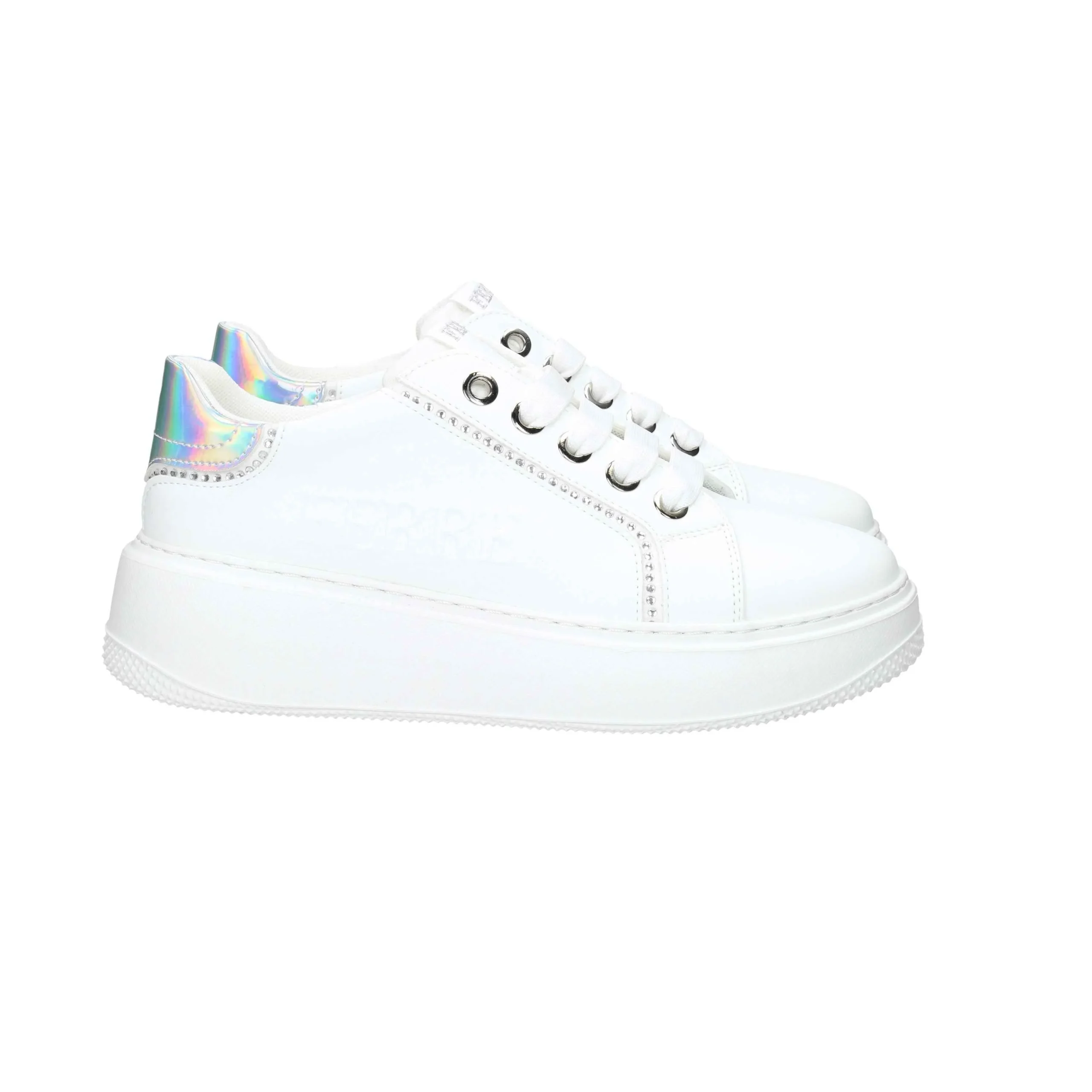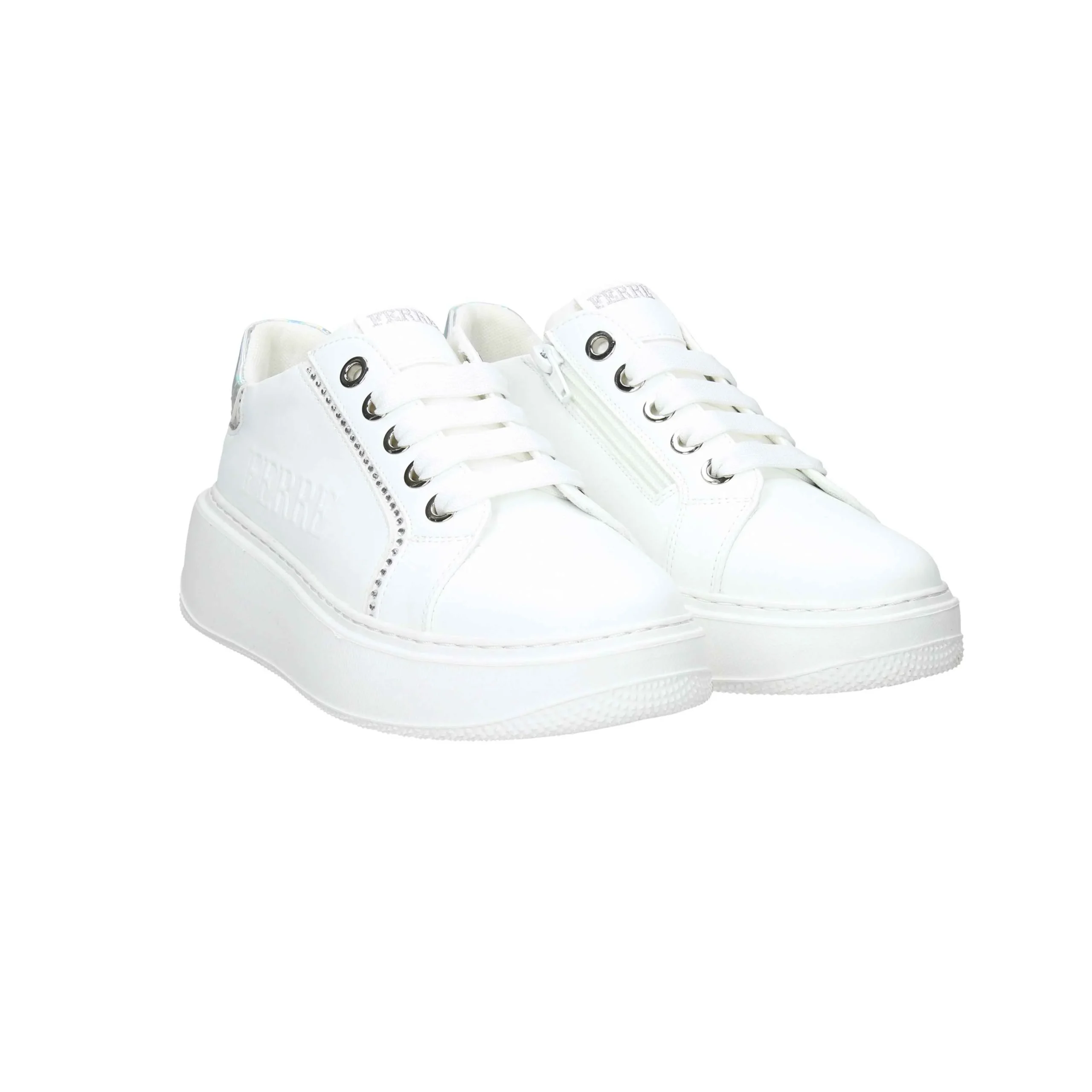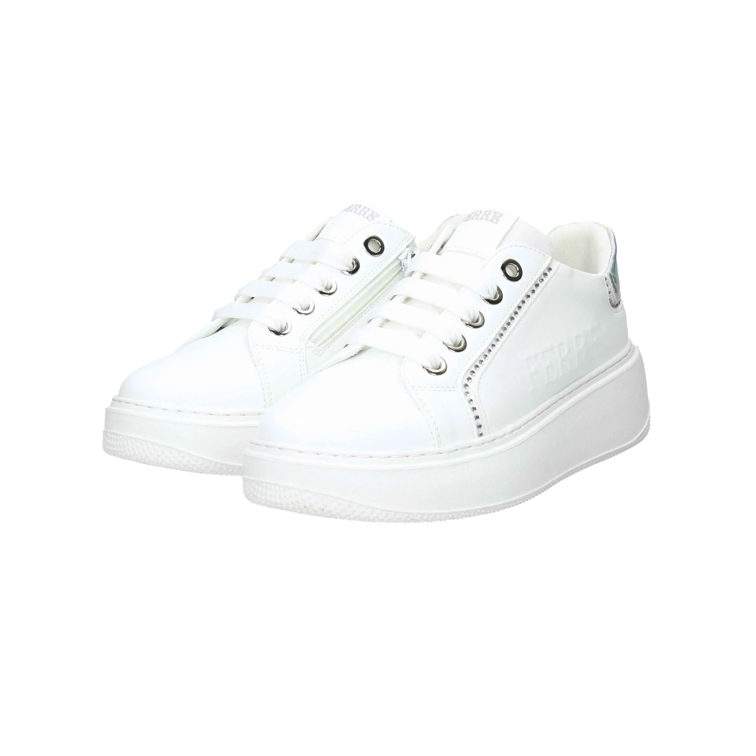Sneakers in ecopelle, con lacci in cotone.
