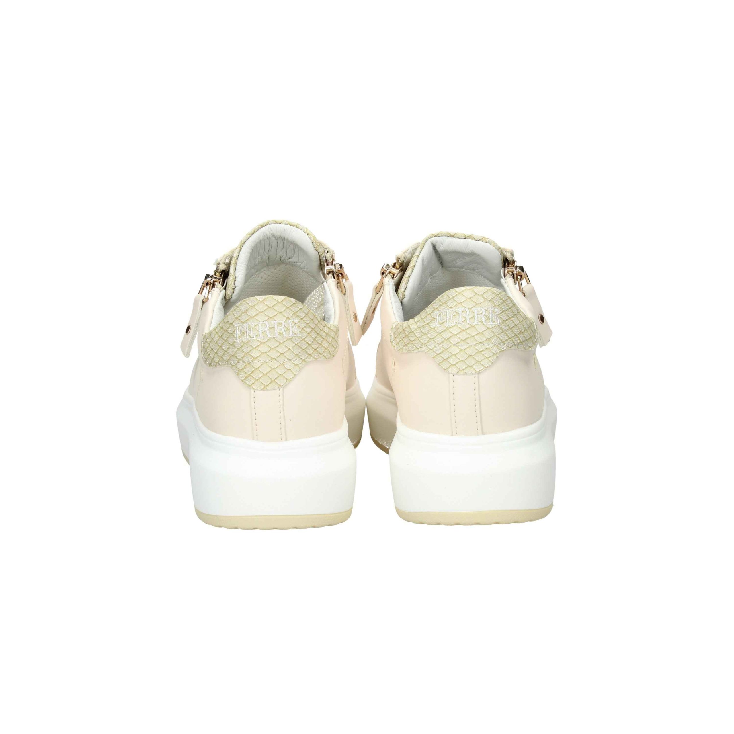 Presenta chiusura con lacci in cotone sul davanti e doppia cerniera laterale, plantare estraibile.