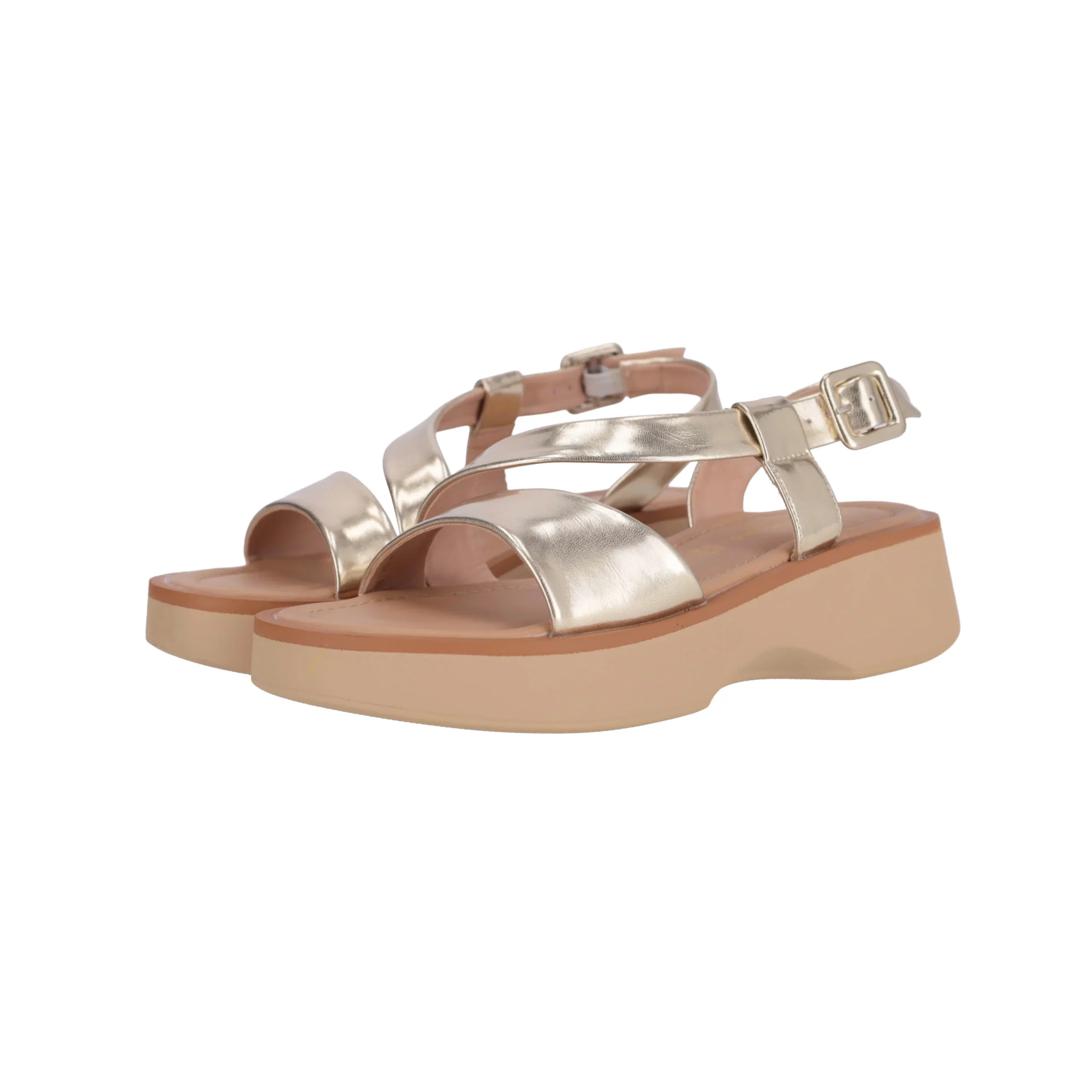 Presenta fascia sul davanti, cinturino sul retro con cinghia regolabile, plantare in pelle.