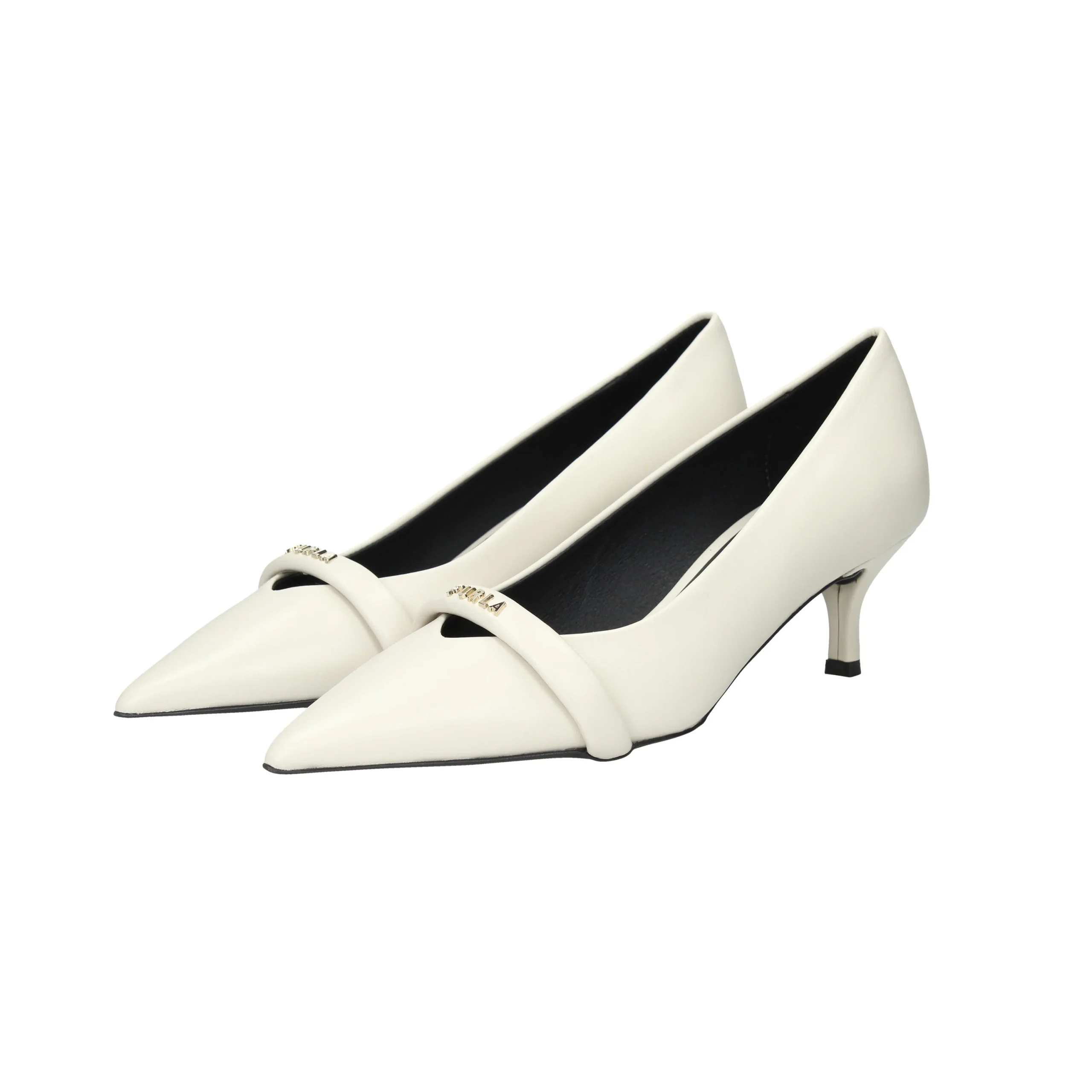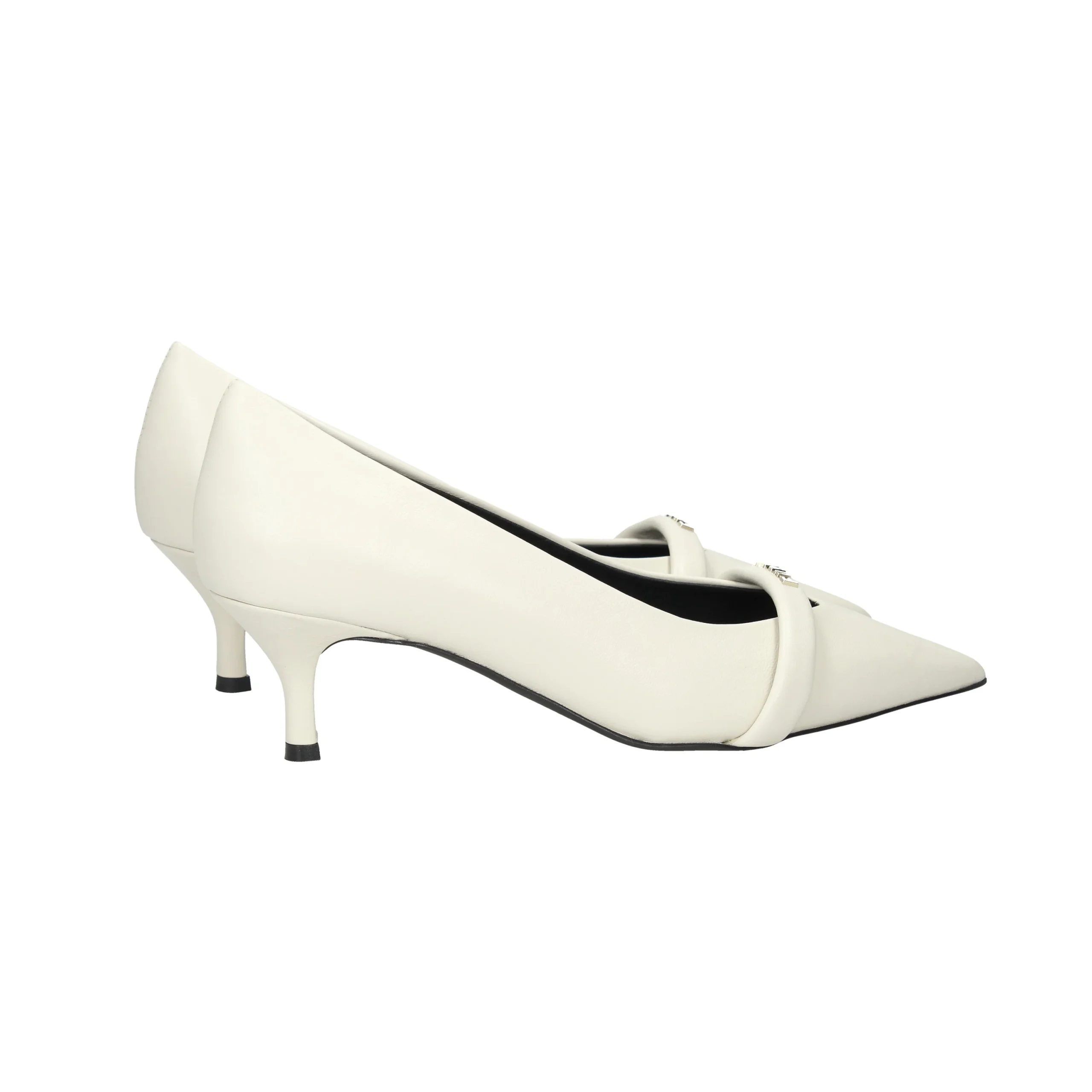 Decollete in nappa, tacco alto 6cm, suola in gomma, dettaglio sul davanti, interno in pelle.