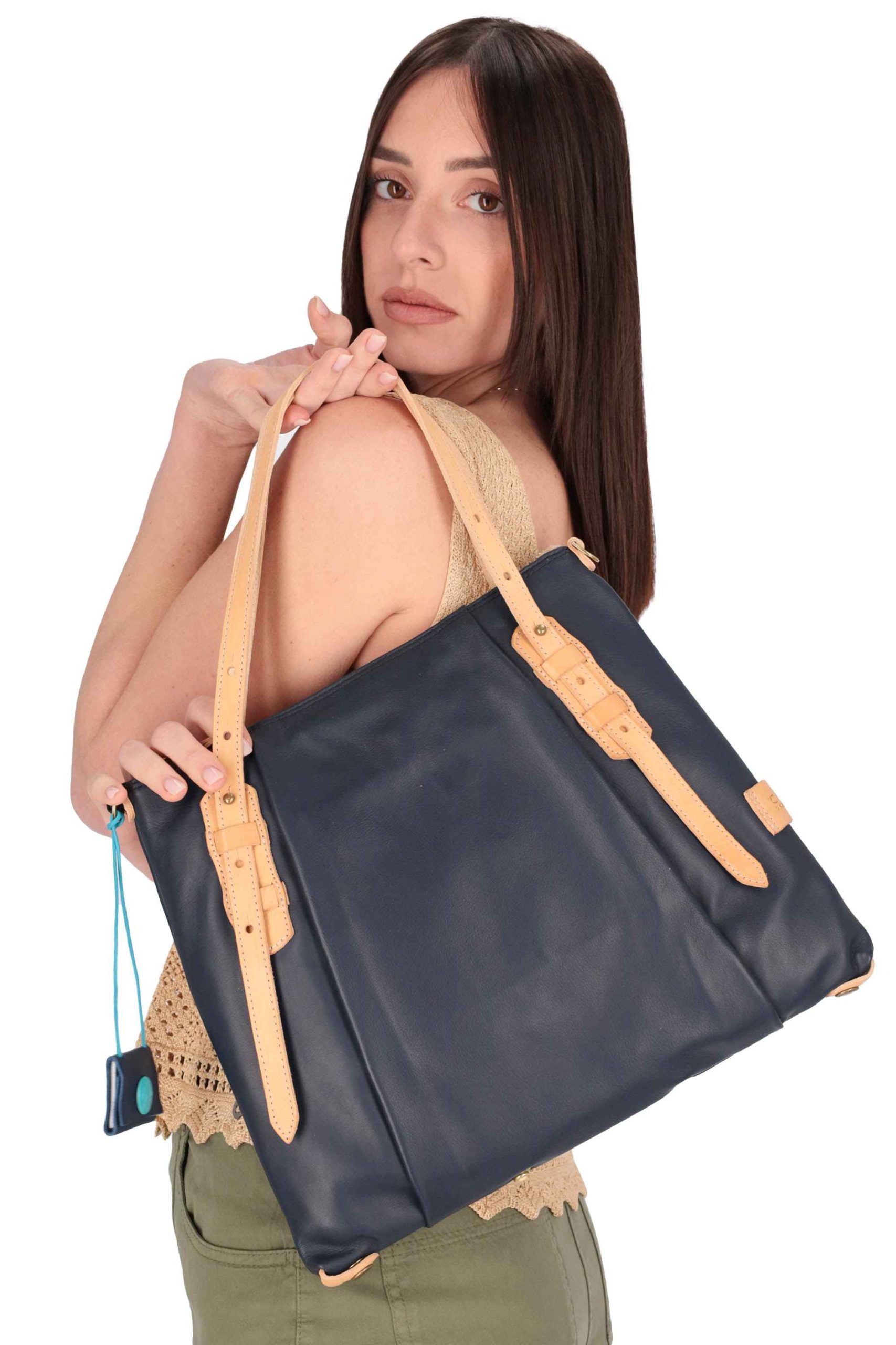 La borsa è realizzata in pelle con dettagli a contrasto.