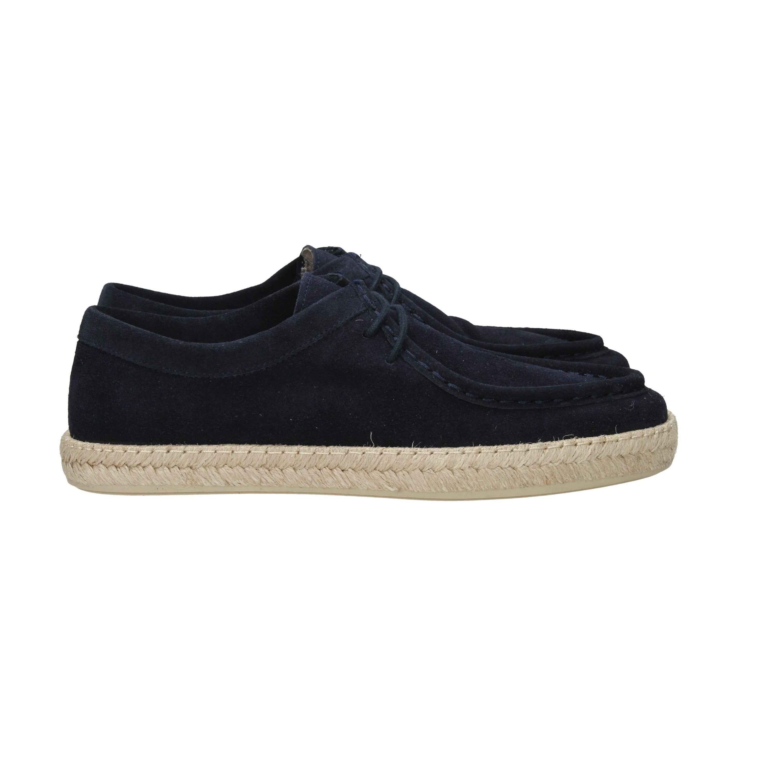La mocassino è realizzato in camoscio e dettagli in corda.