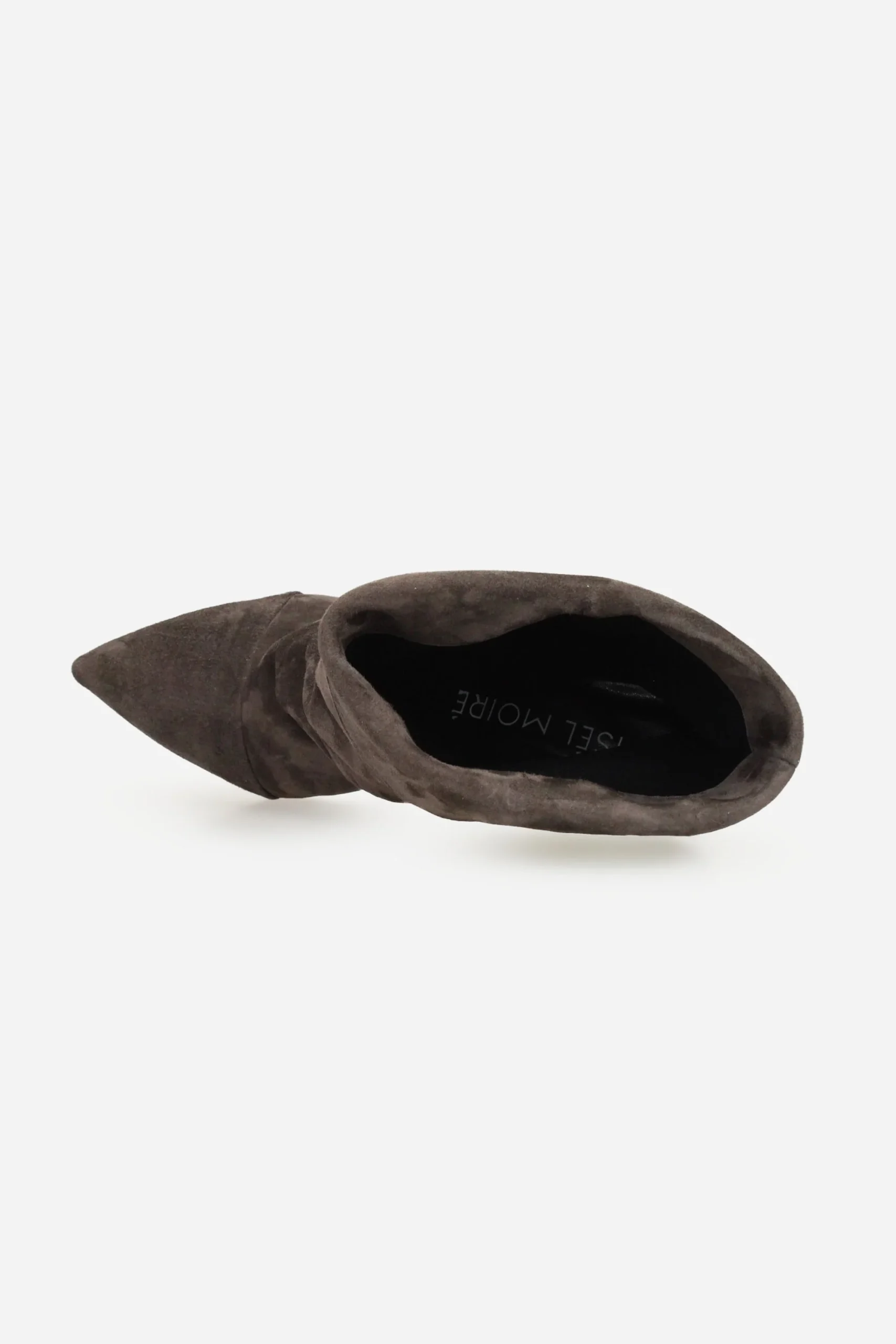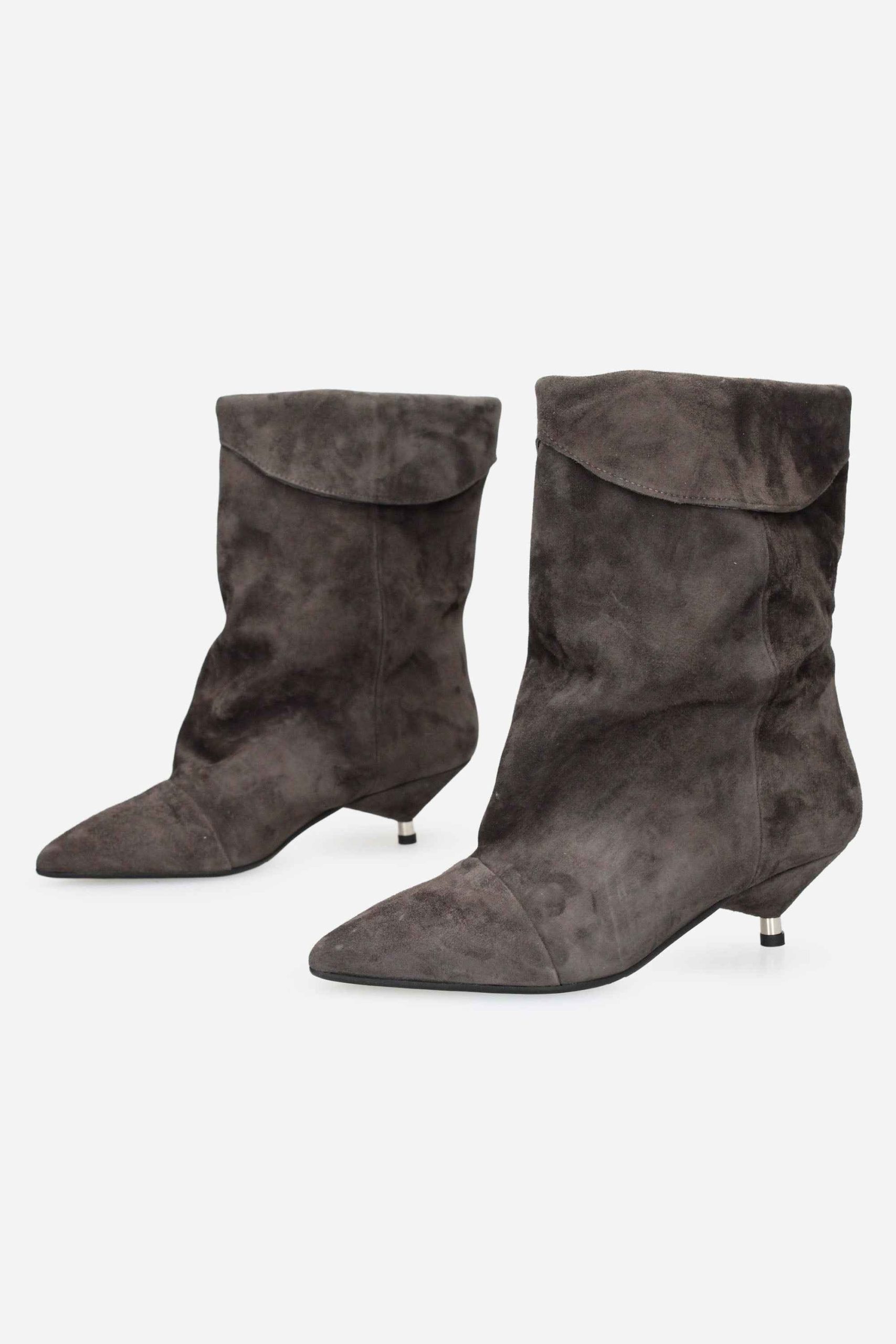 Presenta gambale arricciato alto 20 cm, modello slip on senza chiusura zip e parte superiore con risvolto.