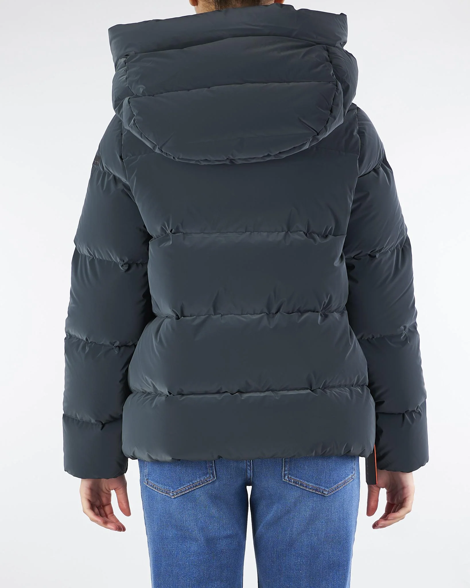 La reinterpretazione moderna e dinamica di un classico del guardaroba invernale si caratterizza per il taglio boxy e l’anima cocoon. Il piumino con lunghezza in vita è impreziosito da un ampio e avvolgente cappuccio. La finitura delicatamente cangiante del tessuto spalmato di silicone e la morbidezza al tatto conferiscono un tocco di comfort e originalità agli ampi canali tubici termosaldati che contengono l’imbottitura in piuma d’anatra 90/10, particolarmente calda e soffice. Il look essenziale del piumino è accentuato dalla patta abbottonata a pressione, che nasconde la zip termonastrata, affiancata dalle spaziose tasche laterali invisibili. Il logo a microiniezione nero sulla manica sinistra firma la creazione che si abbina perfettamente a una camicia dal taglio maschile e al pantalone carrot, nel creare un look frizzante e contemporaneo.