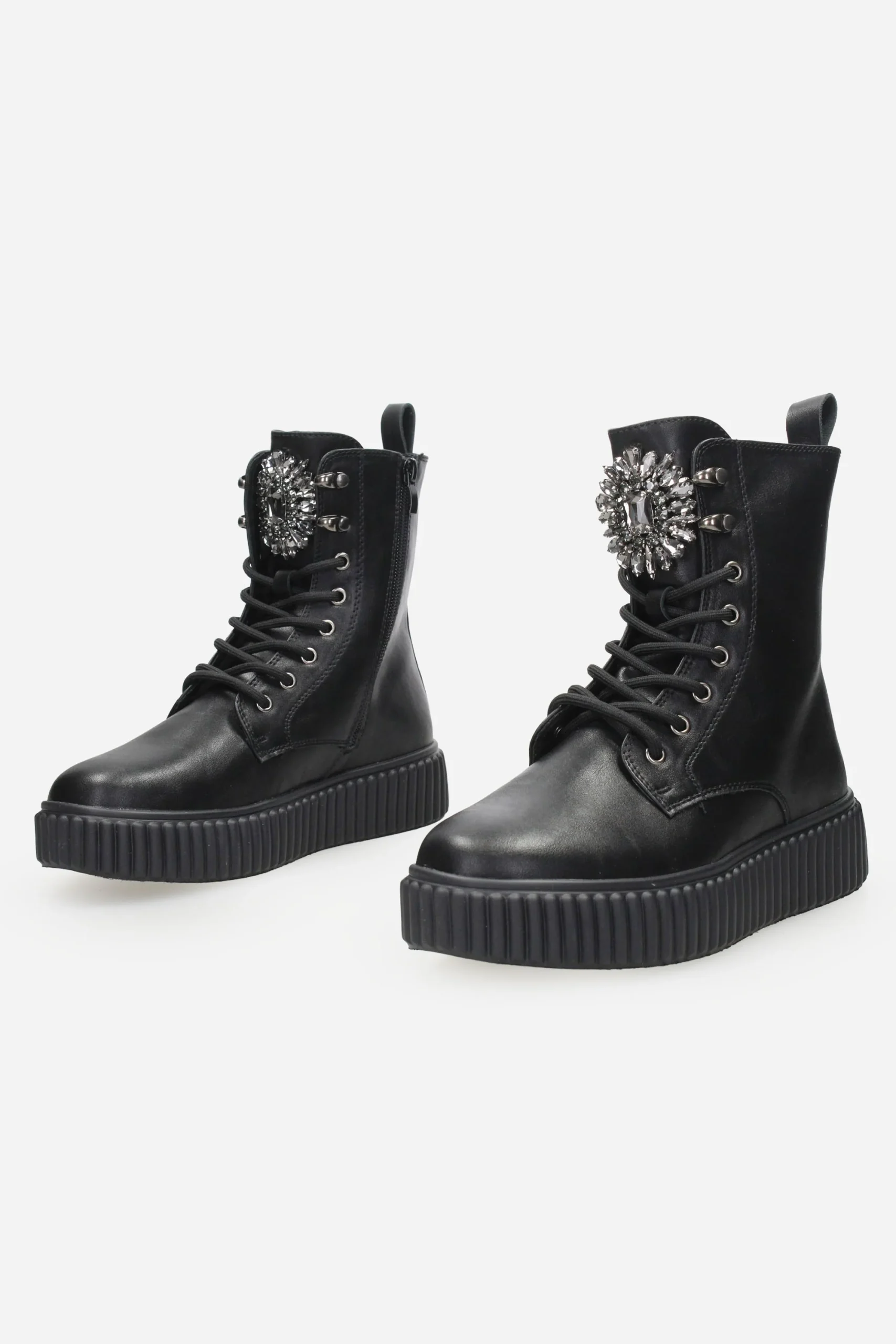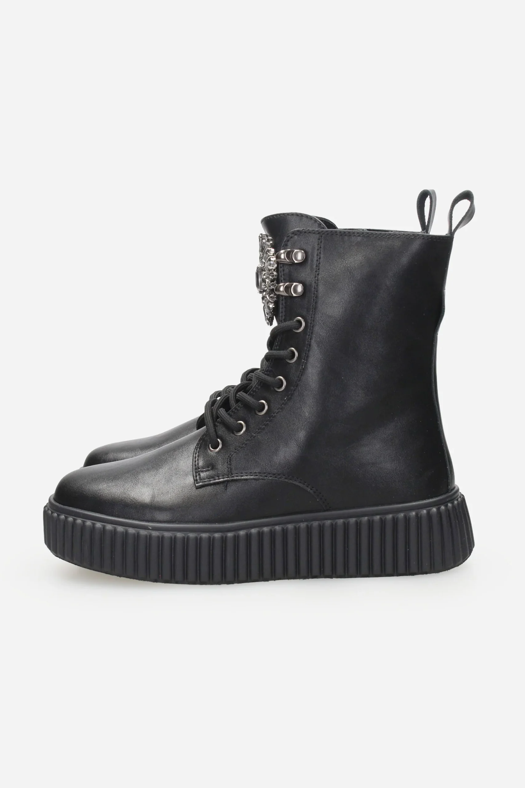 L’anfibio è realizzato in ecopelle con dettaglio sulla linguetta davanti.