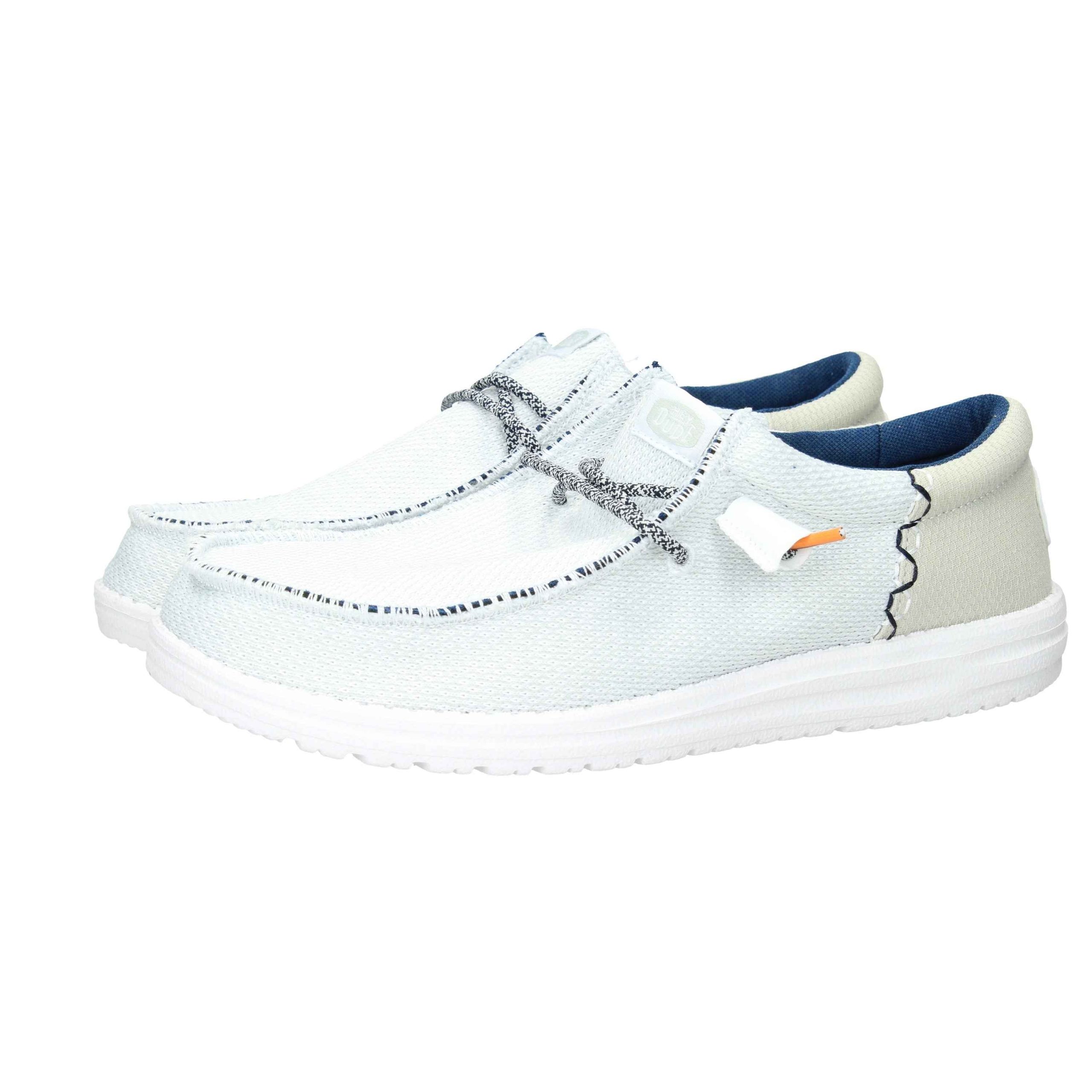 Mocassino in tessuto, suola in gomma, interno in tessuto.